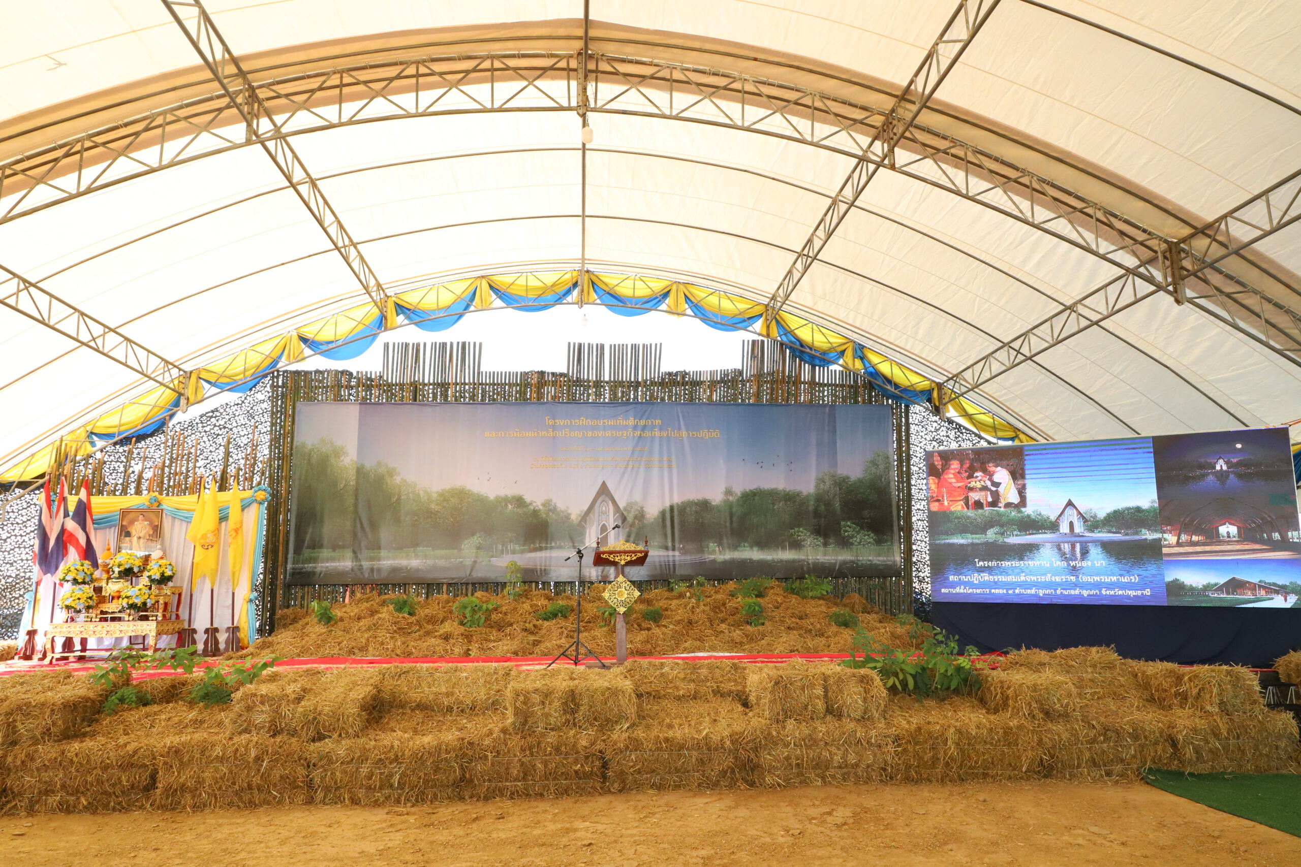 การฝึกอบรมเพิ่มศักยภาพและการน้อมนำหลักปรัชญาของเศรษฐกิจพอเพียงไปสู่การปฏิบัติ ตามโครงการ โคก หนอง นา สัปปายะและรมณียสถาน ศูนย์ปฏิบัติธรรมสมเด็จพระสังฆราช (อมฺพรมหาเถร) พระปฐมบรมราชโองการ ของพระบาทสมเด็จพระเจ้าอยู่หัว ในพระราชพิธีบรมราชาภิเษก เมื่อวันที่ 4 พฤษภาคม 2562 “เราจะสืบสาน รักษา และต่อยอด และครองแผ่นดินโดยธรรม เพื่อประโยชน์สุขแห่งอาณาราษฎรตลอดไป” สะท้อนถึงพระราชปณิธานอันแน่วแน่ในการทรงงานเพื่อจะสืบสาน รักษา และต่อยอด โครงการ อันเนื่องมาจากพระราชดำริ และแนวพระราชดำริต่าง ๆ ของพระบาทสมเด็จพระบรมชนกาธิเบศร มหาภูมิพลอดุลยเดชมหาราช บรมนาถบพิตร เพื่อเป็นแสงสว่างนำทาง ตามรอยพระราชปณิธาน ไปสู่การพัฒนาที่ยั่งยืน สร้างความผาสุกแก่ประชาชนและประเทศชาติ