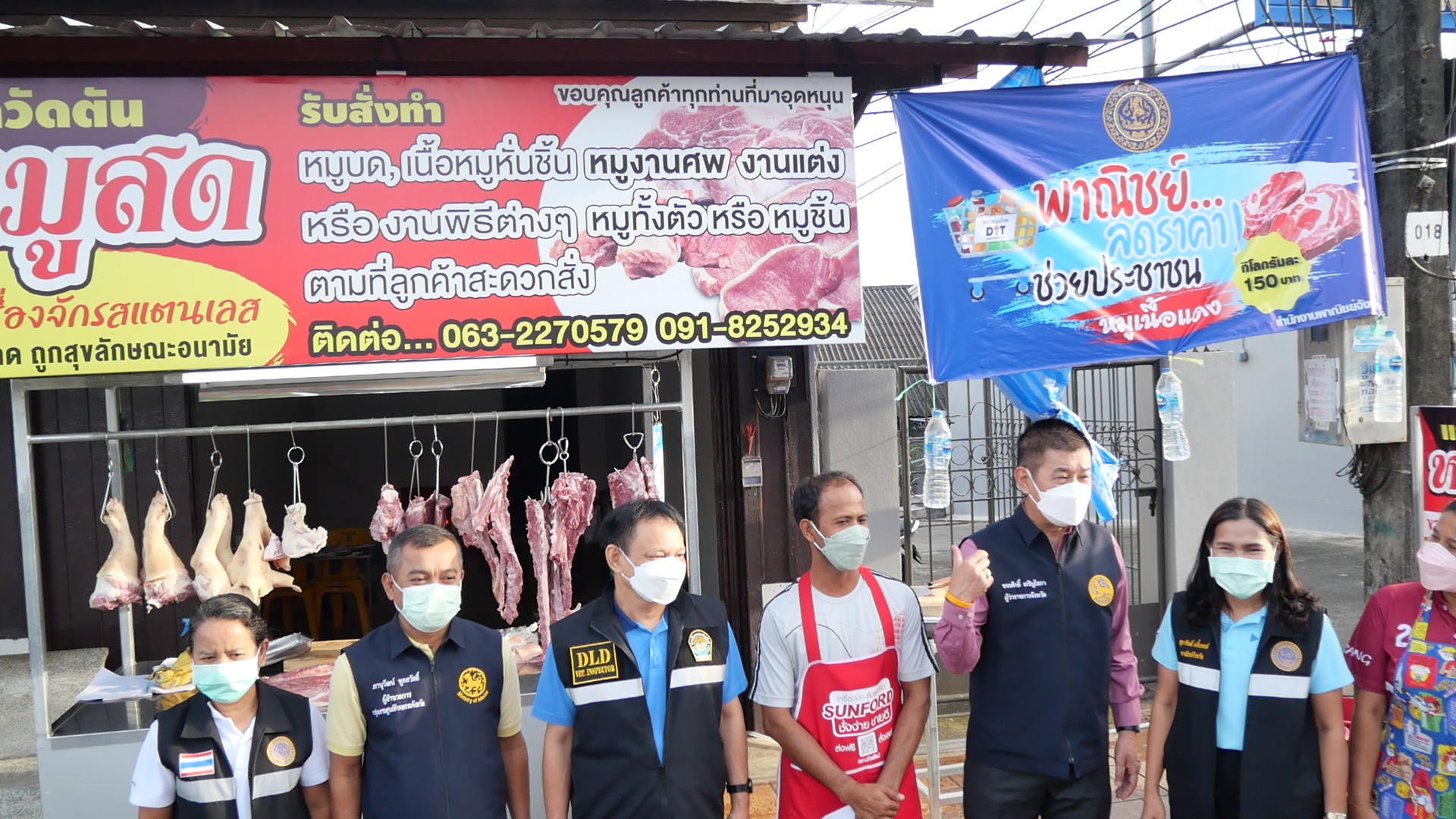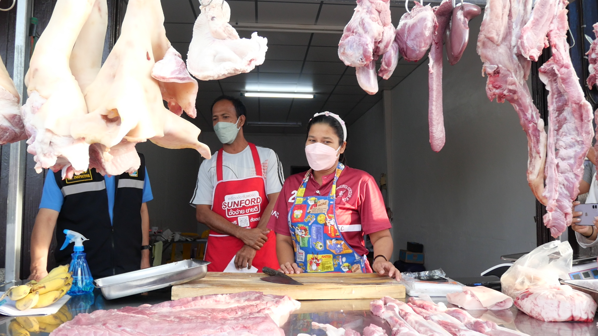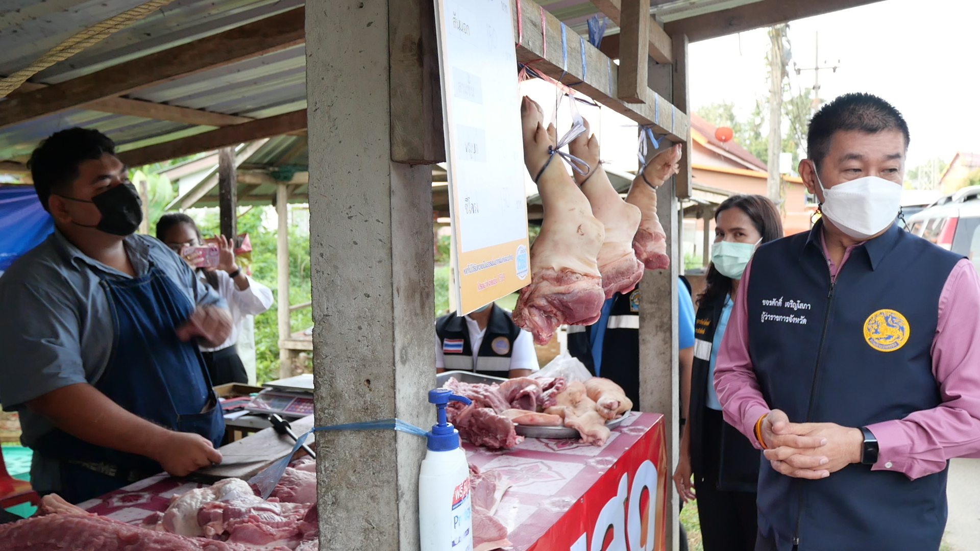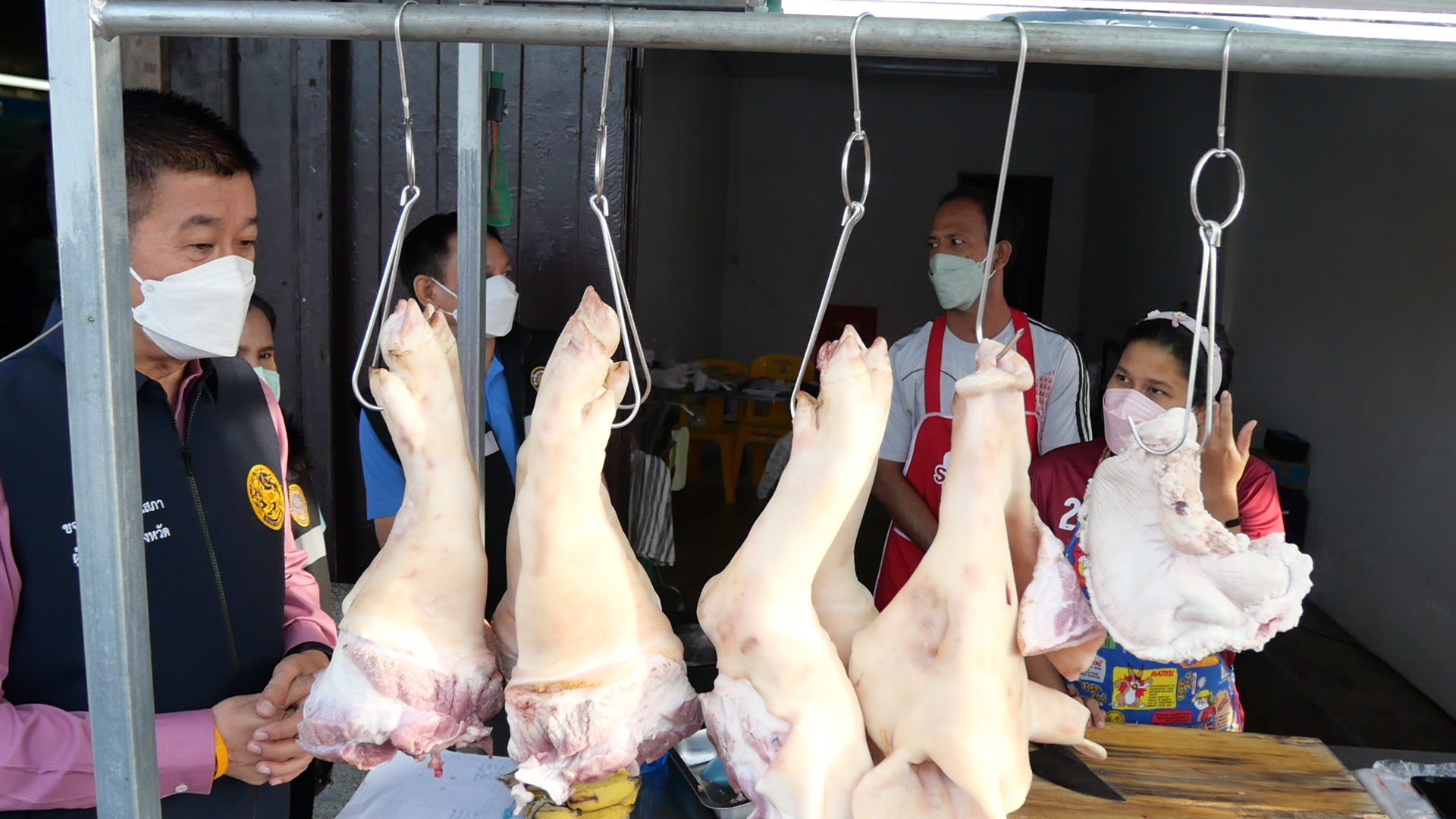 โดยดำเนินโครงการฯ ตั้งแต่วันที่ 7 มกราคม 2565 เป็นต้นไป (ระยะเวลาดำเนินการ 15 วัน) จากสถานการณ์ราคาเนื้อหมูที่ปรับราคาเพิ่มขึ้นอย่างต่อเนื่อง รัฐบาลมีมาตรการแก้ปัญหาราคาสุกรแพง ได้แก่ 1. ห้ามส่งออกสุกรมีชีวิต 3 เดือน ตั้งแต่วันที่ 6 มกราคม 2565 ถึง วันที่ 5 เมษายน 2565 2. ช่วยเหลือราคาอาหารสัตว์ จัดสินเชื่อพิเศษ เพื่อให้เกษตรกรได้กลับมาเลี้ยงใหม่ ตรึงราคาจำหน่ายที่เหมาะสมสอดคล้องต้นทุนที่เกิดขึ้น 3.ส่งเสริมการผลิตข้าวโพดเลี้ยงสัตว์ เพื่อทดแทนการนำเข้าจากต่างประเทศ 4. ผลักดันการยกระดับมาตรฐานฟาร์มของเกษตรกร เพื่อป้องกันโรคระบาดส่งเสริมให้ปรับปรุงเป็นฟาร์มที่มีระบบการป้องกันโรคและการเลี้ยงสัตว์ที่เหมาะสม (GFM) มีค่าใช้จ่ายต่ำกว่ามาตรฐานฟาร์ม GAP 5.กำหนดให้ผู้เลี้ยงสุกร ผู้จำหน่าย ผู้ส่งออก ซึ่งครอบครองสุกรมีชีวิตที่มีปริมาณตั้งแต่ 500 ตัวขึ้นไป และผู้ครอบครองสุกรชำแหละผ่าซีกเนื้อสุกรชำแหละแยกชิ้นส่วนที่มีปริมาณรวมกันตั้งแต่ 5,000 กิโลกรัมขึ้นไป แจ้งปริมาณ ราคาจำหน่าย สถานที่เก็บและสถานที่เลี้ยง ทุกวันจันทร์ ทั้งนี้ จากการลงพื้นที่ตนเองได้พบปะพ่อค้าแม่ค้าผู้จำหน่ายหมูสด รวมถึงประชาชนที่มาซื้อเนื้อหมู ได้รับทราบปัญหาและสภาพข้อเท็จจริงที่เกิดขึ้น เพื่อนำไปหารือกับหน่วยงานต่างๆ ที่เกี่ยวข้องในการแก้ปัญหาในระดับพื้นที่เพื่อบรรเทาผลกระทบของน้องประชาชนชาวตรังต่อไป อย่างไรก็ตาม ตนเองได้กำชับให้ผู้ประกอบการปิดป้ายแสดงราคา ซึ่งส่วนใหญ่ได้ปิดป้ายแสดงราคา ชัดเจน หากผู้บริโภคไม่ได้รับเป็นธรรมทางการค้าหรือได้รับความเดือดร้อนจากการฉวยโอกาสขึ้นราคาสินค้าและบริการ โดยไม่มีเหตุผลอันสมควร สามารถร้องเรียนได้ที่ สำนักงานพาณิชย์จังหวัดตรัง โทร 0 7522 3076 สายด่วน 1569 หรือศูนย์ดำรงธรรมจังหวัดตรัง หมายเลขโทรศัพท์ 0 7521 7144 อย่างไรก็ตามจากการสอบถามพ่อค้า แม่ค้า ขายหมูทราบว่า หมูหน้าฟาร์มมีการปรับราคาขึ้นอีก 4-5 บาท ขณะนี้หมูเป็นราคา 110-111 บาทต่อกิโลกรัม