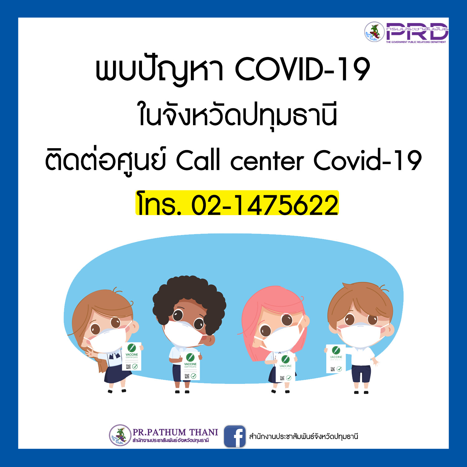 ทั้งนี้ ผู้ว่าราชการจังหวัดปทุมธานี ได้บูรณาการร่วมกับหน่วยงานที่เกี่ยวข้องภาครัฐ เอกชนและภาคีเครือข่าย จัดตั้ง ศูนย์ Call Center โควิด 19 จังหวัดปทุมธานี จำนวน 8 คู่สาย เพื่อช่วยเหลือผู้ติดเชื้อให้เข้าสู่ระบบการดูแลรักษาโดยเร็ว เริ่มตั้งแต่ วันที่ 13 มกราคม 2565 เป็นต้นไป หากพบข้อสงสัยหรือปัญหาเกี่ยวการแพร่ระบาดของเชื้อไวรัสโคโรนา 2019 ให้ติดต่อ ได้ที่ ศูนย์ Call Center โควิด 19 จังหวัดปทุมธานี โทร 02-1475622