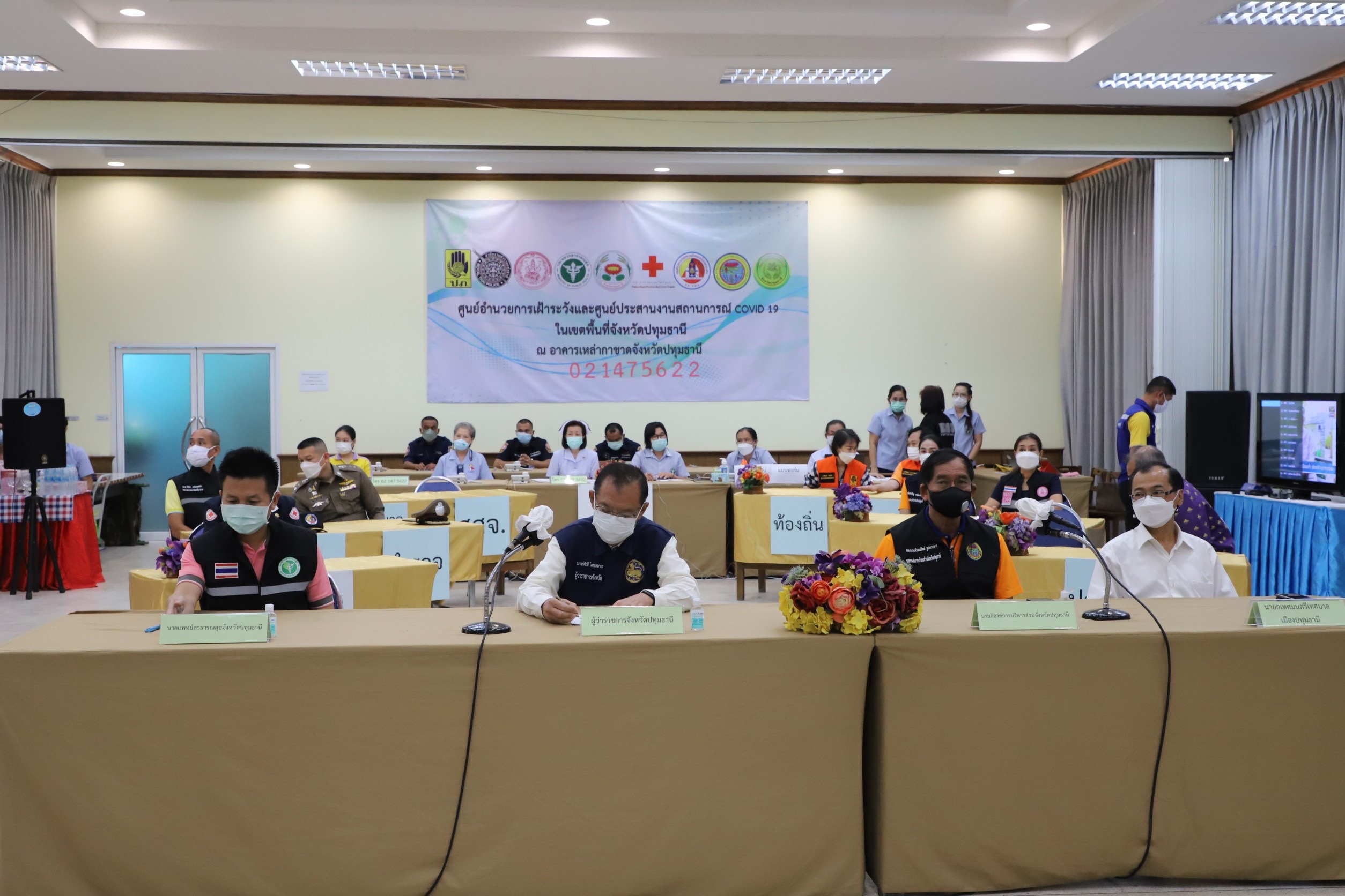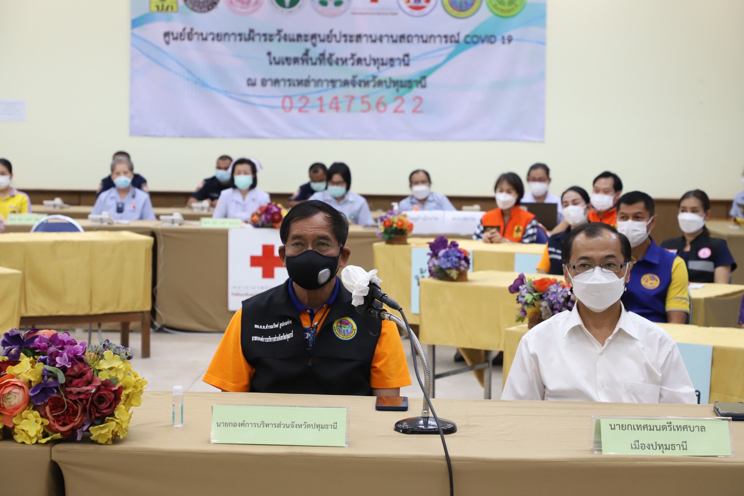 วันนี้ ( 13 ม.ค.65 ) เวลา 15.00 น. ที่ สำนักงานเหล่ากาชาดจังหวัดปทุมธานี นายณรงค์ศักดิ์ โอสถธนากร ผู้ว่าราชการจังหวัดปทุมธานี เปิดศูนย์อำนวยการเฝ้าระวังและศูนย์ประสานงานสถานการณ์ COVID-19 ในเขตพื้นที่จังหวัดปทุมธานี โทร 02-1475622 เพื่อช่วยเหลือ พี่น้องประชาชนในจังหวัดปทุมธานีที่ประสบ ปัญหา เกี่ยวกับการแพร่ระบาดของเชื้อไวรัสโคโรนา 2019 สายพันธ์ โอมิครอน เพื่ออำนวยความสะดวกและให้คำปรึกษาแก้ไขปัญหาในเบื้องต้น ตลอด 24 ชั่วโมง