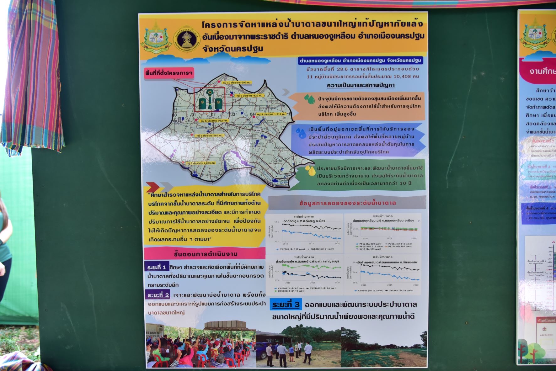 จังหวัดนครปฐม ติดตามผลการดำเนินโครงการจัดหาน้ำบาดาลขนาดใหญ่แก้ไขปัญหาภัยแล้งอันเนื่องมาจากพระราชดำริ เพื่อให้ประชาชนในพื้นที่ตำบลหนองงูเหลือม มีน้ำในการอุปโภคบริโภคได้อย่างเพียงพอในช่วงฤดูแล้ง