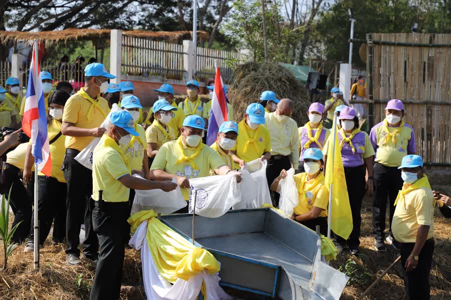 หลังจากพิธีเปิดท่านประธานพร้อมทั้งหัวหน้าส่วนราชการท่านผู้มีเกียรติร่วมปล่อยปลาลงสู่หนองน้ำและปลูกต้นไม้ในพื้นที่โคก หนอง นา อาทิ ยางนา กระท้อนเป็นต้น พร้อมทั้งเยี่ยมชมกิจกรรมการเรียนรู้คนติดดิน (บ้านดิน) นำโดยศูนย์การเรียนรู้เพื่อนพึ่ง (ภา ) ยามยากจังหวัดอ่างทองโดยนายธาตรี คำคง และเยี่ยมชมกิจกรรมการใช้พลังงานทดแทน (แสงอาทิตย์ ) ในการสูบน้ำเพื่อการเกษตร ร่วมกับบริษัท แดดดี ซึ่งผู้คิดค้น และผลิตพร้อมจำหน่ายเป็นคนในพื้นที่ของอำเภอโพธิ์ทอง และเยี่ยมชมกิจกรรม การเรียนรู้การแปรรูปสมุนไพรในครัวเรือนเป็นอาหาร ศูนย์เรียนรู้ โคก หนอง นา สมุนไพร ยาสีฟันสมุนไพรข่อย ศูนย์เรียนรู้ ปราชญ์เกษตรสมุนไพร “น้ำสมุนไพร” ศูนย์เรียนรู้สมุนไพร มูลนิธิครูสำราญทัดเทียมอนุสรณ์ และมูลนิธิสิริพัฒนคุณานุสรณ์ (จำลอง สิริญาโณ )