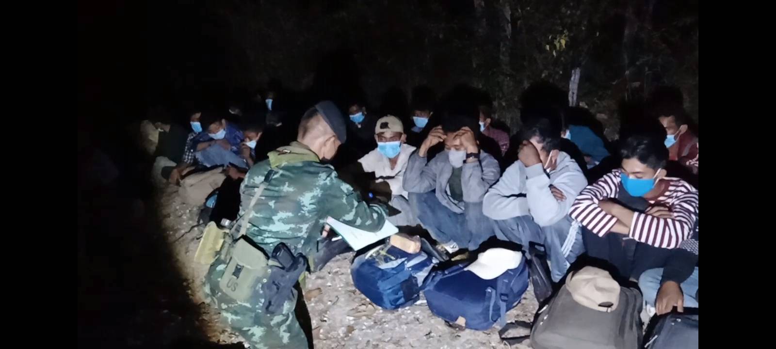 เมื่อเวลา 19.30 ของวันที่ 18 มกราคม 2565 ชุดปฏิบัติการข่าวที่ 2 กองกำลังสุรสีห์ ชุดปฏิบัติการข่าวกรมทหารพรานที่ 14 ว่าได้รับแจ้งจากชาวบ้านาจะมีการลักลอบหลบหนีเข้าเมืองบริเวณสันแดน ระหว่างไทย เมียนมา หมู่ที่ 15 ตำบลบ้านเก่า อำเภอเมือง จังหวัดกาญจนบุรี จึงจัดกำลังร่วมกับ หมวดลาดตระเวนที่ 4 หน่วยเฉพาะกิจลาหญ้า กองกำลังสุรสีห์ นำกำลังเข้าไปตรวจสอบ พบผู้ลักลอบเข้ามาในราชอาณาจักรไทย โดยไม่ได้รับอนุญาต เจ้าหน้าที่ได้แสดงตัวเพื่อเข้าจับกุม แต่ผู้นำพาได้วิ่งหลบหนีไป เจ้าหน้าที่จึงเข้าทำการจับกุมผู้หลบหนีเข้าเมืองสัญชาติเมียนมา จำนวน 48 ชาย คน เป็นชาย 35 คน หญิง 13 คน จากการสอบถาม ทราบว่าทั้งหมดเดินทางมาจาก พะโค ทวาย เมาะลำไย อิระวดี สหภาพเมียนมา ผ่านช่องทางธรรมชาติเข้ามาในประเทศไทย โดยจะเข้าไปทำงาน ในพื้นที่ กรุงเทพ จังหวัดสมุทรสาคร และ จังหวัดชลบุรี ซึ่งเสียค่าใช้จ่ายให้กับนายหน้าแล้ว จำนวน 17,000 – 20,000 บาท/คน จึงนำผู้หลบหนีเข้าเมืองทั้งหมดส่งพนังงานสอบสวนสถานีตำรวจภูธรเมืองกาญจนบุรี เพื่อตำเนินคดีตามกฎหมาย ต่อไป