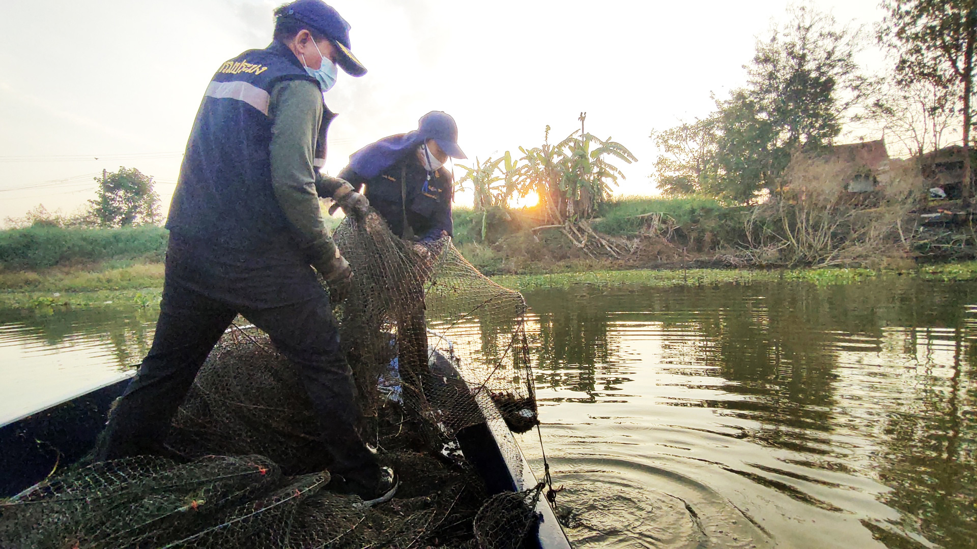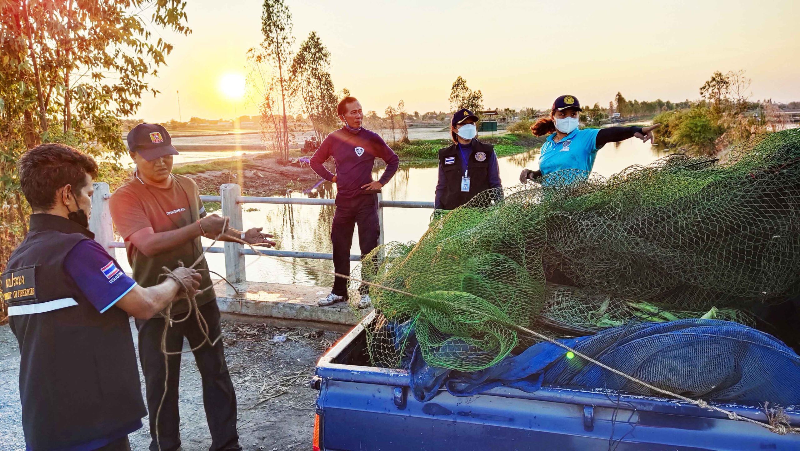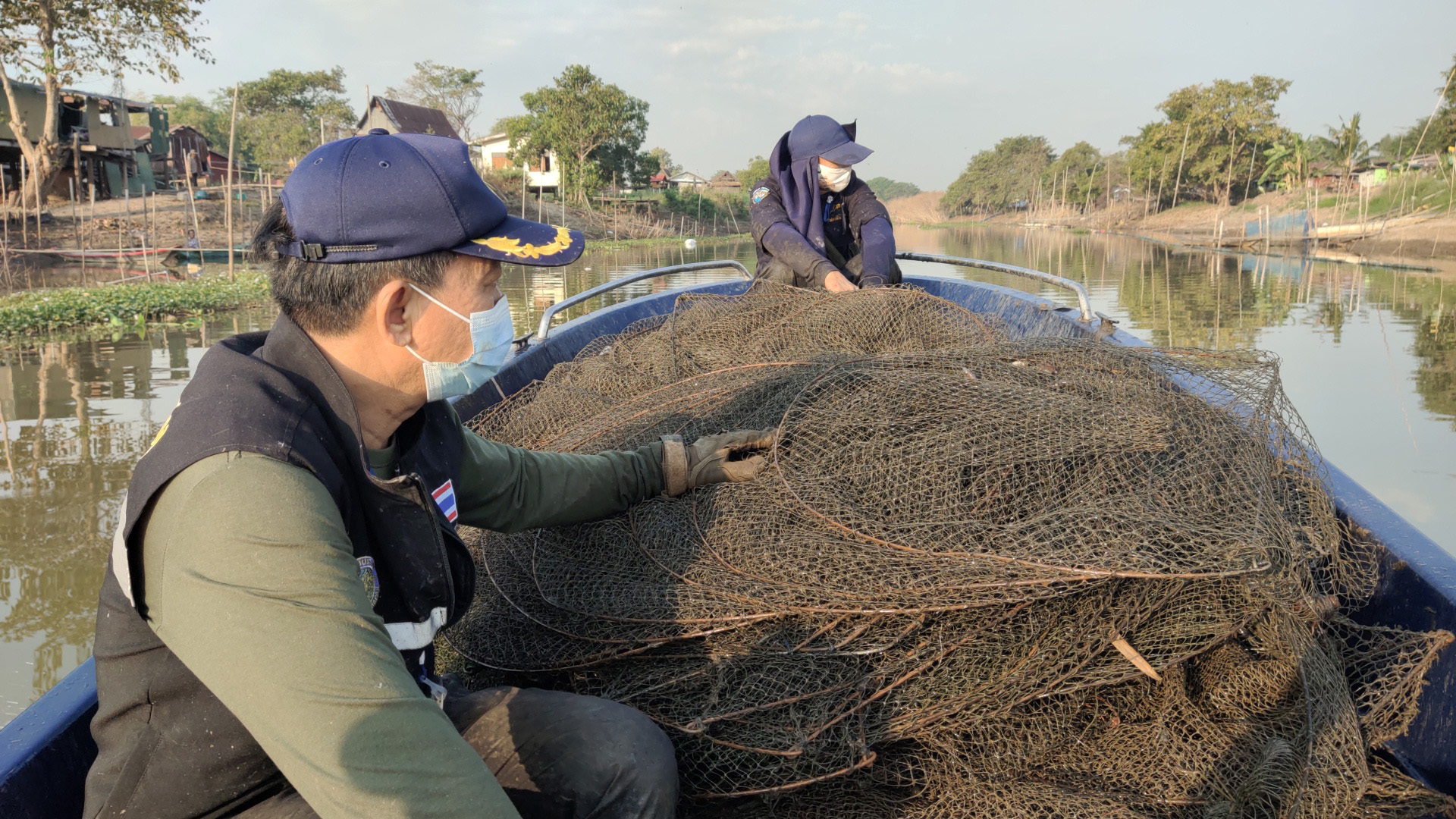 สุพรรณบุรี ประมงสุพรรณลุยยึดลอบพับได้เครื่องมือปลาภัยร้ายของสัตว์น้ำ