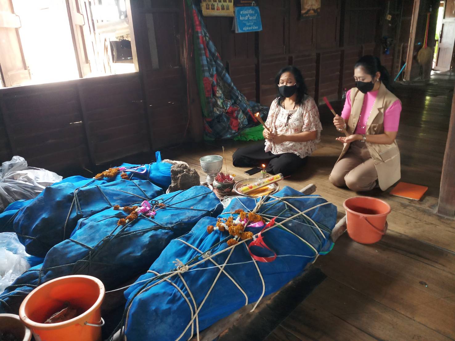 นางสาวเอกรัตน์ นาคาคง รองผู้ว่าราชการจังหวัดอ่างทอง กล่าวว่าเบื้องต้น โบราณวัตถุบางส่วนอาทิ ถ้วย ชาม เครื่องใช้หรือกระดูกนอแรด ฯลฯ จะได้นำไปไว้ที่พิพิธภัณฑ์เมืองอ่างทอง ที่บริเวณหน้าศาลากลางจังหวัดอ่างทอง องค์การบริหารส่วนจังหวัดอ่างทอง เป็นผู้ดำเนินการดุแลรักษา และอีกส่วนหนึ่งซึ่งหมายถึงโครงกระดูก กระดูก ภาชนะแตกหักต่างๆ จะได้ดำเนินการให้ทางวัดแก้วกระจ่าง ตำบลสีบัวทอง ได้ดำเนินการขออนุญาตการจัดสร้างให้ถูกต้องแล้วเสร็จสมบูรณ์จึงจะดำเนินการอย่างเป็นทางการอีกครั้ง