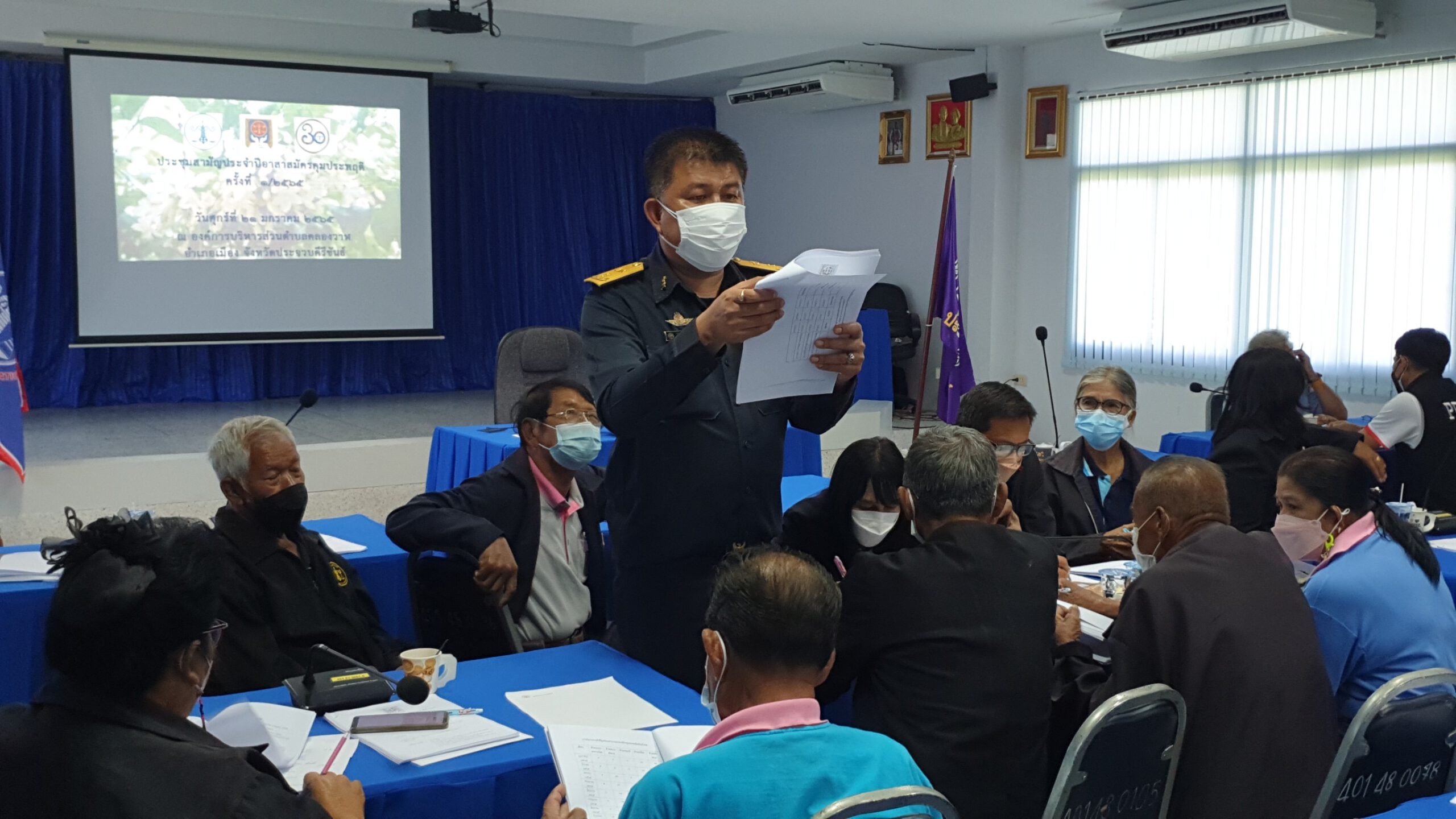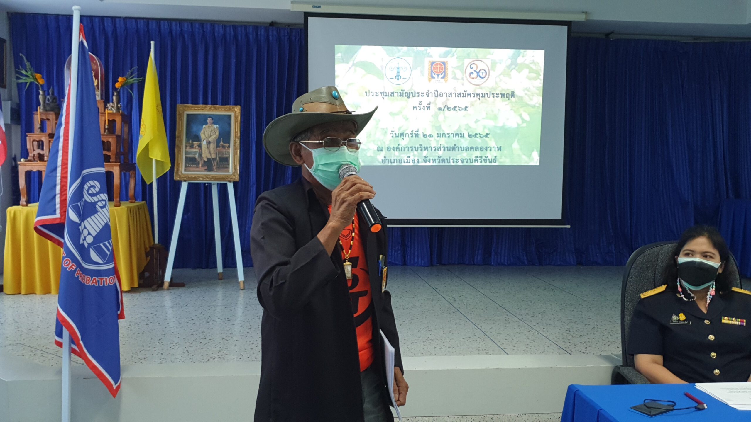 วันที่ 21 มกราคม 65 ที่ห้องประชุมองค์การบริหารส่วนตำบลคลองวาฬ อำเภอเมือง จังหวัดประจวบคีรีขันธ์ นางสาวภาวนา คุณารักษ์ ผู้อำนวยการสำนักงานคุมประพฤติจังหวัดประจวบคีรีขันธ์ เป็นประธานในการประชุมสามัญประจำปีอาสาสมัครคุมประพฤติจังหวัดประจวบคีรีขันธ์ ครั้งที่ 1/2565 เพื่อให้อาสาสมัครคุมประพฤติที่ได้รับการแต่งตั้งเป็นอาสาสมัครคุมประพฤติปฏิบัติงานเป็นไปในแนวทางเดียวกันอย่างประสิทธิภาพด้วยความเรียบร้อยและได้รับทราบเกี่ยวกับระเบียบกระทรวงยุติธรรม ว่าด้วยบทบาท และวิธีปฏิบัติงานของอาสาสมัครคุมประพฤติ และบทบาทของภาคประชาชน พ.ศ.2560 โดยมี นายปิยชาติ ไฮ้คง หัวหน้ากลุ่มแก้ไขฟื้นฟูผู้กระทำผิด พร้อมด้วยเจ้าหน้าที่อาสาสมัครคุมประพฤติทั้ง 8 อำเภอของจังหวัดประจวบคีรีขันธ์ เข้าร่วมโดยพร้อมเพียง
