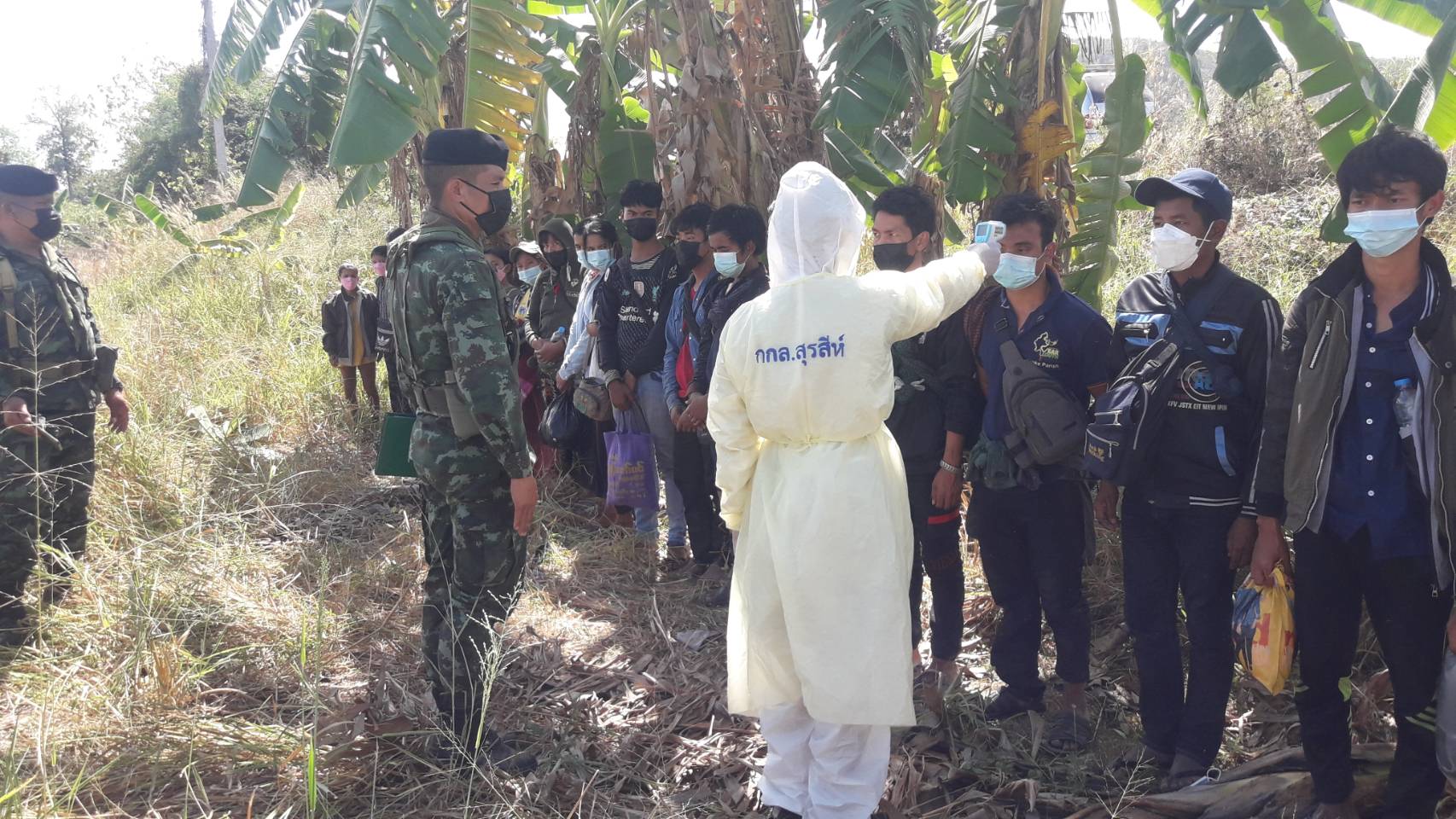 จากการสอบถามแรงงานต่างด้าวเดินทางมาจาก จังหวัดพะโค จังหวัดย่างกุ้ง จังหวัดทวาย ประเทศเมียนมา จะเดินทางไปทำงานที่ กรุงเทพฯ. จังหวัดสมุทรสาคร จังหวัดสมุทรปราการจังหวัดชลบุรีจังหวัดราชบุรี จังหวัดสงขลา และจังหวัดกาญจนบุรี โดยเสียค่าใช้จ่ายให้นายหน้าไปแล้ว 17,000 – 25,000 บาท ต่อคน บางคนจ่ายแล้ว บางคนจ่ายเมื่อถึงจุดหมาย โดยแรงงานต่างด้าวเดินมาช่องธรรมชาติ ทางด้านทิศตะวันออก ของช่องทางพุน้ำ เข้าดำเนินการ เจ้าหน้าที่จึงได้ทำประวัติและตรวจวัดอุณหภูมิร่างกายของแรงงานต่างด้าวทั้งหมด ขั้นต้นไม่พบผู้ที่มีอุณหภูมิร่างกายเกิน 37.5องศา เจ้าหน้าที่จึงได้ควบคุมตัวแรงงานต่างด้าวทั้งหมดไว้ไปที่จุดตรวจบ้านห้วยน้ำขาว เพื่อรอให้ ตำรวจตรวจคนเข้าเมือง (ตม.)ผลักดันกลับประเทศที่ บริเวณช่องทางธรรมชาติ (หุบสังข์ทอง) บ้านพุน้ำร้อน หมู่ที่ 12 ตำบลบ้านเก่า อำเภอเมือง จังหวัดกาญจนบุรี