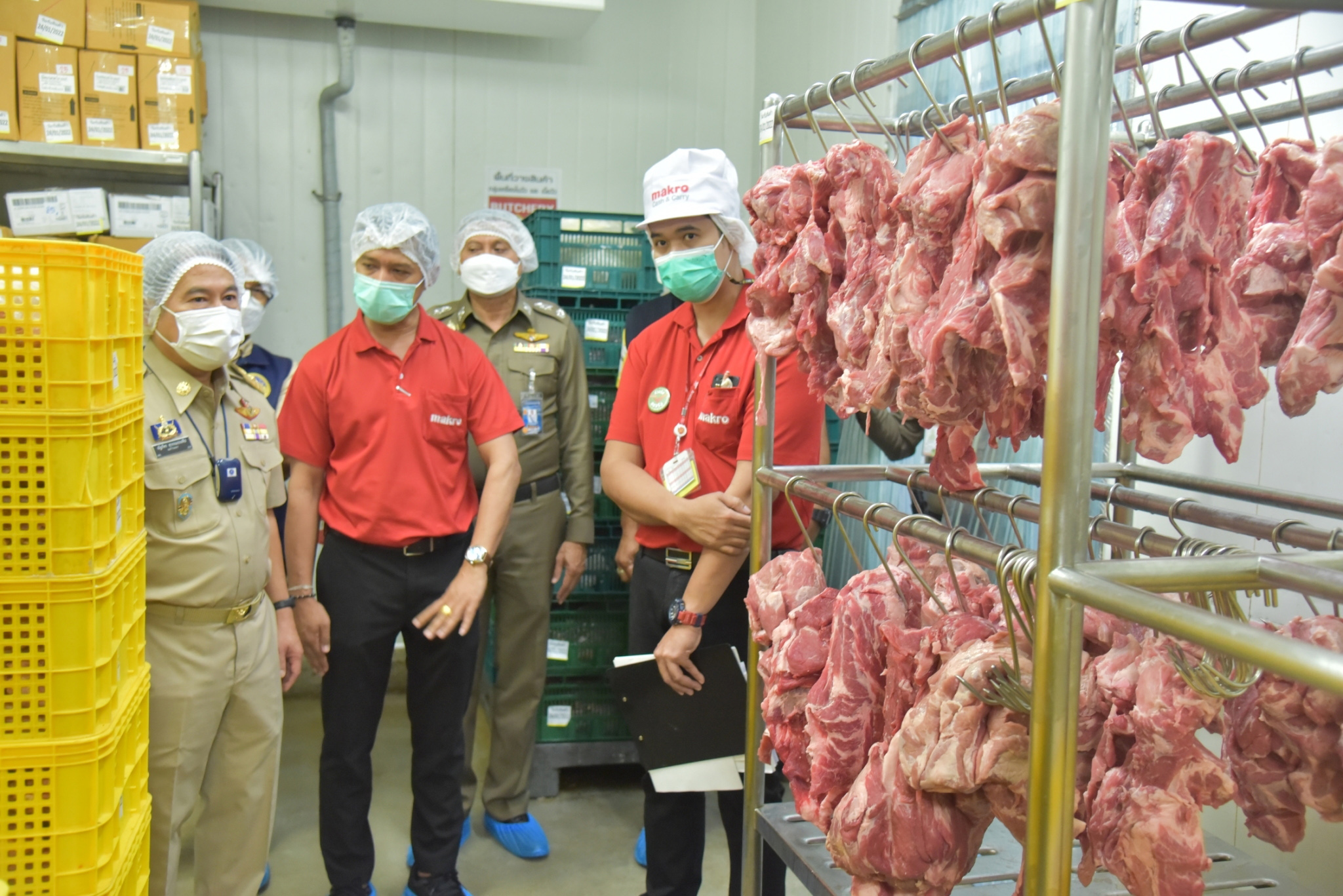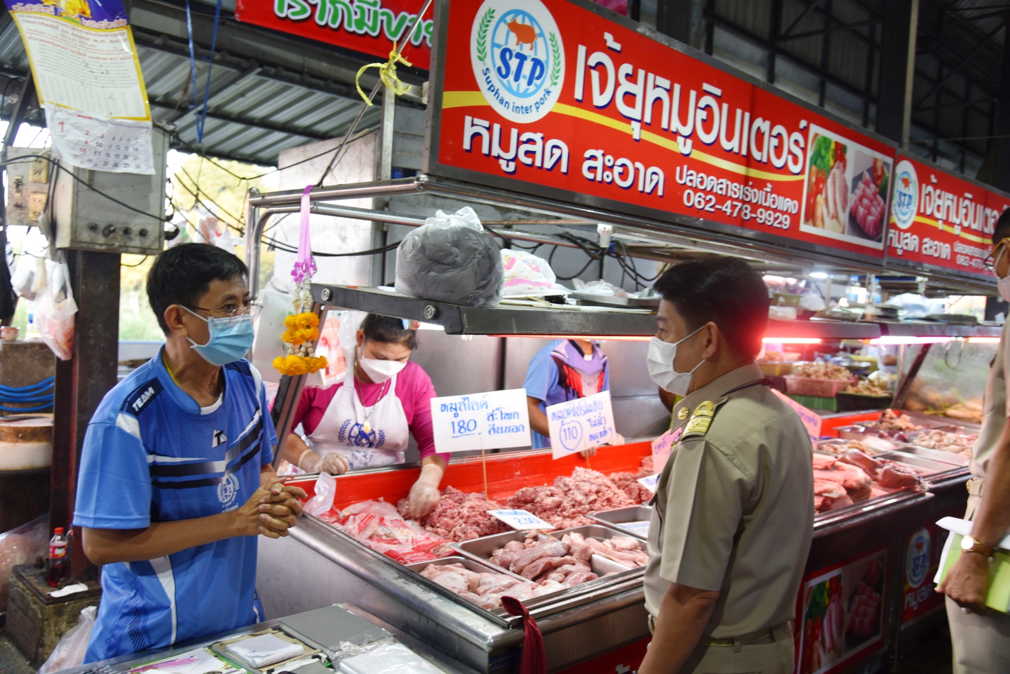 จากนั้นผู้ว่าราชการจังหวัดสุพรรณบุรี พร้อมคณะเดินทางไปที่บริษัท สุพรรณอินเตอร์พอร์ด จำกัด (เจ๊ยุ หมูอินเตอร์) ต.ดอนกำยาน อ.เมืองสุพรรณบุรี ติดตามสถานการณ์การเก็บเนื้อหมู ที่ห้องเย็น ตามประกาศคณะกรรมการกลางว่าด้วยราคา สินค้าและบริการ ฉบับที่ 2 เรื่องการแจ้งปริมาณ ราคา หาที่เก็บและจัดทำบัญชีคุมสินค้าสุกร เนื้อสุกร จังหวัดสุพรรณบุรี มีห้องเย็นเก็บสินค้าอาหารสด จำนวน 4 แห่ง ได้สั่งการให้เจ้าหน้าที่เข้าไปตรวจสอบ เพื่อเป็นการป้องกันและป้องปราม มิให้ผู้ประกอบการกักตุนเนื้อสุกรที่กำลังมีราคาแพง หากฝ่าฝืนมีโทษจำคุกไม่เกิน 1 ปี หรือปรับไม่เกิน 20,000 บาท หรือทั้งจำทั้งปรับ