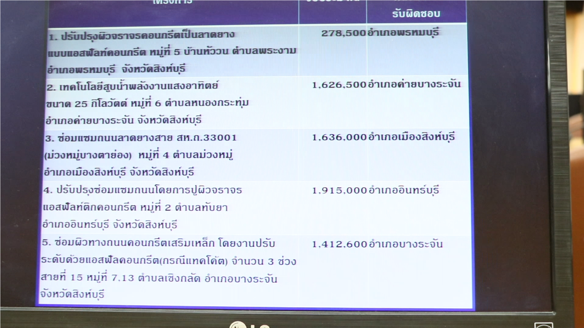 ที่ห้องประชุมขุนสรรค์พันเรือง ชั้น 5 ศาลากลางจังหวัดสิงห์บุรี พลเอก สุชาติ ผ่องพุฒิ หัวหน้าคณะทำงานกำกับและติดตามการปฏิบัติราชการในภูมิภาค เขตตรวจราชการที่ 1 พร้อมด้วยนางรุ่งรัตนา บุญหลง ผู้ตรวจราชการสำนักนายกรัฐมนตรี เขต 1 พร้อมคณะ ได้มาติดตามการของบประมาณเร่งด่วนงบในความรับผิดชอบของนายกรัฐมนตรี(พลเอก ประวิตร วงษ์สุวรรณ) เพื่อดูถึงเหตุผลความจำเป็นเร่งด่วนที่ต้องเร่งดำเนินการตามโครงการที่จังหวัดสิงห์บุรีนำเสนอขอไปยังสำนักงบประมาณ ซึ่งก็มีนายชัยชาญ สิทธิวิรัชธรรม ผู้ว่าราชการจังหวัดสิงห์บุรี พร้อมด้วยรองผู้ว่าราชการจังหวัดสิงห์บุรีทั้ง 2 ท่าน ปลัดจังหวัดสิงห์บุรี กอ.รมน.จังหวัดสิงห์บุรี หัวหน้าส่วนราชการ และผู้ที่เกี่ยวข้องให้การตอนรับและนำเสนอโครงการที่ขอรับการจัดสรรงบประมาณ ก่อนที่จะลงพื้นที่ไปดูสถานที่ดำเนินโครงการ ในโครงการก่อสร้างสถานีสูบน้ำระบบพลังงานแสงอาทิตย์ ที่หมู่ที่ 6 ตำบลคอทราย โครงการวางท่อเมนน้ำประปา ตำบลโพสังโฆ อำเภอค่ายบางระจัน และโครงการซ่อมแซมถนนลาดยาง ที่ชำรุดจากน้ำในแม่น้ำลพบุรีลดระดับลงอย่างรวดเร็ว ที่ตำบลม่วงหมู่ อำเภอเมือง จังหวัดสิงห์บุรี