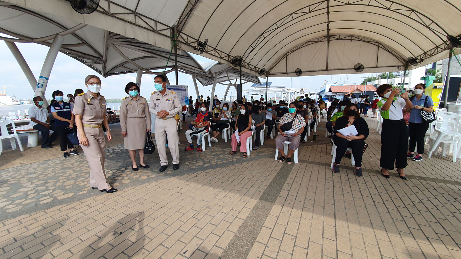 *****น.ส.นันทิดา แก้วบัวสาย นายก อบจ.สมุทรปราการ ได้กล่าวว่า ในช่วงแรกนั้นจะเปิดฉีดวัคซีน 3วันแรกให้กับกลุ่มเปราะบาง ผู้ป่วยติดเตียง คนพิการ และเด็กที่มีอายุ 12 ปีขึ้นไปที่ได้ลงทะเบียนไว้ จำนวน 3,600 คน ที่ลงทะเบียนฉีดเข็มแรกกันไว้ หลังจากนั้นก็จะเป็นคิวของผู้ที่ได้ลงทะเบียนไว้ก็จะเริ่มตั้งแต่วันที่ 26 มกราคม คือ 3 วันแรกที่จัดอยู่ในสภากาชาดที่กำหนดไว้ คือ กลุ่มเปราะบาง ผู้ป่วยติดเตียง คนพิการ และเด็กที่มีอายุ 12-24 ปี และสำหรับผู้ที่ลงทะเบียนฉีดเข็ม 3 ก็จะเริ่มฉีดให้ตั้งแต่วันที่ 26 มกราคมเป็นต้นไปจนถึงวันที่ 31 มีนาคม 2565 ซึ่งในวันนี้ก็ต้องขอขอบคุณชาวจังหวัดสมุทรปราการ ที่ให้ความสำคัญไม่ว่าการฉีดวัคซีนซึ่งเป็นสิ่งที่จำเป็นในช่วงที่โควิด 19 ยังคงมีการแพร่ระบาดอยู่ และก็ต้องขอขอบคุณสภากาชาดไทยด้วย ที่ได้มอบวัคซีนโมเดอร์น่า มาให้ชาวจังหวัดสมุทรปราการ ได้ฉีดกันถึง 1 แสนโดส และก็ต้องขอขอบคุณท่านผู้ว่าราชการจังหวัดที่ได้ให้ใช้สถานที่ริมเขื่อนเจ้าพระยาหน้าศาลากลางจังหวัดสมุทรปราการ เป็นสถานที่ฉีดวัคซีนให้กับพี่น้องประชาชน และขอบคุณเจ้าหน้าที่ทุกท่านด้วยทั้งสาธารณสุขจังหวัด และบุคลากรทางการแพทย์เจ้าหน้าที่ อบจ. ซึ่งในครั้งนี้เราก็ทำงานกันเป็นครั้งที่สองของการฉีดวัคซีน ซึ่งเริ่มต้นมาตั้งแต่กลางปีที่แล้ว และตอนนี้โควิดกลับมาอีกครั้งเราก็มาบริการฉีดวัคซีนให้กับพี่น้องประชาชนอีกเป็นรอบที่สองซึ่งเป็นวัคซีนโมเดอร์นา ส่วนในเรื่องการจัดระเบียบของผู้ที่มารอรับการฉีดวัคซีนในครั้งนี้ เราได้มีการจัดวางระบบและแยกเป็นส่วน ๆ โดยมานั่งรอที่ด้านนอกก่อนเป็นจุดแรก และก่อนที่จะเข้ามาในกระโจมสีขาว ก็ต้องผ่านการตรวจวัดอุณหภูมิของร่างกายและล้างมือด้วยเจวแอลกอฮอล์ก่อนที่จะเข้ามาด้านในซึ่งมีการจัดระเบียบการนั่งที่มีการเว้นระยะห่าง ซึ่งเท่าที่ดูในวันนี้เราจะต้องมีการติดตั้งพัดลมดูดอากาศเพิ่มอีกเพื่อให้อาการได้เกิดการถ่ายเทได้มากขึ้น ก็เพื่อให้พี่น้องได้รับความสะดวกสบายมากยิ่งขึ้นในการเข้ารับการฉีดวัคซีนในครั้งนี้ เพราะในแต่ละวันจะมีพี่น้องประชาชนเดินทางมารับการฉีดวัคซีนวันละกว่า 1 พันคน เพราะฉะนั้นริมเขื่อนแห่งนี้ก็เหมาะที่จะเป็นสถานที่ตั้งศูนย์ฉีดวัคซีนที่พี่น้องประชาชนได้รับความสะดวก