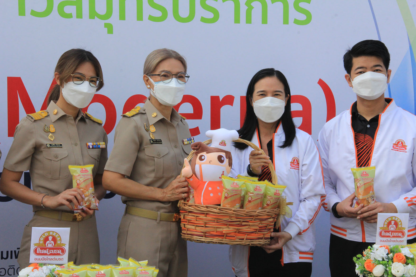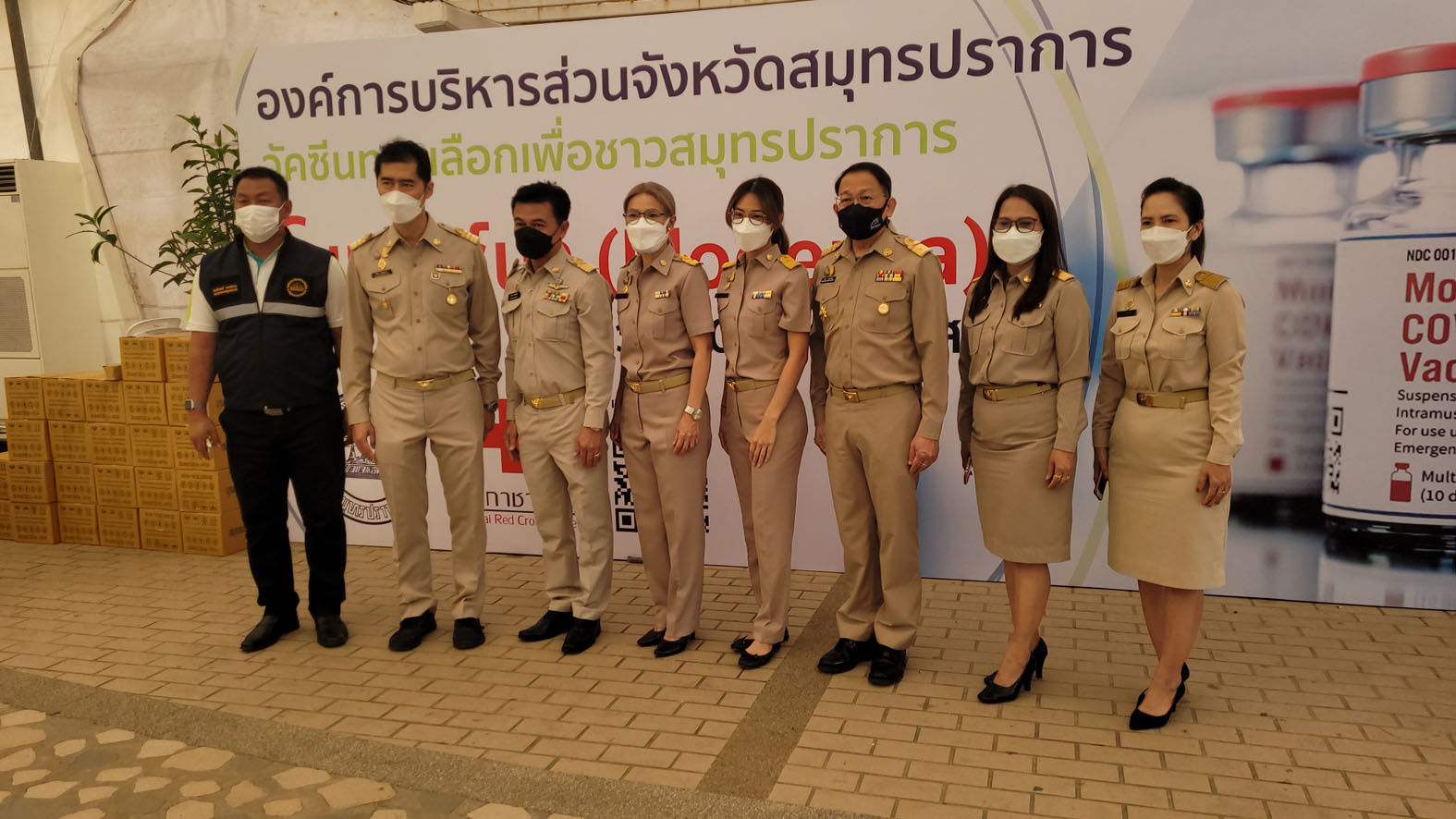 *****เมื่อเวลา 10.00น.วันที่ 24 มกราคม 2565 น.ส.นันทิดา แก้วบัวสาย นายกองค์การบริหารส่วนจังหวัดสมุทรปราการ พร้อมด้วยนายพิริยะ โตสกุลวงศ์ นายสมลักษณ์ ควรสงวน รองนายก อบจ.สมุทรปราการ น.ส.ชนม์ทิดา อัศวเหม เลขานุการนายก อบจ.สมุทรปราการ ได้เดินทางมาที่ศูนย์ฉีดวัคซีนโมเดอร์น่า ริมเขื่อนเจ้าพระยา หน้าศาลากลางจังหวัดสมุทรปราการ เพื่อตรวจเยี่ยมหน่วยฉีดวัคซีน ที่ทางสภากาชาดไทยได้จัดสรรโควตาวัคซีนโมเดอร์น่า มาให้แก่องค์การบริหารส่วนจังหวัดสมุทรปราการ จำนวน 1 แสนโดส เพื่อนำไปฉีดให้ประชาชนกลุ่มเปราะบาง บุคลากรทางการแพทย์ และกลุ่มประชาชนทั่วไปที่อาศัยอยู่ในจังหวัดสมุทรปราการ โดยไม่เสียค่าใช้จ่าย ซึ่งในวันนี้เป็นวันแรกที่เปิดฉีดวัคซีนโมเดอร์นาให้กับประชาชน โดยที่ลงทะเบียนรับวัคซีนโมเดอร์นา แบบออนไลน์ ตั้งแต่วันที่ 22 ธันวาคม 2564 เป็นต้นมา ซึ่งในวันนี้พบว่ามีประชาชนเดินทางมารับการฉีดวัคซีนกว่า 1 พันคน โดยมีบริษัท เอ็น.ซี.เอส.โกลด์เบรด จำกัด ได้นำขนมปังโกลด์เบรด จำนวน 1,000 ชิ้น มามอบให้กับ น.ส.นันทิดา แก้วบัวสาย นายก อบจ.สมุทรปราการ เพื่อนำไปแจกให้กับผู้ที่มารับการฉีดวัคซีนในวันนี้ ก่อนที่ น.ส.นันทิดา และคณะจะเดินเข้าไปทักทายประชาชนที่มารอรับการฉีดวัคซีน และให้กำลังในบุคลากรทางการแพทย์และเจ้าหน้าประจำศูนย์ฉีดวัคซีน ซึ่งมีการจัดคิวตามเวลานัดหมายการฉีดวัคซีน เพื่อความเป็นระเบียบและลดการแออัด