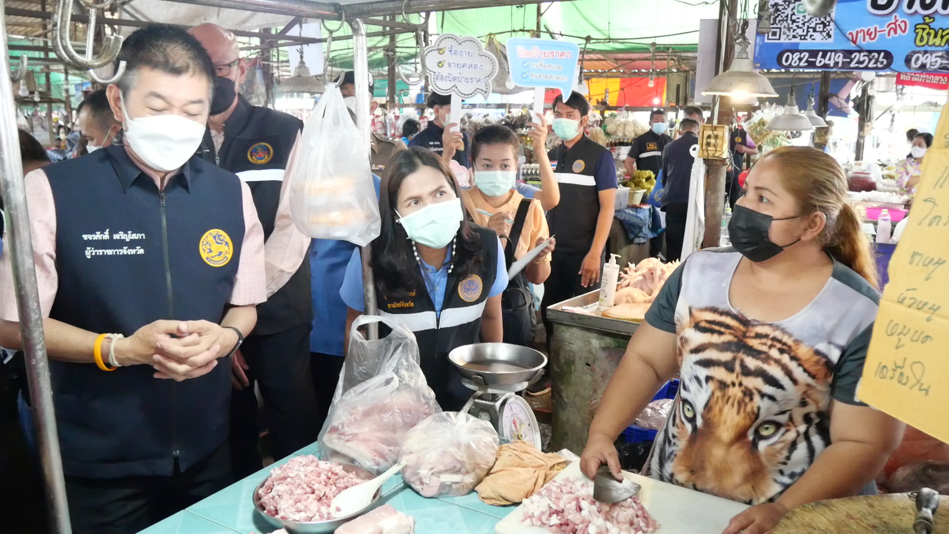 ที่ตลาดสดท่ากลางเขตเทศบาลนครตรัง นายขจรศักดิ์ เจริญโสภา ผู้ว่าราชการจังหวัดตรัง พร้อมด้วย นางสาวสุภากิตติ์ เกลี้ยงสงค์ พาณิชย์จังหวัดตรัง, หัวหน้าศูนย์ดำรงธรรมจังหวัดตรัง, เจ้าหน้าที่เทศบาลนครตรัง,เจ้าหน้าที่สำนักงานปศุสัตว์อำเภอเมืองตรังและเจ้าหน้าที่ตำรวจ สภ.เมืองตรัง ลงพื้นที่ตรวจสอบราคาสินค้าเนื้อสัตว์และผักสดในตลาดสดท่ากลาง ซึ่งบรรยากาศทั่วไปวันนี้พบว่าแผงหมูสด ไก่สด หลายแผงปิดเงียบ บางแผงเนื้อหมู เนื้อไก่ ก็มีไม่มากนักเนื่องจากเป็นวันพระ จะเห็นได้ว่าทั้งแผงเนื้อสัตว์และแผงผักสดพ่อค้าแม่ค้าได้ติดป้ายราคาแสดงให้ผู้บริโภคได้เห็นกันชัด ๆ ในขณะที่ผู้บริโภคก็ยังมีการจับจ่ายกันปกติ ผู้บริโภคบางรายลดจำนวนปริมาณการซื้อ แต่บางรายก็ซื้อตามปกติและเข้าใจสถานการณ์ในช่วงนี้