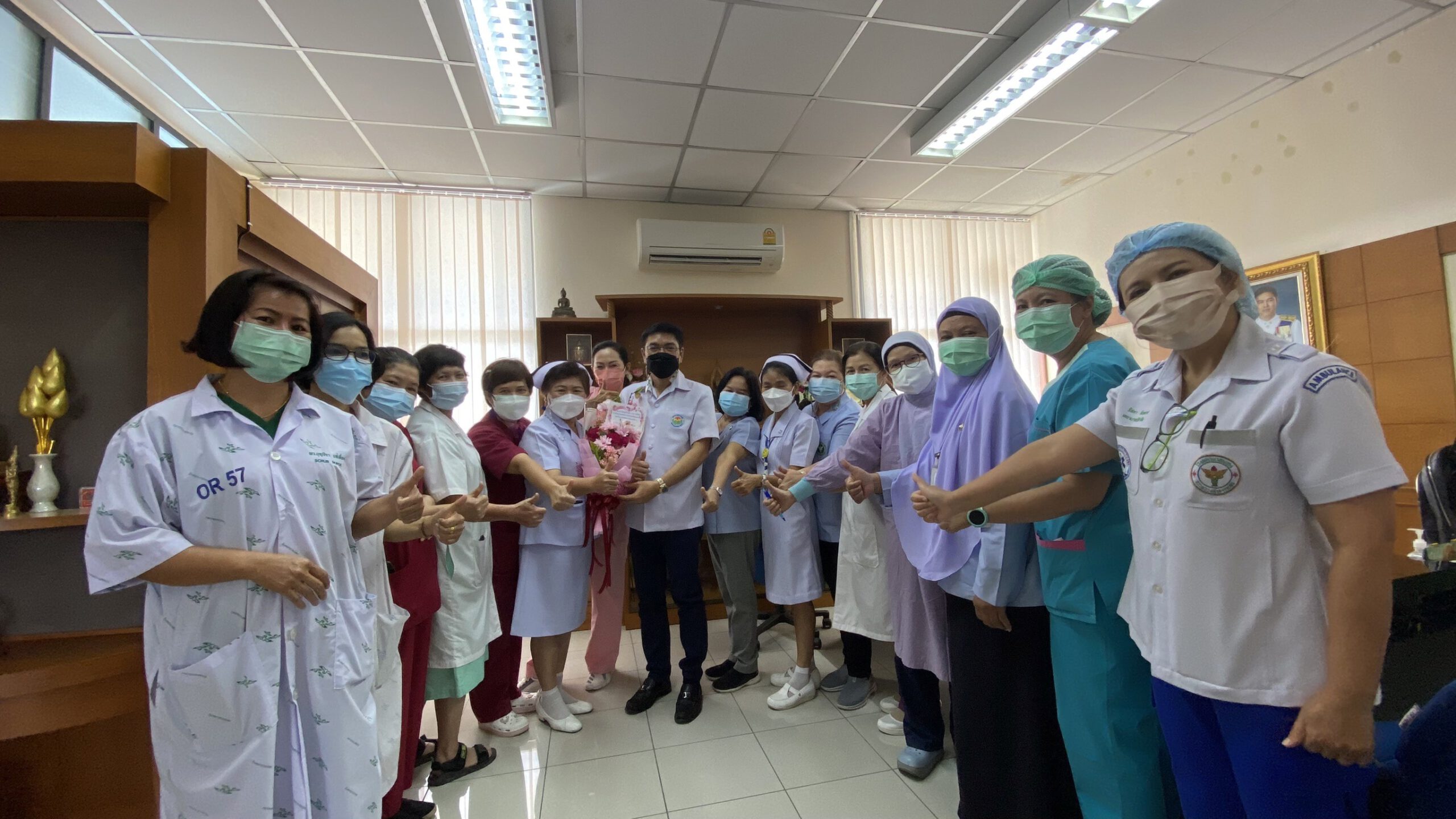 รับมอบช่อดอกไม้ แสดงความยินดี จากทีม รพ.เบตง