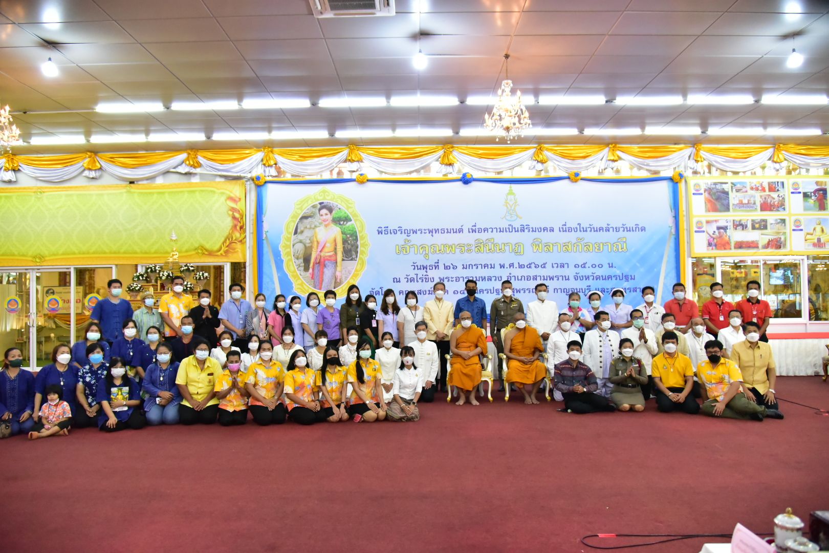 และผู้ว่าราชการจังหวัดนครปฐม ถวายผ้าไตรและเครื่องไทยธรรมพระราชทาน ของพระบาทสมเด็จพระเจ้าอยู่หัวฯ ที่ทรงพระกรุณาโปรดเกล้าโปรดกระหม่อม พระราชทานแก่ประธานสงฆ์ ในการจัดพิธีเจริญพระพุทธมนต์ เนื่องในวันคล้ายวันเกิด เจ้าคุณพระสินีนาฏ พิลาสกัลยาณี วันที่ 26 ม.ค.2565