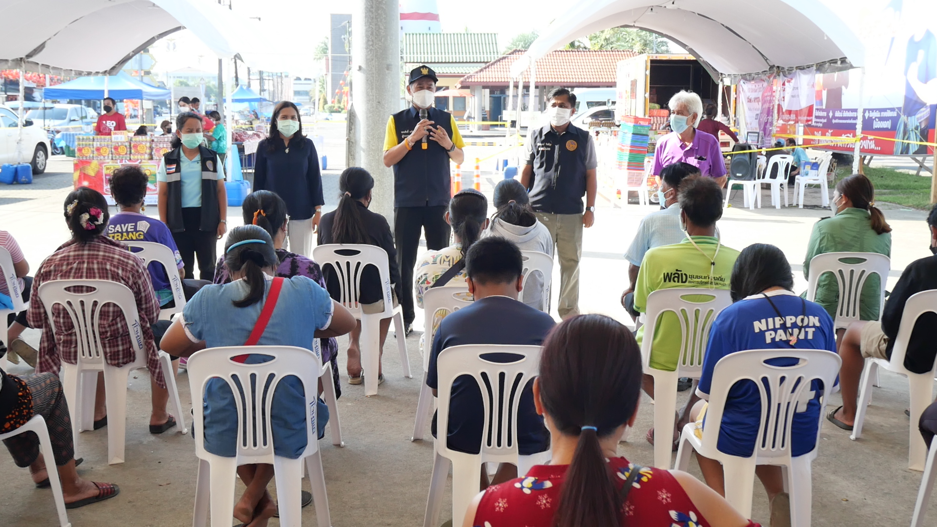 ที่ท่าเทียบเรือแพขนานยนต์ อำเภอกันตัง จังหวัดตรัง นายขจรศักดิ์ เจริญโสภา ผู้ว่าราชการจังหวัดตรัง พร้อมด้วยนายจักรพงศ์ รัชนีกุล นายอำเภอกันตัง, นางสาวสุภากิตติ์ เกลี้ยงสงค์ พาณิชย์จังหวัดตรัง ตรวจเยี่ยมการจัดจำหน่ายสินค้า ตามโครงการจำหน่ายสินค้าอุปโภค- บริโภค ราคาถูกสู้ภัยโควิด-19 จังหวัดตรัง ระยะที่ 3 ตามที่จังหวัดตรังได้อนุมัติงบประมาณให้สำนักงานพาณิชย์จังหวัดตรัง ดำเนินการจัดกิจกรรมในพื้นที่ 10 อำเภอๆ ละ 2 วัน เพื่อบรรเทาภาวะค่าครองชีพของประชาชนที่ได้รับผลกระทบจากสถานการณ์การแพร่ระบาดของโรคติดเชื้อไวรัสโคโรนา 2019 รวมทั้งกระตุ้นเศรษฐกิจให้มีการจับจ่ายใช้สอยเพิ่มขึ้น โดยดำเนินการภายใต้มาตรการป้องกันและควบคุมการแพร่ระบาดของโรคโควิด-19 อย่างเคร่งครัด