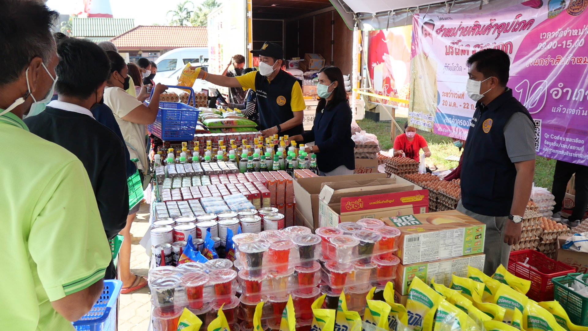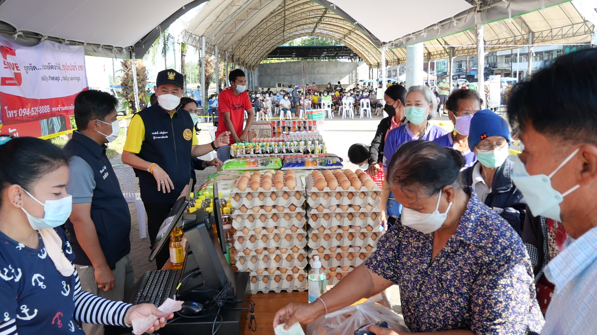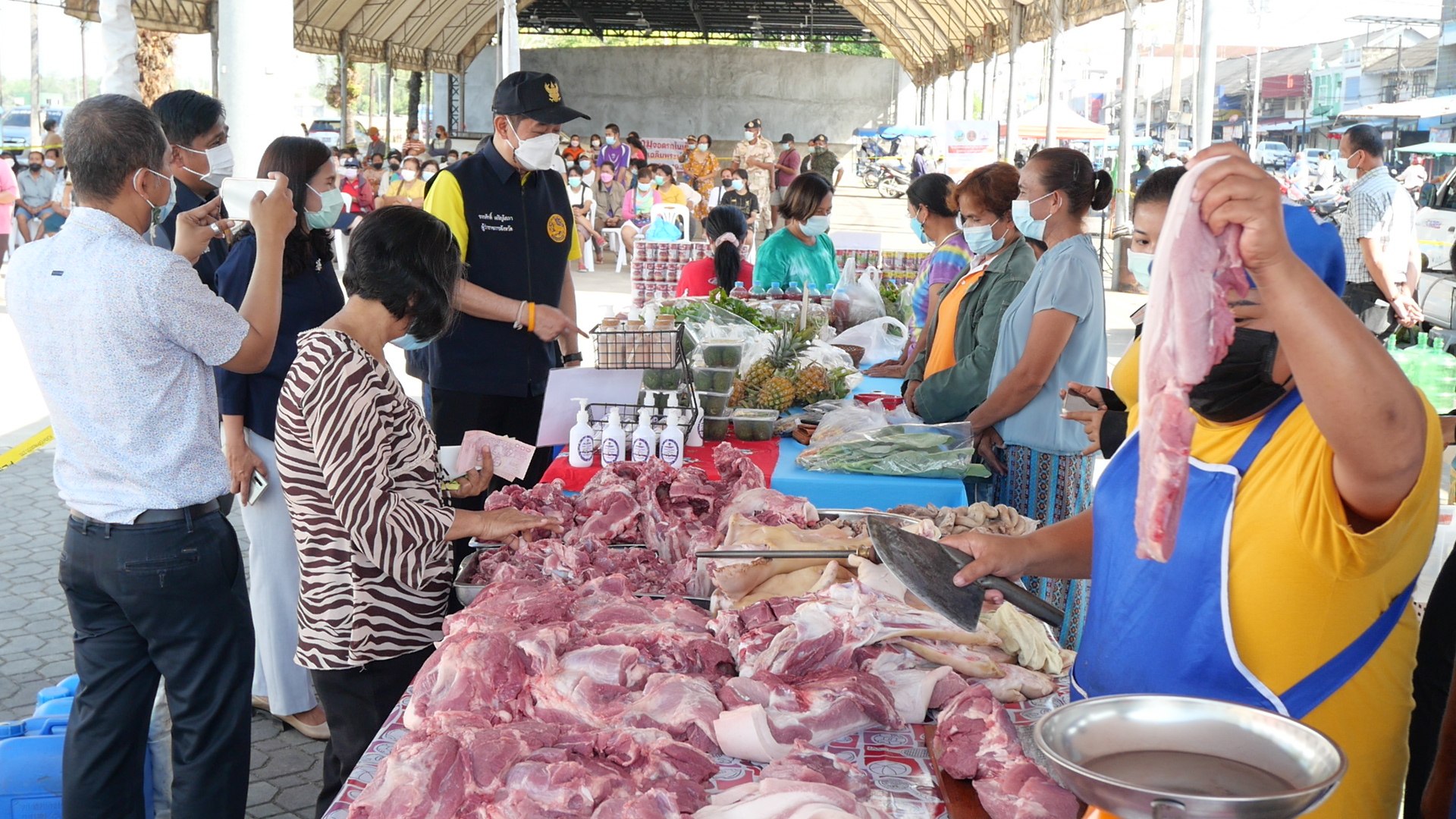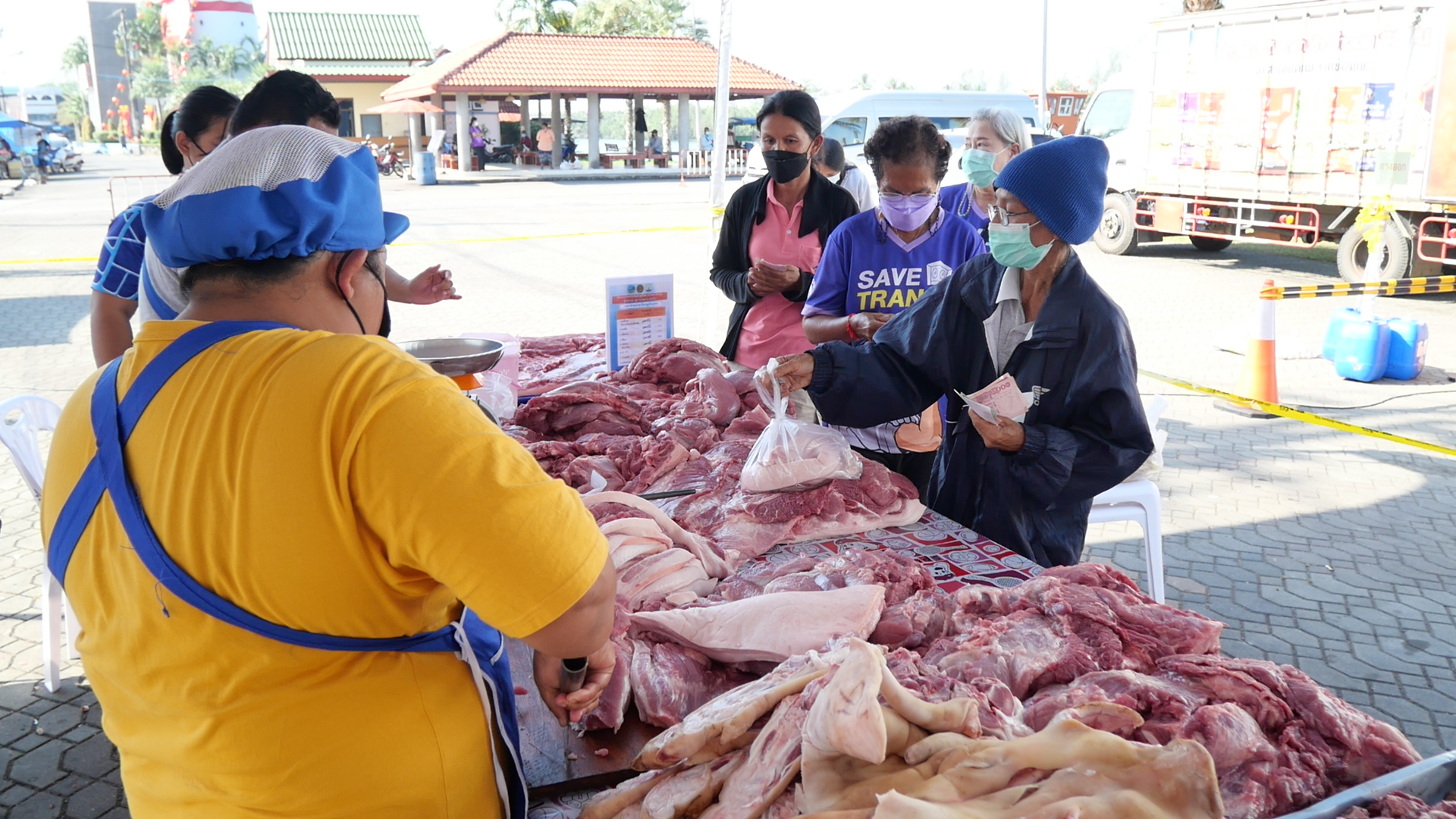 นายขจรศักดิ์ เจริญโสภา ผู้ว่าราชการจังหวัดตรัง กล่าวว่า การจัดโครงการจำหน่ายสินค้าอุปโภคบริโภคราคาถูก สู้ภัยโควิด-19 จังหวัดตรัง ครั้งที่ 3 จำหน่ายสินค้าที่เกี่ยวข้องกับการดำรงชีวิตประจำวัน เพื่อเป็นทางเลือกของพี่น้องประชาชนในการจับจ่ายสินค้าราคาประหยัด เพื่อบรรเทาความเดือดร้อนของประชาชน ทั้งนี้ประชาชนมีความดีใจเป็นอย่างมากและขอบคุณทางจังหวัดตรัง ที่ออกมาตรการช่วยเหลือประชาชนในการนำสินค้ามาจำหน่าย เพื่อเป็นการช่วยเหลือและแบ่งเบาภาระค่าใช้จ่ายให้กับประชาชนในช่วงที่สินค้ามีการปรับราคาเพิ่มสูงขึ้น ซึ่งสินค้าโดยเฉพาะข้าวสาร ไข่ไก่ แผงละ 65 บาท จำหน่ายวันละ 300แผง น้ำมันพืช น้ำตาลทรายและเนื้อหมู สามารถลดรายจ่ายให้กับประชาชนได้ในช่วงเทศกาลตรุษจีน ราคาหมูที่นำมาจำหน่ายถูกกว่าท้องตลาด หมูเนื้อแดง กิโลกรัมละ 150 บาท ในท้องตลาด อยู่ที่ 180-200 บาท ทำให้ประชาชนออกมาซื้อจำนวนมาก โดยนำหมูสดมาจำหน่าย วันละ 2 ตัว การจัดโครงการจะจัดจำหน่ายสินค้าทั้ง 10 อำเภอ อำเภอละ 2 วัน ขณะนี้ดำเนินการไปแล้ว 3 อำเภอ อย่างไรก็ตามจะมีการประเมินสถานการณ์ หากสิ้นสุดโครงการจะมีการต่อโครงอีกเป็นครั้งที่ 4 หรือไม่