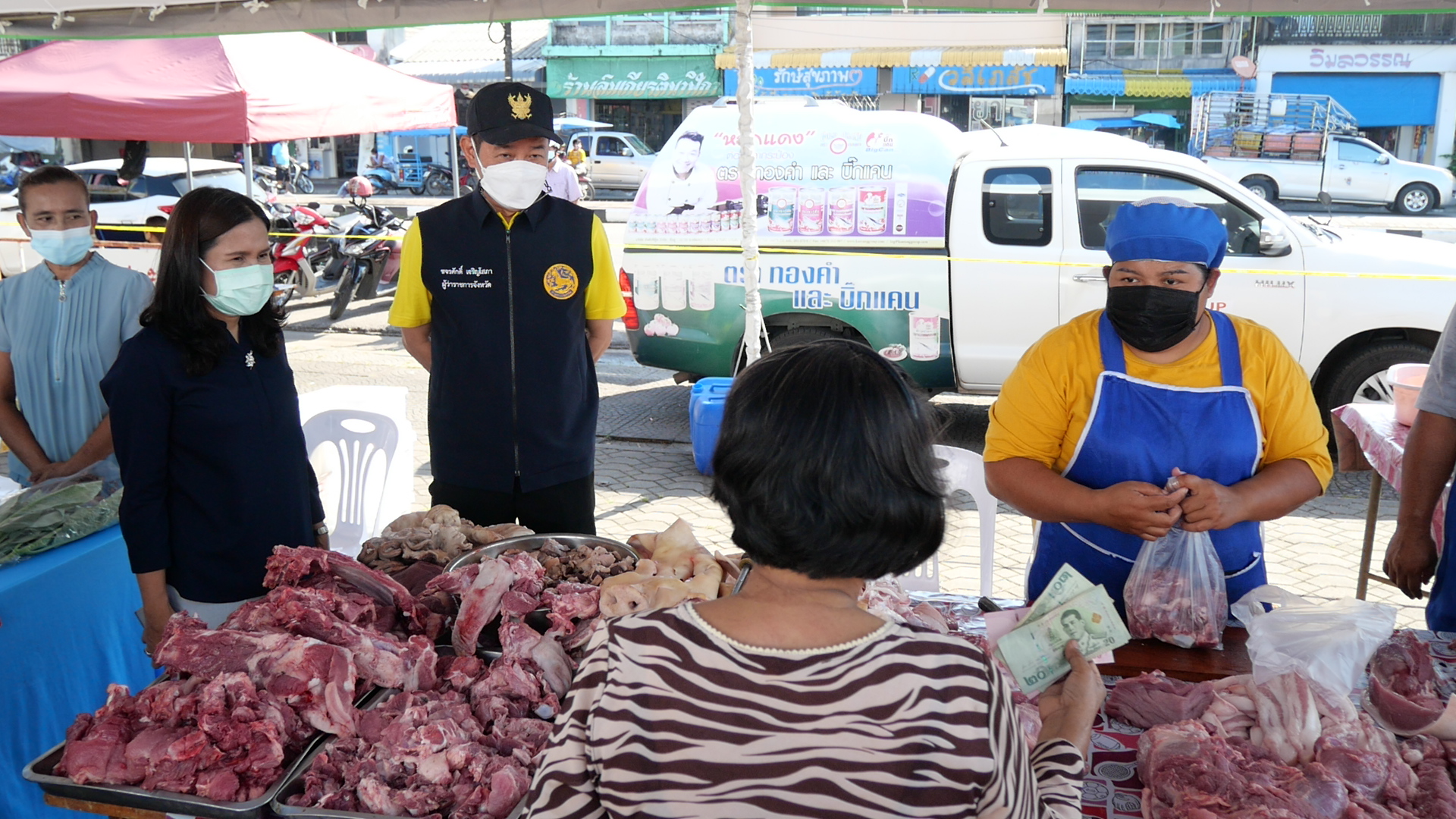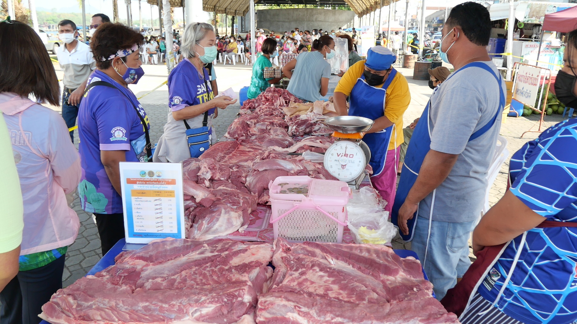 โดยในวันนี้ ทางสำนักงานพาณิชย์จังหวัดตรัง ได้นำสินค้ามาจำหน่าย อาทิ ไข่ไก่เบอร์ 2 จำนวน 300 แผงต่อวัน ปกติราคา 108-110 บาท จำหน่ายเพียง 65 บาทเท่านั้น น้ำมันพืชปาล์มขนาด 1 ลิตร วันละ 180 ขวด ปกติราคา 57-60 บาท จำหน่ายเพียง 45 บาท ทั้งนี้ให้สิทธิ์ผู้ซื้อไข่ไก่คนละ 1 แผง น้ำมันพืชคนละ 1 ขวด นอกจากนี้ยังจำหน่ายเนื้อหมูชำแหละ อาทิ หมูเนื้อแดง (ไล่/สะโพก/ขาหน้า/คอ) ราคาตลาด 180-200 บาท จำหน่ายเพียง 150 บาท สามชั้น 180-220 บาท จำหน่าย 170 บาท เนื้อสันใน ราคา 180-200 บาท จำหน่ายเพียง 170 บาท ซี่โครง ราคา 170-180 บาทจำหน่าย 160 บาท เครื่องใน (ตับ/หัวใจ) ราคา 130-140 บาทจำหน่าย 100 บาท ขา-หัว ราคา 120-130 บาท จำหน่าย 100 บาท กระดูกสัน ราคา 110-120 บาท จำหน่าย 100 บาท เครื่องในรวม จำหน่าย 50-70 บาท จำหน่าย 50 บาท