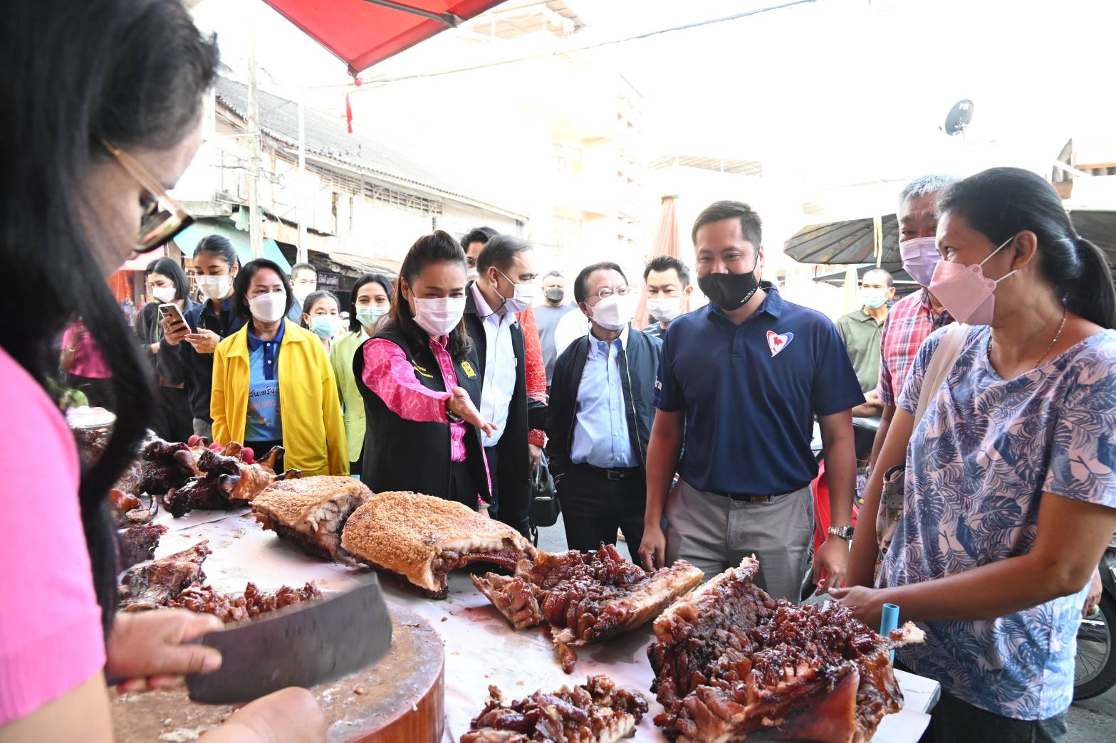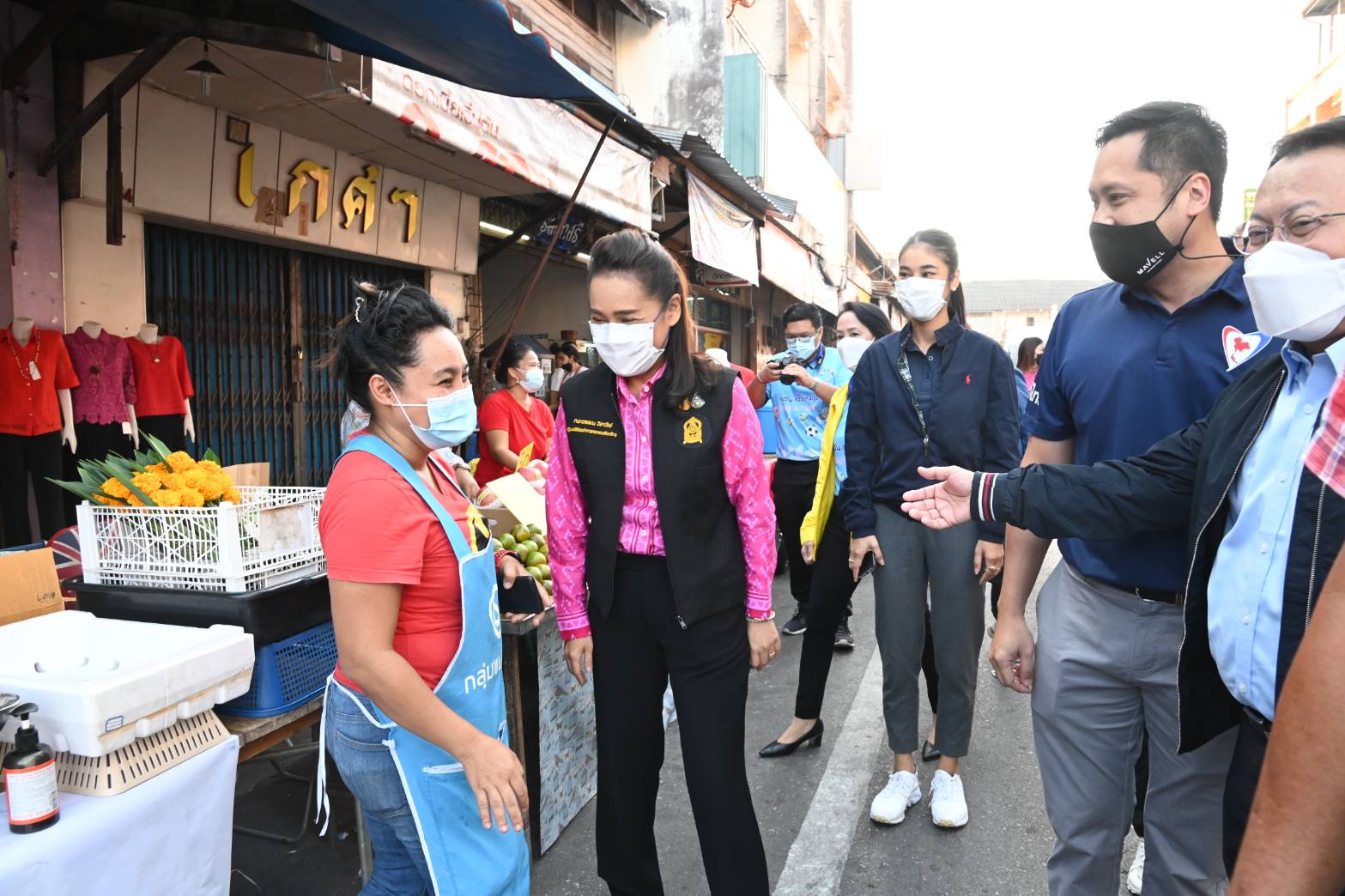 นางกนกวรรณ วิลาวัลย์ รัฐมนตรีช่วยว่าการกระทรวงศึกษาธิการ พร้อมด้วย โอ นายเอกสิทธิ์ วงศ์เทพวาณิชย์ พรรคภูมิใจไทย ตรัง พร้อมหัวหน้าส่วนราชการลงพื้นที่ตรวจ เยี่ยมให้กำลังใจพ่อค้าแม่ขายชาวตลาดสดเทศบาล อำเภอเมืองตรัง ในช่วงเทศกาลตรุษจีน ปี 2565