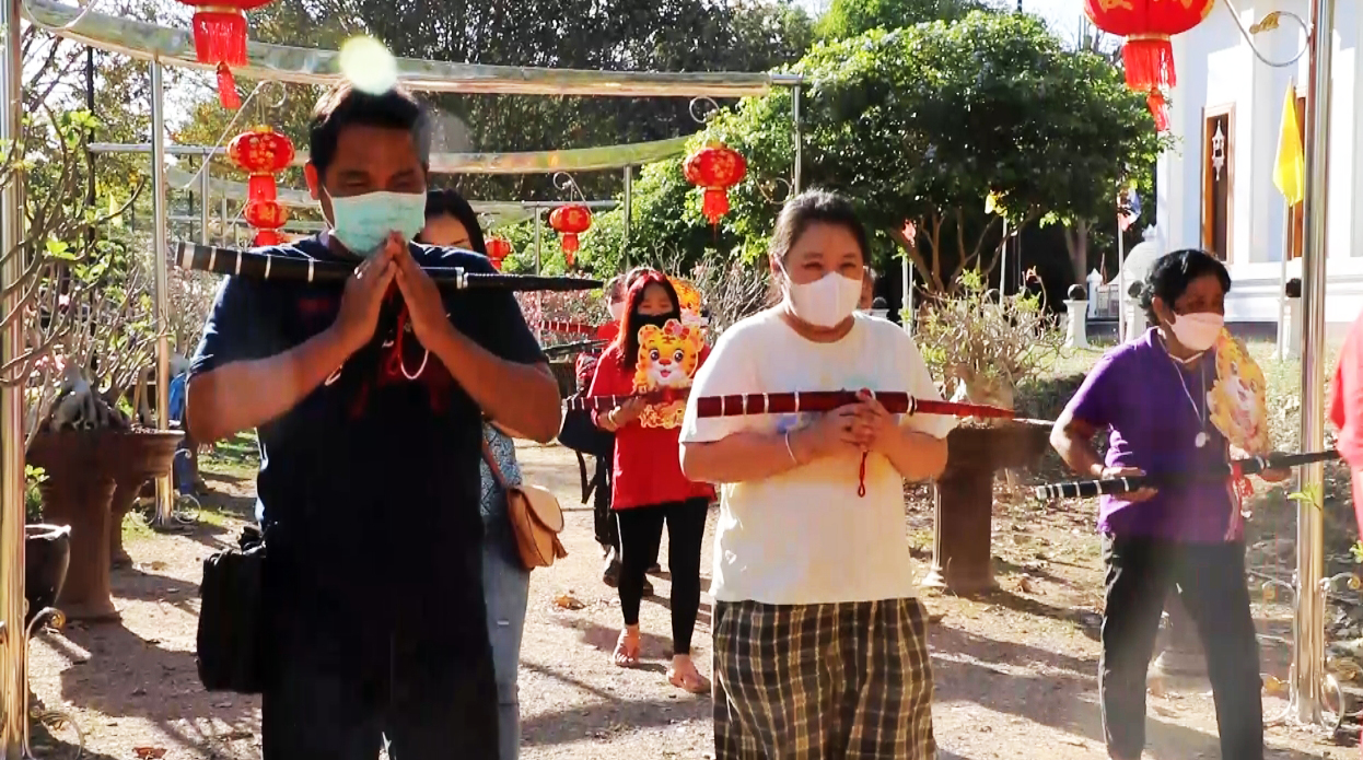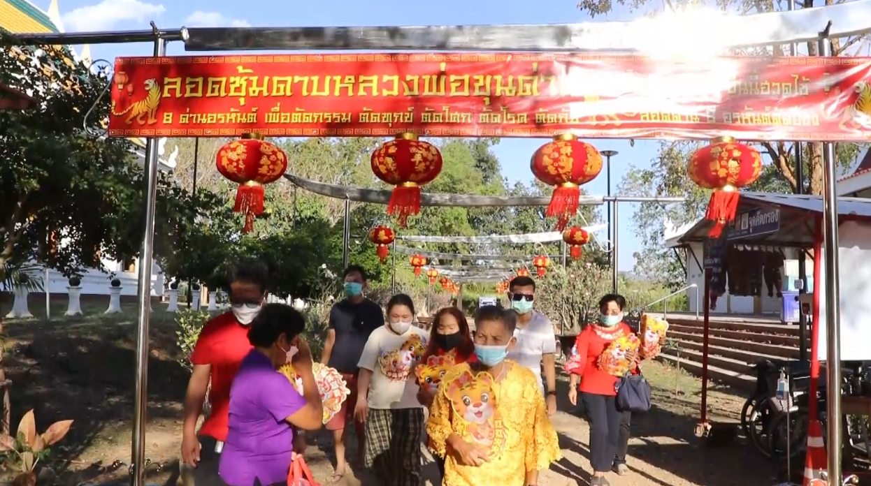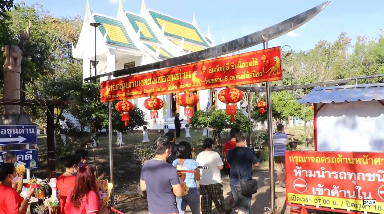 สุพรรณบุรี นักท่องเที่ยวแห่ลอดซุ้มดาบหลวงพ่อขุนด่าน8อรหันต์ตัดปีชง1เดียวประเทศ