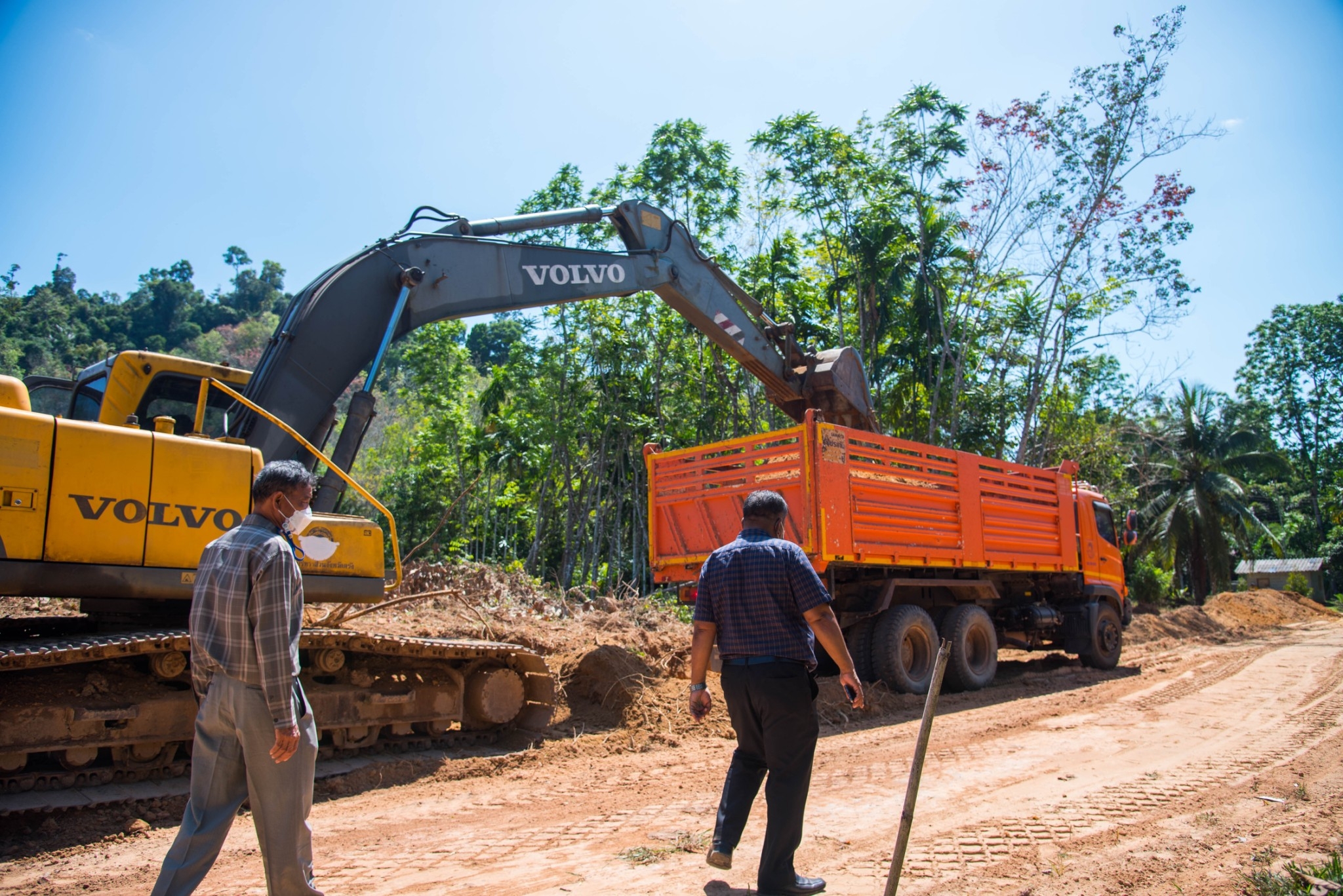 วันที่ 2 กุมภาพันธ์ 2565 นายบุ่นเล้ง โล่สถาพรพิพิธ นายก อบจ.ตรัง มอบหมายให้นายจารึก ทองหนัน รองนายก อบจ.ตรัง และนายณรงค์ พิชัยรัตน์ นายช่างโยธาอาวุโส กองช่าง อบจ.ตรัง ลงพื้นที่ติดตาม การปรับปรุงถนนลูกรังสายบ้านเคี่ยมงาม ม.8,7 ต.บ่อน้ำร้อน เชื่อมต่อ ม.2 ต.บางสัก อ.กันตัง โดยการ สนับสนุนเครื่องจักรกลชุดใหญ่ พร้อมน้ำมันเชื้อเพลิงเพื่อขยายผิวจราจรขนาด 3 เมตร เป็น 6-7 เมตร ระยะทางประมาณ 7.5 กิโลเมตร