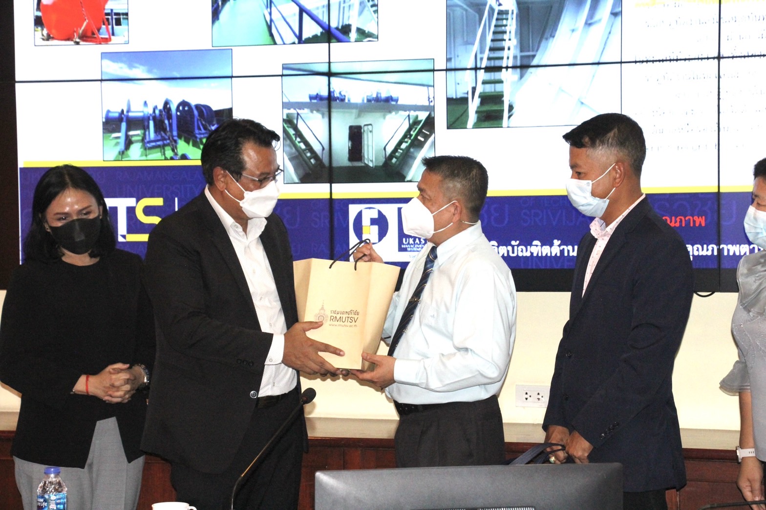 วันนี้(4 ก.พ.2565) ศาตราจารย์ ดร.สุวัจน์ ธัญรส อธิการบดีมหาวิทยาลัยเทคโนโลยีราชมงคลศรีวิชัย พร้อมด้วยผู้ช่วยศาสตราจารย์อุดร นามเสน รองอธิการบดี ผู้ช่วยศาสตราจารย์ ดร.ขวัญหทัย ใจเปี่ยม รองอธิการบดี รองศาตราจารย์จรูญ เจริญเนตรกุล คณบดีคณะวิศวกรรมศาสตร์ และผู้บริหาร อาจารย์คณะวิศวกรรมศาสตร์ ให้การต้อนรับ ดร.เฉลิมวุฒิ แท่นสุวรรณ์ ผู้อำนวยการวิทยาลัยเทคโนโลยีทางทะเลแห่งเอเชีย และผู้บริหารจากวิทยาลัยเทคโนโลยีทางทะเลแห่งเอเชีย ในโอกาสเข้าศึกษาดูงาน การดำเนินงานของหลักสูตรสาขาวิชาวิศวกรรมเครื่องกลเรือ คณะวิศวกรรมศาสตร์ มทร.ศรีวิชัย ณ ห้องประชุมศรีวิชัย สำนักงานอธิการบดี มหาวิทยาลัยเทคโนโลยีราชมงคลศรีวิชัย
