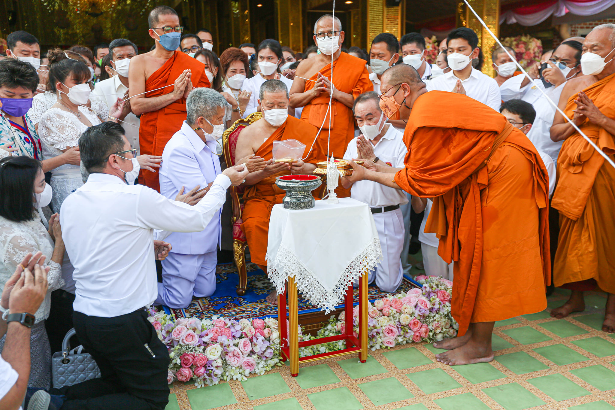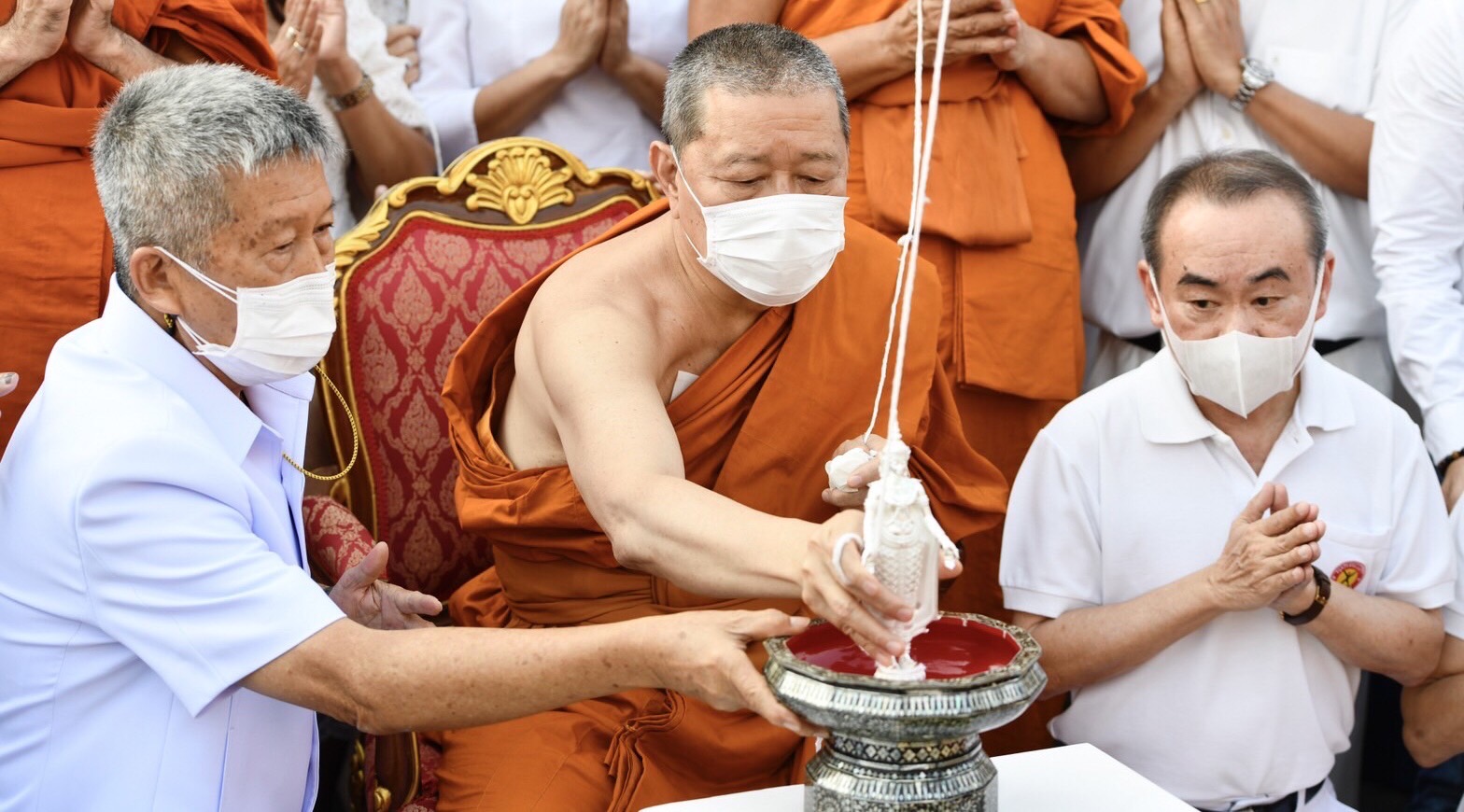 โดยมี พระเทพศาสนาภิบาล เจ้าคณะภาค 14 เจ้าอาวาสวัดไร่ขิง พระอารามหลวง พร้อมด้วยพระครูปลัดสิทธิวัฒน์ (หลวงพี่น้ำฝน) เจ้าอาวาสวัดไผ่ล้อม พระครูยติธรรมานุยุต หลวงพ่อแป๊ะ เจ้าอาวาสวัดสว่างอารมณ์(แคแถว) อ.นครชัยศรี พระเถรานุเถระ ถวายการต้อนรับ ซึ่งมี นายรัฐศาสตร์ ชิดชู รองผู้ว่าฯ วัฒนธรรมจังหวัด ผอ.สำนักงานพระพุทธศาสนาจังหวัด ข้าราชการ ผู้บริหารเนเจอร์กิฟ นักธุรกิจ นายสมชาติ (เฮียเงี๊ยบ)สาลีพัฒนา เจ้าของร้านก๋วยเตี๋ยวลูกชิ้นปลานายเงี๊ยบ นำคณะศิยานุศิษย์ ร่วมในพิธีจำนวนมาก ในระบบการตรวจป้องกันโควิด ของผู้เข้าร่วมพิธีอย่างเคร่งครัด