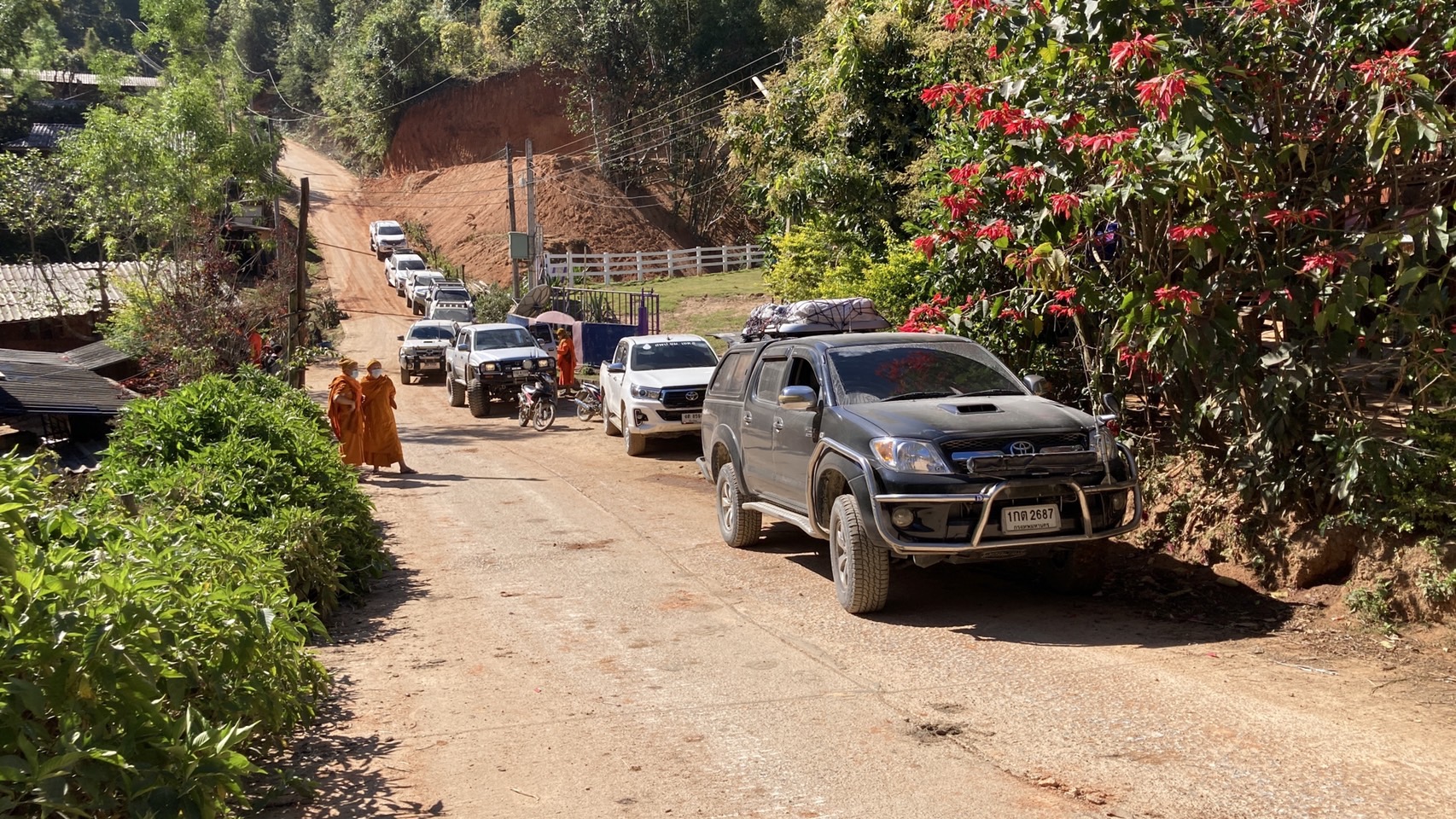 ถ้าเป็นหน้าฝน ก็ต้องเพิ่มเวลาในการเดินทางเป็นวันๆ ถึงจะออกมาถึงตัวอำเภอได้เพราะเป็นเส้นทางภูเขาและเหวลึกอันตรายมาก ยังมีถนนบางช่วงกว่า30 กิโลเมตรที่ยังเป็นดินและโคลน แต่ในช่วงหน้าแล้งก็เป็นฝุ่นแต่เดินทางได้สะดวกกว่าช่วงหน้าฝน ได้จัดอาหารทะเลแห้ง และอุปกรณ์การเรียนการสอน เครื่องปริ้นสี กระดาษขนาด เอ4 ชุดวอร์มกีฬา(กันหนาว) ผ้าเช็ดตัวเด็ก รองเท้าแตะ และสมทบเงินสดเพื่อสร้างอาคารอเนกประสงค์ใช้ในการเรียนการสอนการอบรมนักเรียน และการประชุมของผู้ปกครอง โดยทางคณะพระสงฆ์และญาติธรรม โดยรวมกันเป็นเงินประมาณ 150,000 บาท ทั้งซื้อของ และเงินสด มามอบให้กับทางโรงเรียนเพื่อให้ทางคณะครูและนักเรียนได้ใช้สนับสนุนส่งเสริมการเรียนการสอนได้สมบูรณ์ยิ่งขึ้นได้มาตรฐานตามจุดประสงค์ ต่อไป