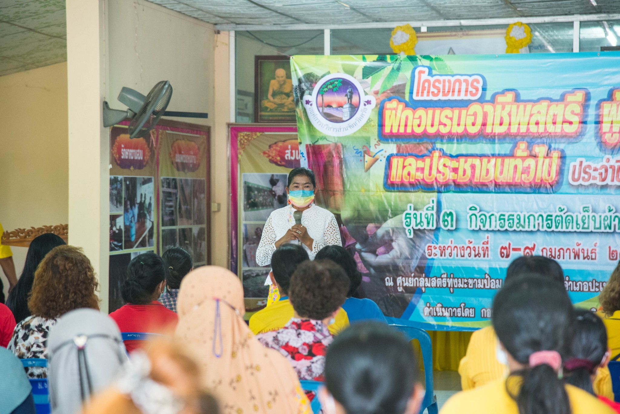 โดยมีวัตถุประสงค์เพื่อเป็นการเสริมสร้างความรู้ทักษะด้านอาชีพ เป็นแนวทางหนึ่งที่จะสร้างโอกาสและทางเลือกในการประกอบอาชีพและใช้เวลาว่างให้เกิดประโยชน์ในลักษณะของการรวมกลุ่มสร้างรายได้ให้กับครอบครัว กำหนดจัดกิจกรรมระหว่างวันที่ 7 – 9 มกราคม 2565 ให้กับสตรี ผู้สูงอายุ และประชาชนทั่วไปในพื้นที่อำเภอปะเหลียน จำนวน 50 คน โดยได้รับความร่วมมือจากศูนย์กลุ่มสตรีทุ่งมะขามป้อม คุณพรทิพย์ ทั่นเส้ง และคุณเยาวศรี นะวะกะ มาเป็นวิทยากรให้ความรู้