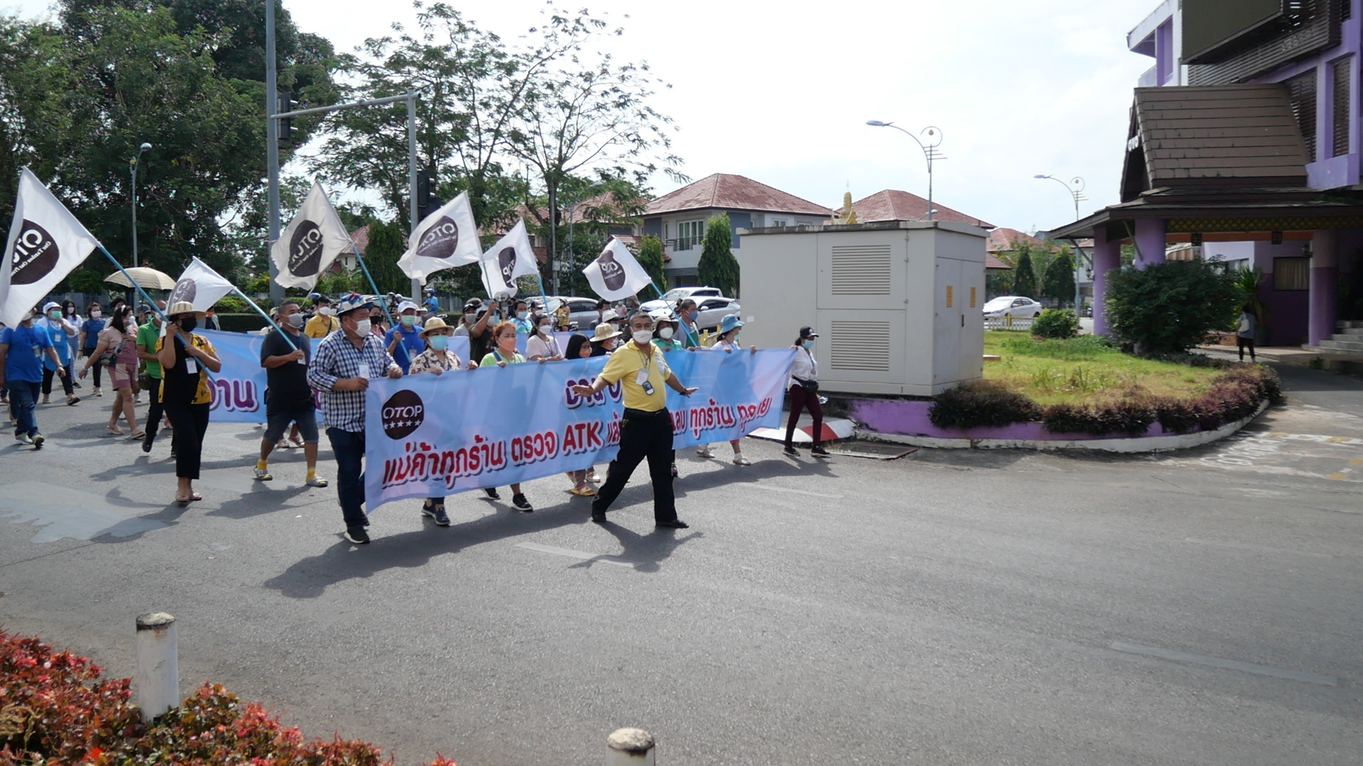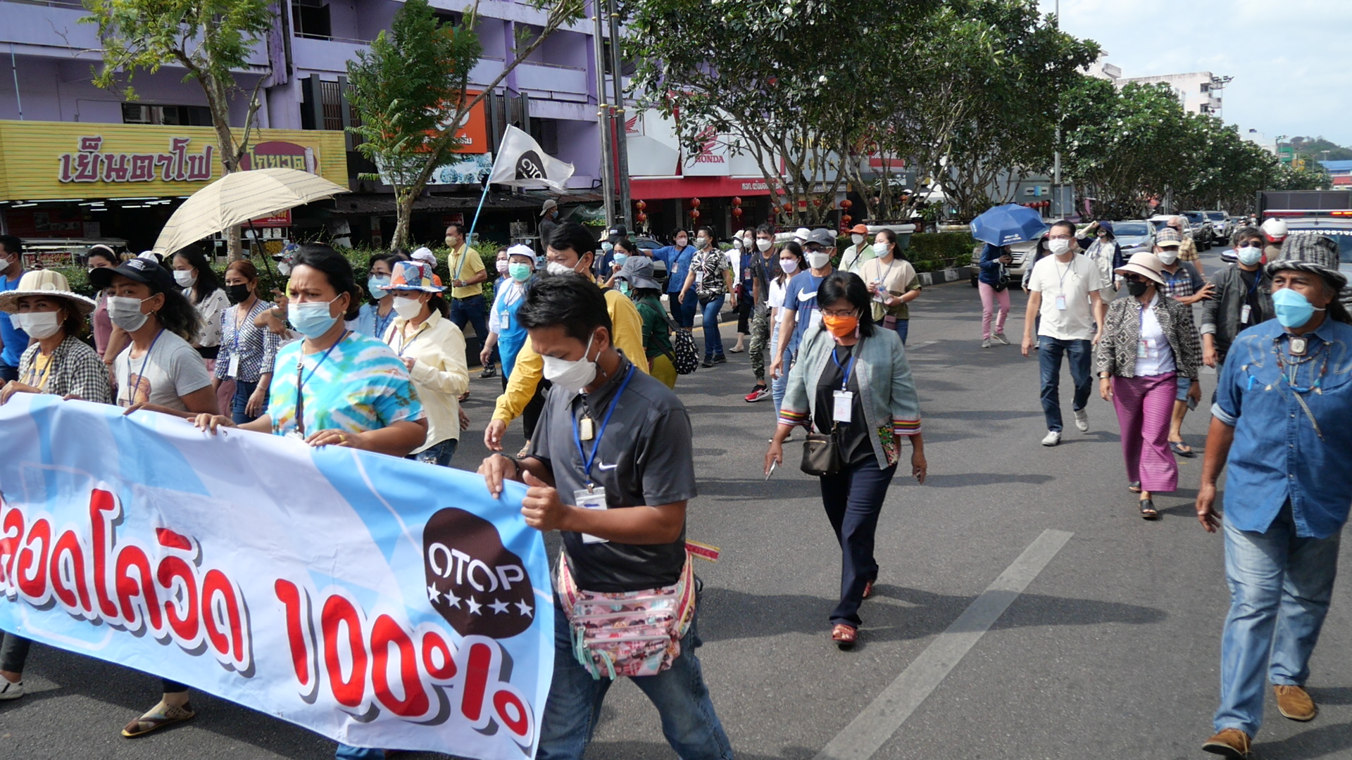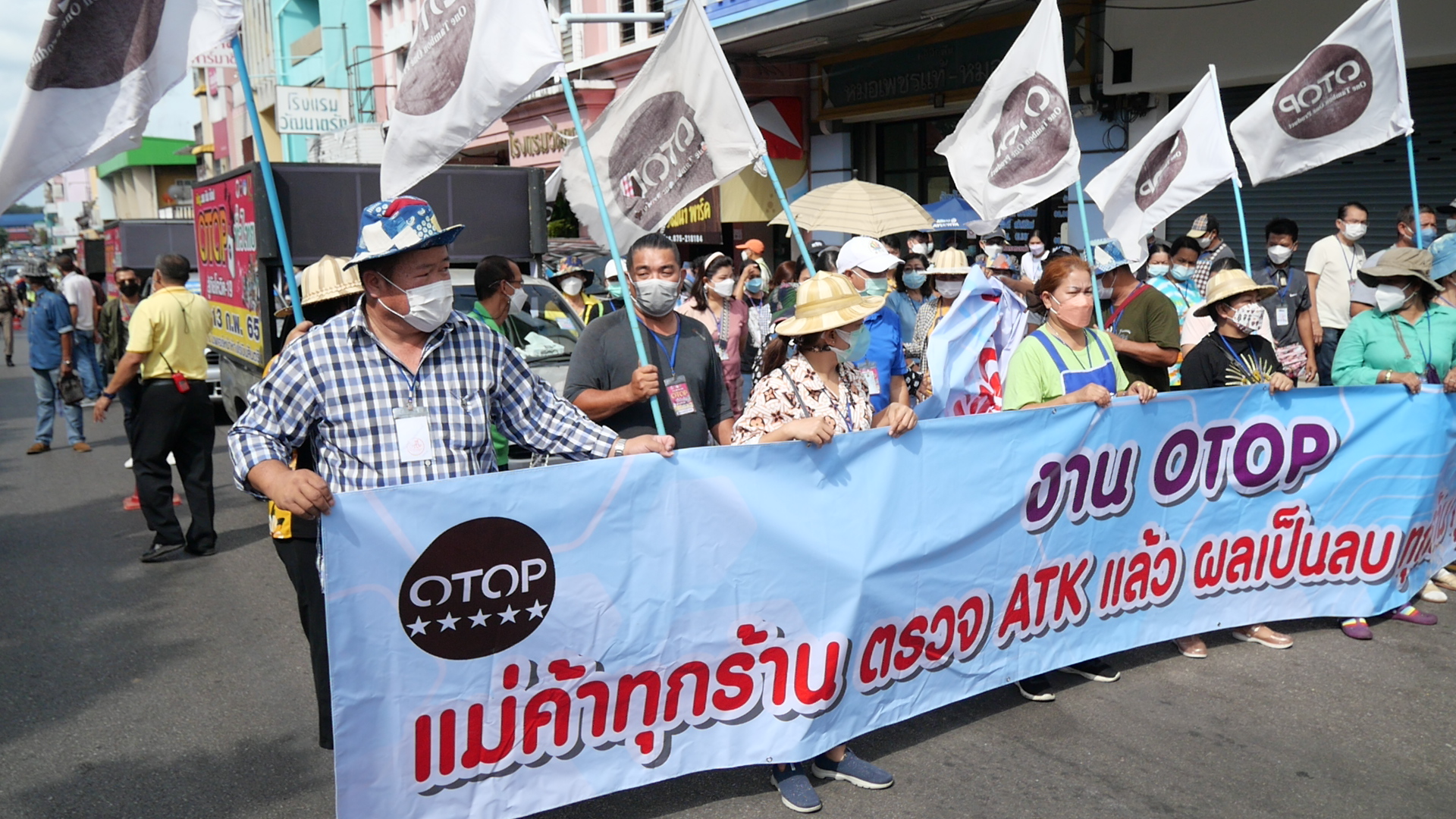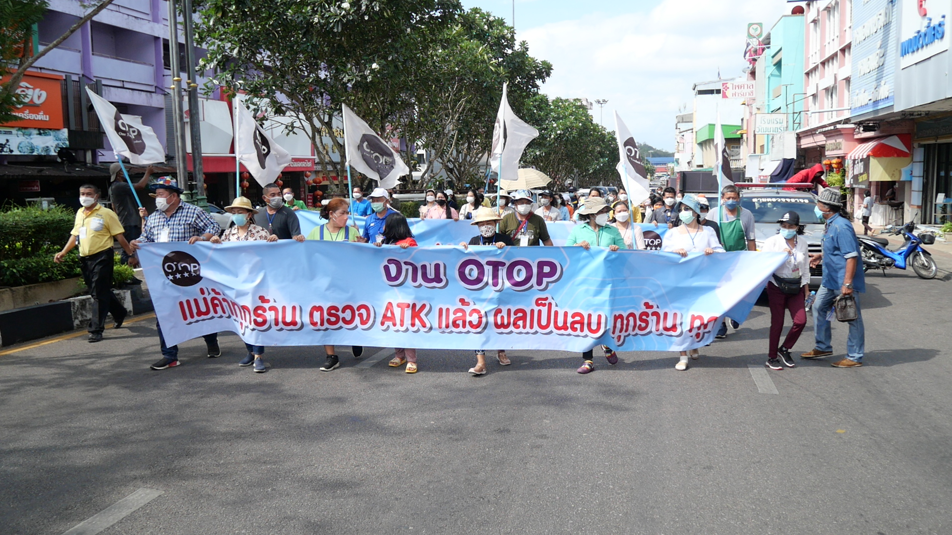 ทั้งนี้ นายพงศ์สวัสดิ์ ยอดสุรางค์ ประธานเครือข่ายโอทอปภาคใต้ กล่าวว่า การที่พ่อค้า แม่ค้า ต้องออกไปรณรงค์เชิญชวนให้ประชาชนมาเที่ยวงานจำหน่ายสินค้าโอทอปนั้น เพื่อขอความเห็นใจจากกระแสข่าวที่เกิดขึ้นว่ามีพ่อค้า แม่ค้า ติดเชื้อโควิด -19 ซึ่งการแพร่กระจายข่าวทางสื่อโซเซียลนั้น ได้ส่งผลกระทบต่อพ่อค้า แม่ค้า อย่างมาก ทั้งที่ไม่เป็นความจริง ความจริงก็คือ ก่อนที่พ่อค้า แม่ค้า จะเข้ามาจำหน่ายสินค้า ทางเจ้าหน้าที่สาธารณสุขอำเภอเมืองตรัง ได้มีการตรวจวัดอุณหภูมิ การตรวจ ATK พ่อค้า แม่ค้า ทุกคน ในวันแรกก่อนที่จำหน่ายสินค้า ทางเจ้าหน้าที่พบพ่อค้า แม่ค้า บางรายมีผลเป็นบวก เจ้าหน้าที่จึงรีบแยกตัวออกไปกักตัว และรักษาตามขั้นตอนทันที การมีผลเป็นบวกนั้นทำให้พ่อค้า แม่ค้า บางรายไม่สามารถจำหน่ายสินค้าได้ ส่วนพ่อค้า แม่ค้าที่เหลือนั้น มีผลเป็นลบ สามารถจำหน่ายสินค้าได้ตามปกติ การจัดงานั้นมีการตรวจ ATK พ่อค้า แม่ค้า ทุกวัน รวมถึงการฉีดพ่นสารเคมีฆ่าเชื้อทุกวัน ขอให้ประชาชนมั่นใจในความปลอดภัย รวมถึงก่อนเข้าไปซื้อสินค้าภายในงานก็มีการตรวจวัดอุณหภูมิประชาชน พ่อค้า แม่ค้า ทุกคน การแพร่ข่าวสารที่ไม่จริงในสื่อโซเซียลนั้น ทำให้ประชาชนงดการมาซื้อสินค้าลดลง 50 เปอร์เซ็นต์ จากปกติวันละ 1หมื่น6พันคน ลดลงเหลือวันละ 8 พันคน ทางผู้ประกอบการให้ประชาชนมั่นใจว่าปลอดภัยสามารถซื้อสินค้าได้ตามปกติ