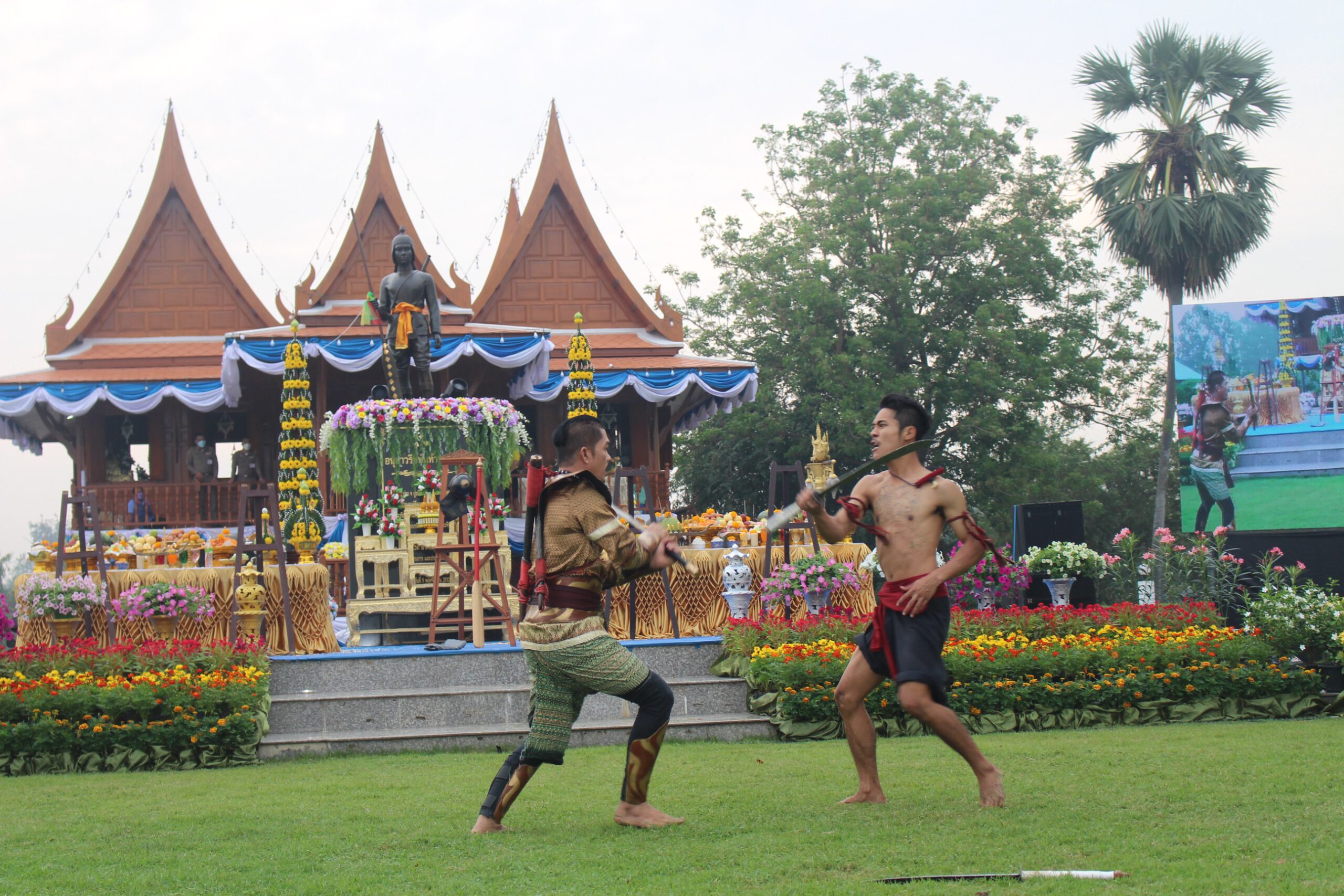 เมื่อวันที่ 10 กุมภาพันธ์ พ.ศ. 2565 เวลา 06.30 นายวีระศักดิ์ วิจิตรแสงศรี ผู้ว่าราชการจังหวัดอ่างทองได้มอบหมายให้ นางสาวเอกรัตน์ นาคาคง รองผู้ว่าราชการจังหวัดอ่างทอง เป็นประธานในพิธีบวงสรวง (พิธีพราหมณ์ ) จุดเทียนบูชาฤกษ์ ปักธูปเครื่องบูชาฤกษ์ ถวายเครื่องเซ่นสังเวยดวงวิญญาณ พันท้ายนรสิงห์ ณ.บริเวณอนุสาวรีย์พันท้ายนรสิงห์ ต.นรสิงห์ อ.ป่าโมก จ.อ่างทอง และต่อมาช่วงเวลา 08.10 น.เป็นประธานฝ่ายฆราวาสในพิธีสงฆ์ ถวายภัตตาหารเช้าแด่พระสงฆ์ (ปิ่นโต)ถวายจตุปัจจัยไทยธรรมแด่พระสงฆ์ 9 รูป พระเทพสุวรรณมุณี เจ้าอาวาสวัดต้นสน เจ้าคณะจังหวัดอ่างทอง ประธานฝ่ายสงฆ์ เจิมบ้านทรงไทย พร้อมประพรหมน้ำพุทธมนต์ เพื่อเป็นสิริมงคล (ศูนย์การเรียนรู้ศิลปวัฒนธรรมพื้นบ้านบริเวณอนุสาวรีย์พันท้ายนรสิงห์) เวลา 09.00 น.