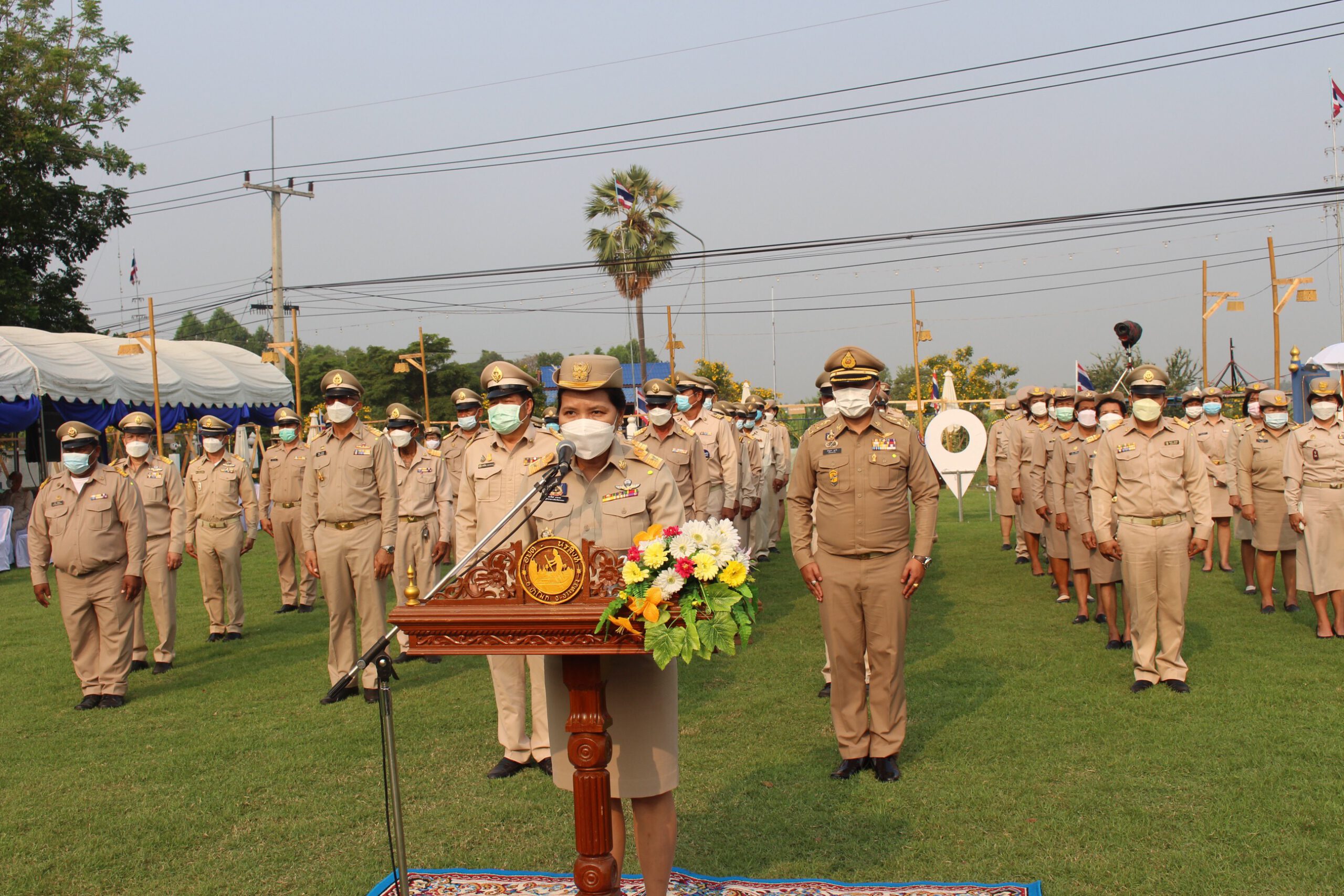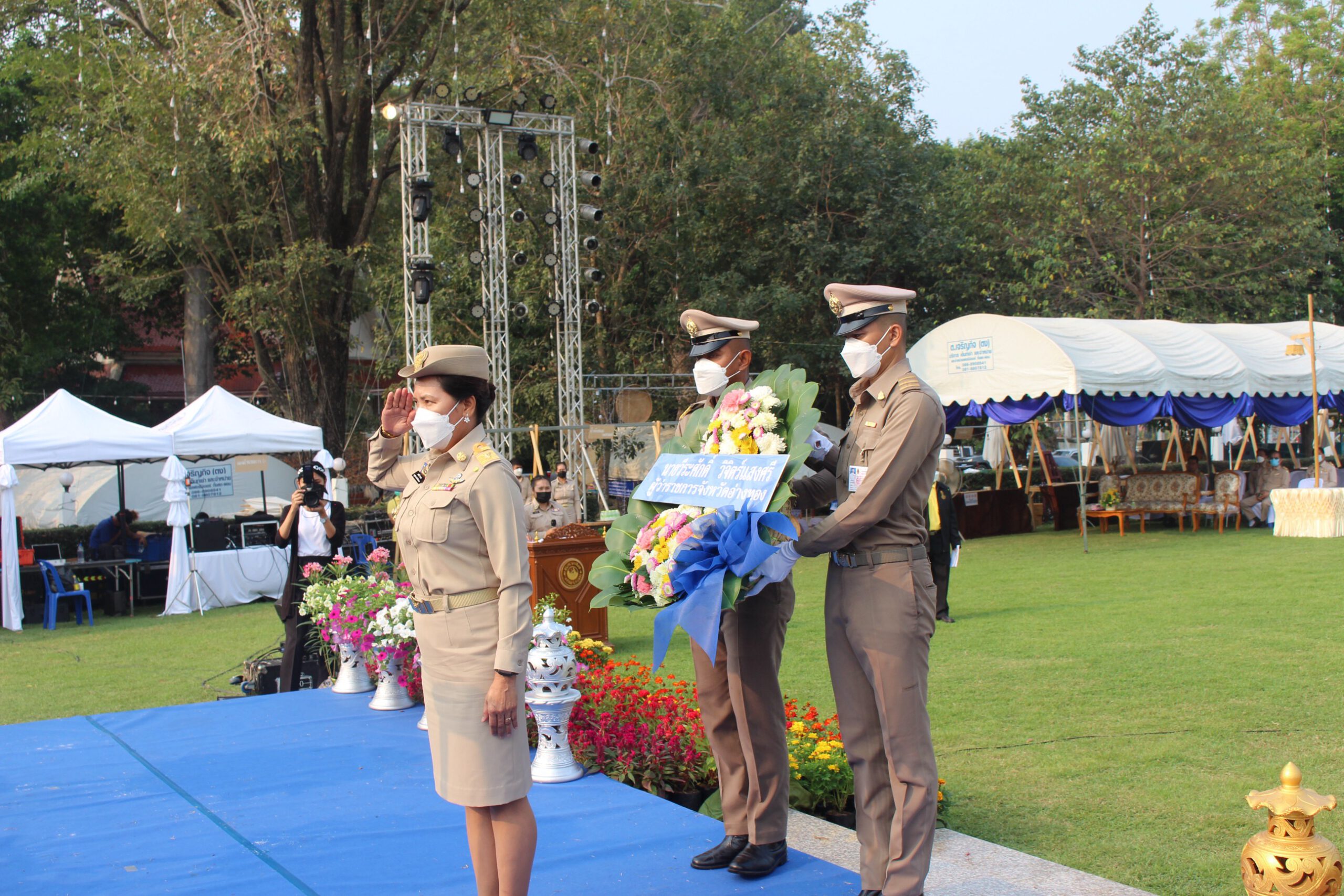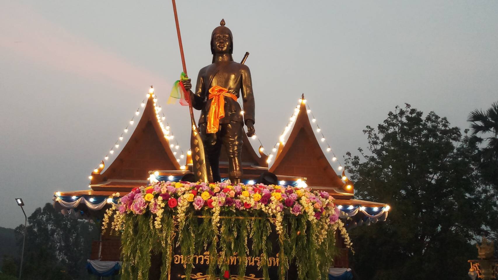 นางสาวเอกรัตน์ นาคาคง รองผู้ว่าราชการจังหวัดอ่างทอง ประธานในพิธีอ่านประกาศสดุดีเกียรติคุณ พันท้ายนรสิงห์ ยืนสงบนิ่ง และเป็นประธานในพีวางพวงมาลาดอกไม้สด เพื่อเป็นการรำลึกถึงเกียรติคุณ โดยมีนายณัชฐเดช มุลาลี นายอำเภอป่าโมก นายไพรัตน์ ทองหยอด นายกองค์การบริหารส่วนตำบลนรสิงห์ พร้อมด้วยผู้บริหารฯ สมาชิกสภาฯ ข้าราชการ และพนักงานของอบต.นรสิงห์ ให้การต้อนรับ โดยมีนายศักดิ์ชัย เสนาพรหม ผอ.การท่องเที่ยวและกีฬาจังหวัดอ่างทอง นางสาวแสงมณี มีน้อย ท้องถิ่นจังหวัดอ่างทอง นายสุรพร สรณารักษ์ นายกเทศมนตรีตำบลป่าโมก นายศราวุธ เผ่าพยัฆ นายก อบต.เอกราช นายสมศักดิ์ นิ่มพงษ์ นายก อบต.สายทอง ผู้แทนนายก อบต.โผงเผง พร้อมด้วยฝ่ายปกครองกำนัน ผู้ใหญ่บ้านในพื้นที่อำเภอป่าโมก ให้การต้อนรับ ณ.บริเวณอนุสาวรีย์พันท้ายนรสิงห์ ต.นรสิงห์อ.ป่าโมก จ.อ่างทอง