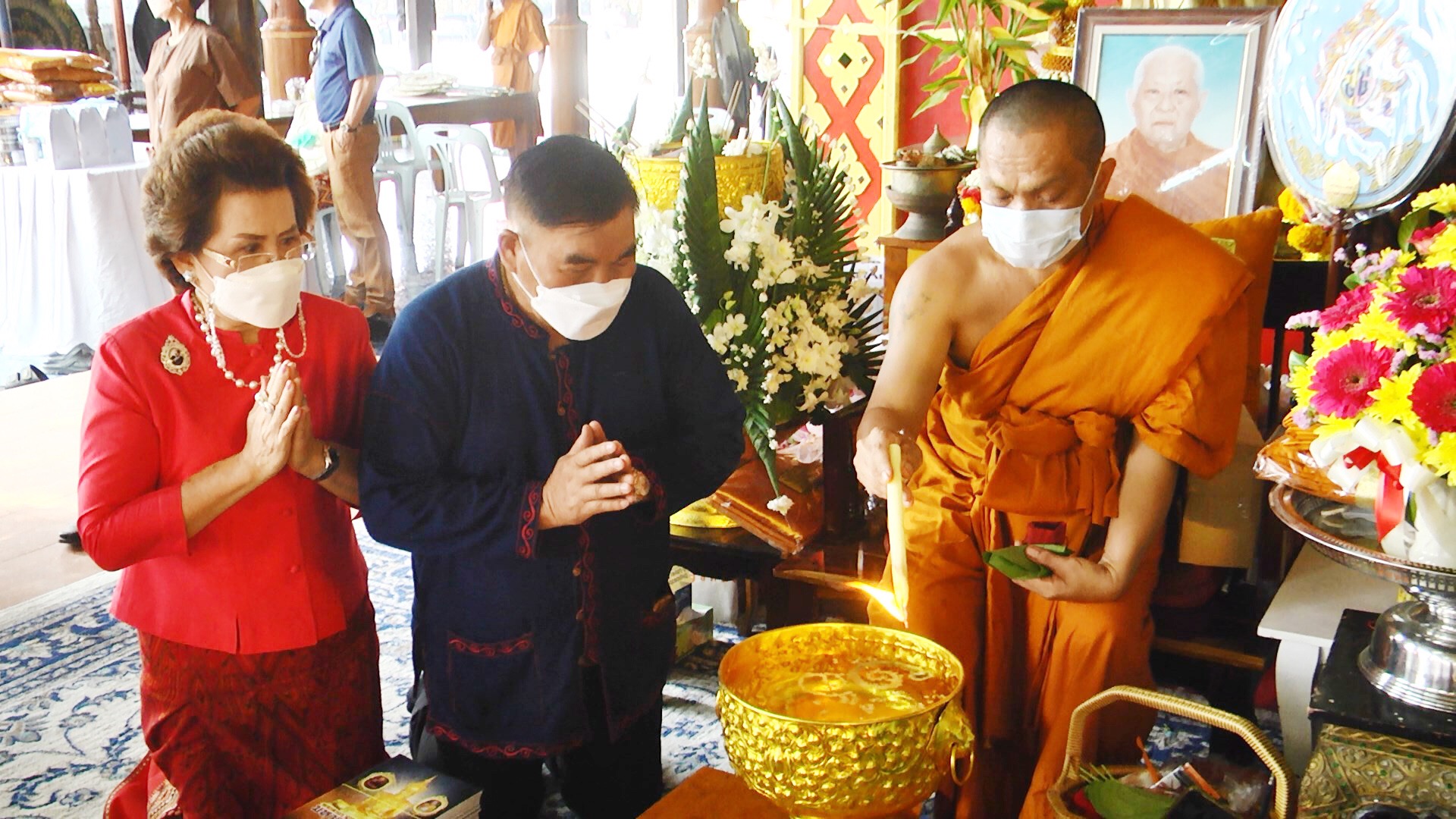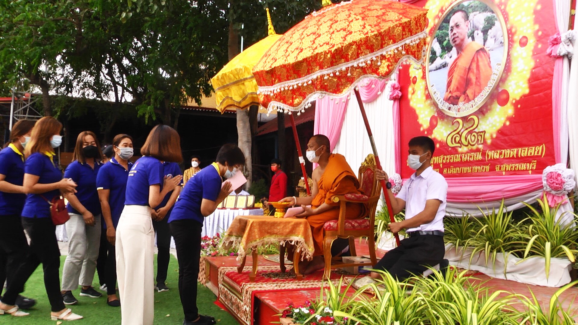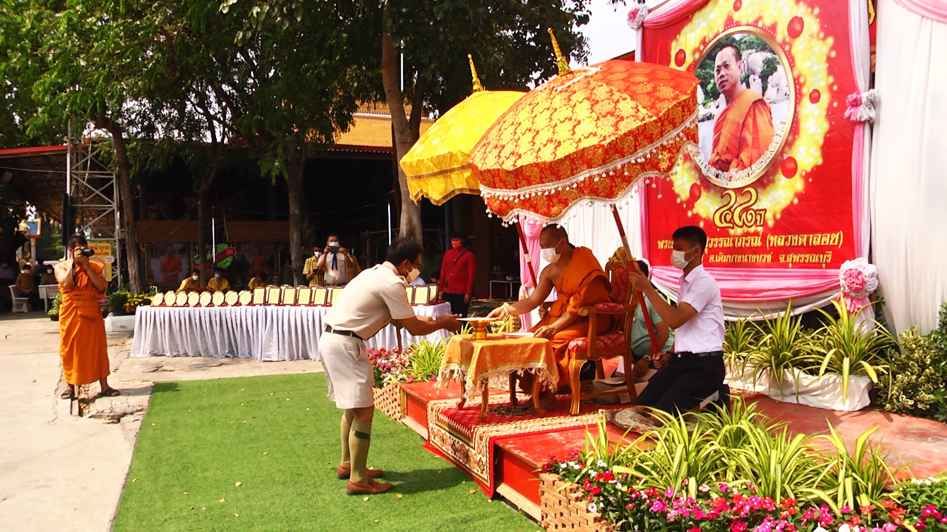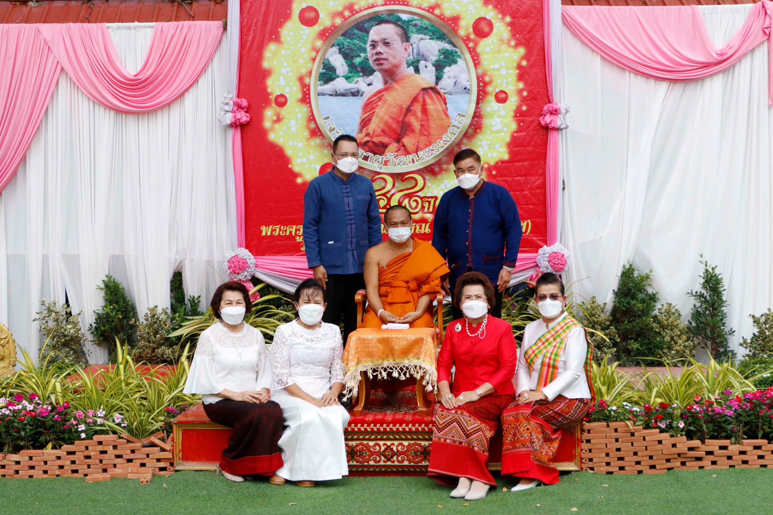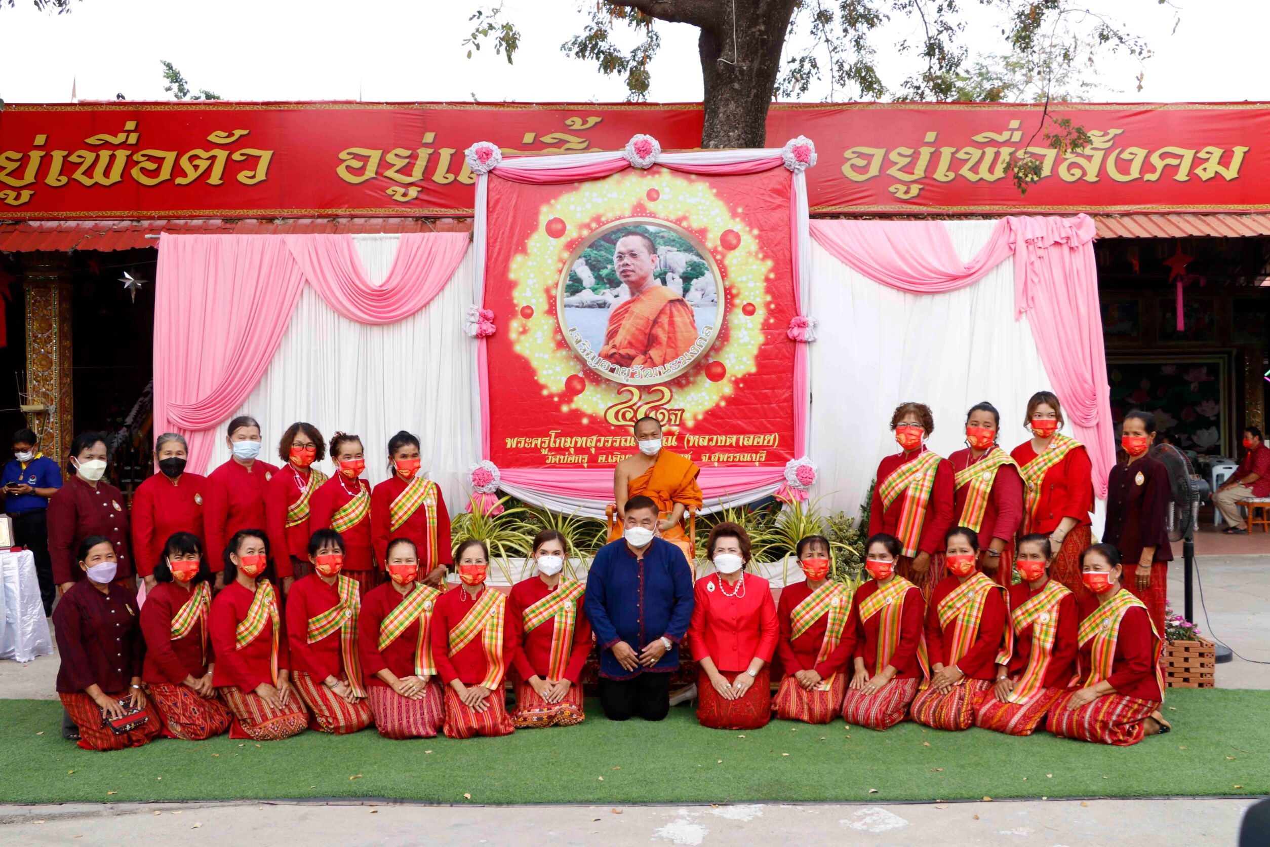 พระครูโกมุทสุวรรณาภรณ์ หรือหลวงตาลอย กล่าวว่าพิธีทำบุญอายุวัฒนะมงคล วันนี้ได้นิมนต์พระสงฆ์จำนวน150 รูปบังสุกุลเพื่ออุทิศบุญให้กับอดีตเจ้าอาวาส ทายก ทายิกา ของวัดที่สร้างวัดวาอาราม กันมา โดยนิมนต์รับไทยธรรม ทักษิณาเสร็จก็นิมนต์ท่านกลับไปฉันที่วัด เนื่องจากต้องปฏิบัติตามมาตรการของกระทรวงสาธารณสุข อย่างเคร่งครัด ซึ่งทุกสถานที่ต้องช่วยกัน จากนั้นก็ได้แจกทุนการศึกษาให้กับโรงเรียน 50 กว่าสถานที่ที่เราได้อนุเคราะห์ช่วยเหลือเกื้อกูลกัน ตั้งแต่รากหญ้าขึ้นไปเพื่อแก้ปัญหาให้การศึกษาของลูกหลานรุ่นหลังให้เจริญก้าวหน้าขึ้นไปและสถานศึกษาก็บริหารสืบเนื่องไป และช่วงบ่ายก็เป็นพิธีสืบชะตาแบบล้านนาของเก่าแต่โบราณที่สืบสานกันมา ที่นี่เป็นชุมชนลาวครั่ง ตั้งแต่ดั้งเดิมซึ่งมีวัฒนธรรมประเพณีแบบลาวผสมล้านนา หรือที่เรียกว่าบายศรีสู่ขวัญ