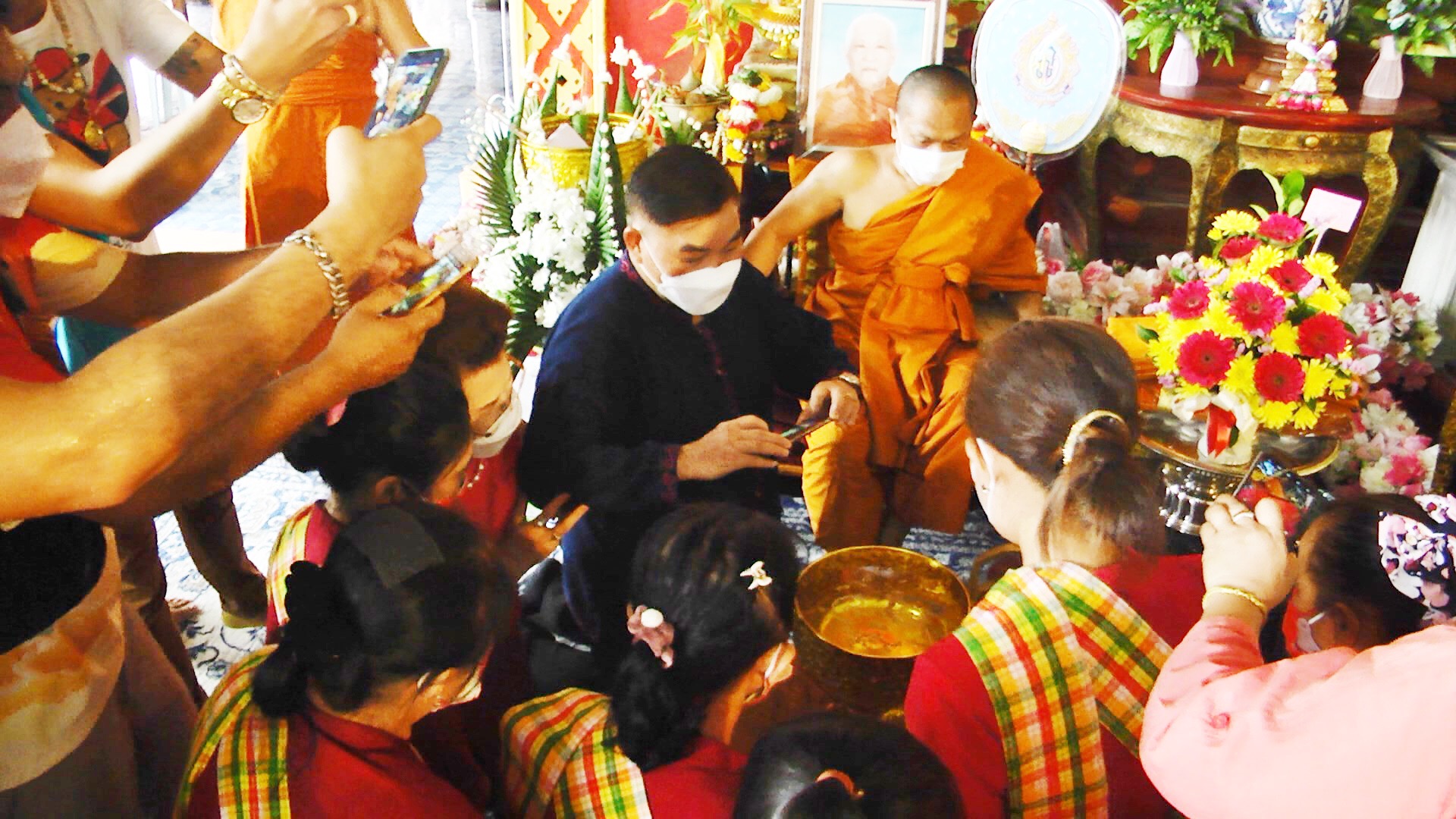 สุพรรณบุรี แห่ส่องเลขขันน้ำมนต์หลวงตาลอย วัดบ่อกรุ