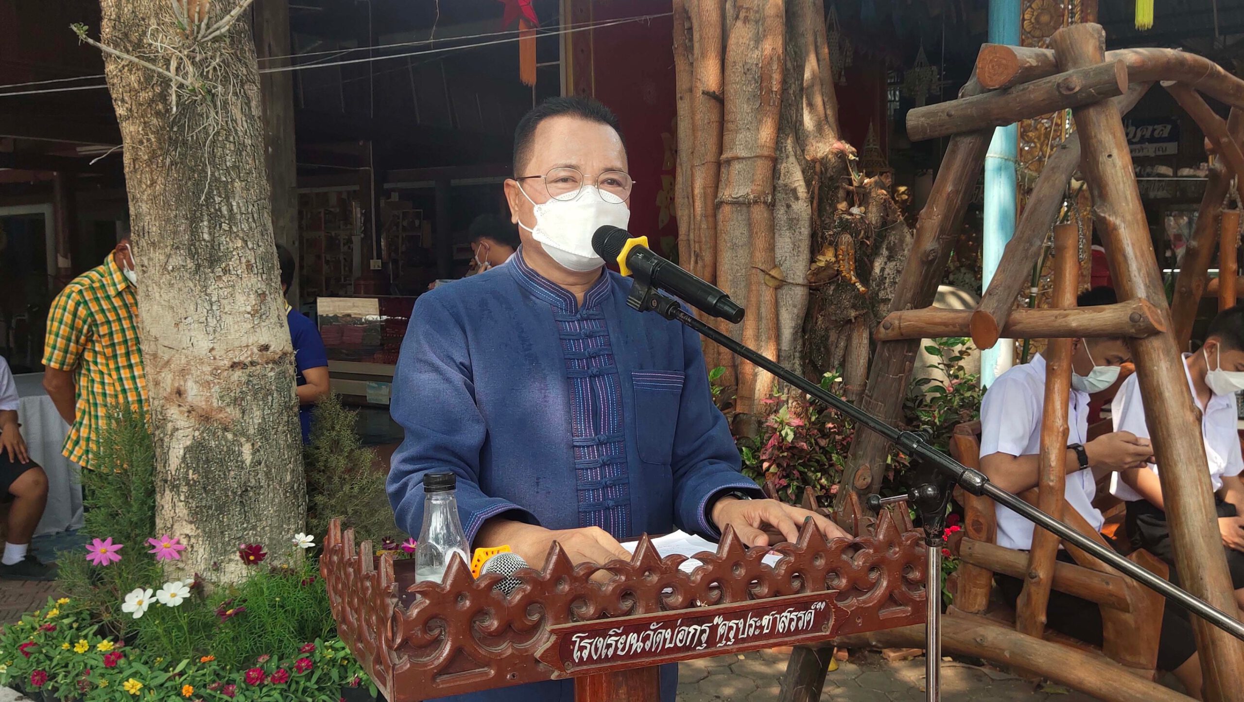 หลวงตาลอย กล่าวอีกว่าที่ผ่านมาทุกปีจะมีงานทำบุญอายุวัฒนะมงคล อาตมาจะแจกข้าวสารอาหารแห้งพร้อมเงินให้กับชาวบ้าน 7 หมู่บ้านในตำบลบ่อกรุ โรงพยาบาลก็ช่วยทุกปี เมื่อต้นปีก็ช่วยสถานีตำรวจ และวันนี้ก็เป็นสถานศึกษา เราอยู่กับรากหญ้าอยู่กับชุมชนก็เห็นปัญหาที่เกิดขึ้นอย่างเช่นปัญหาของสถานศึกษา ดังนั้นเราก็เป็นส่วนน้อยส่วนหนึ่งที่เข้าไปช่วยเกื้อกูลในสถาบันการศึกษาเพื่อให้รากหญ้าเรียกว่าเยาวชน ให้ได้ความรู้ จะได้พัฒนากลุ่มชุมชนให้เข้มแข็งขึ้นไป ตามคำกล่าวที่ว่าสามัคคีอยู่ดีมีสุข ร่วมสุขร่วมทุกข์ แล้วเราก็จะอยู่ได้บ้านเมืองก็จะแข็งแรง