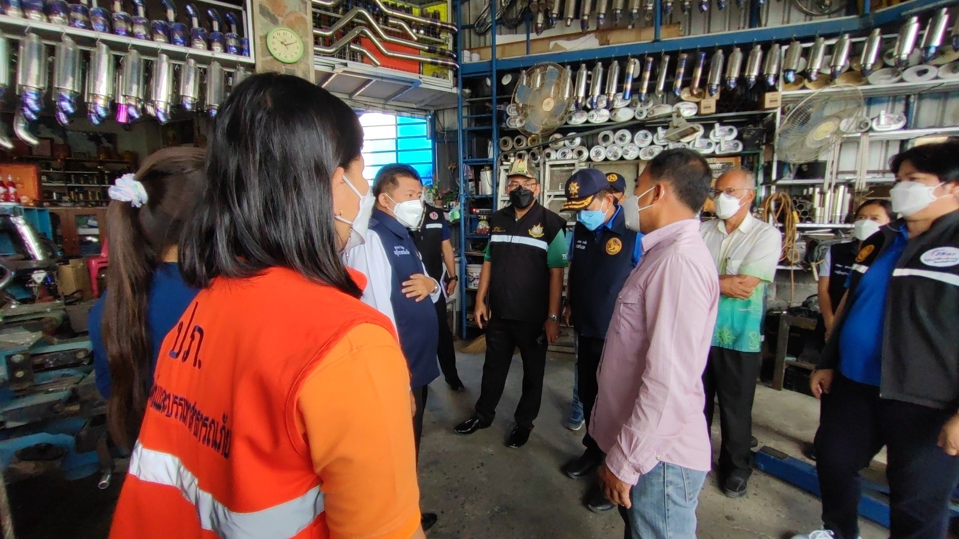 ชูศักดิ์ ศรีสัข์ ลงพื้นที่ตรวจสอบการร้องเรียนของประชาชนเกี่ยวกับฝุ่นละอองและการจุดประทัดไร่นกพิราบร่วมกับ รองผู้ว่าราชการจังหวัดสิงห์บุรี นายสมชาย ลีหล้าน้อย จนท.ปกครอง จังหวัดสิงห์บุรี,จนท.สาธารณะสุขจังหวัดสิงห์บุรี,จนท.ศูนย์ดำรงค์ธรรม จังหวัดสิงห์บุรี,จนท.