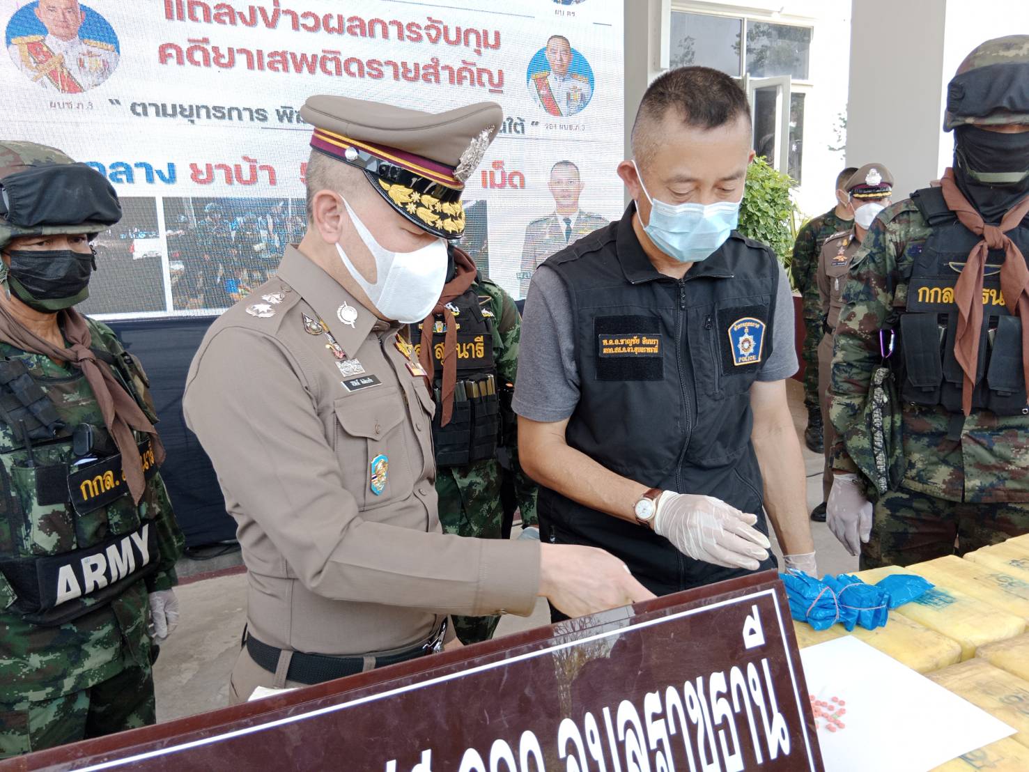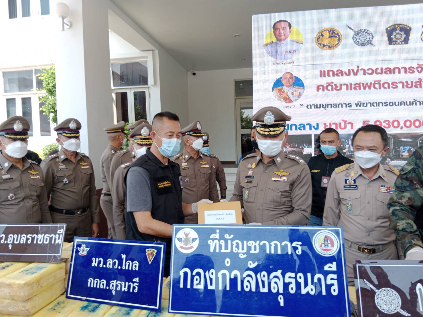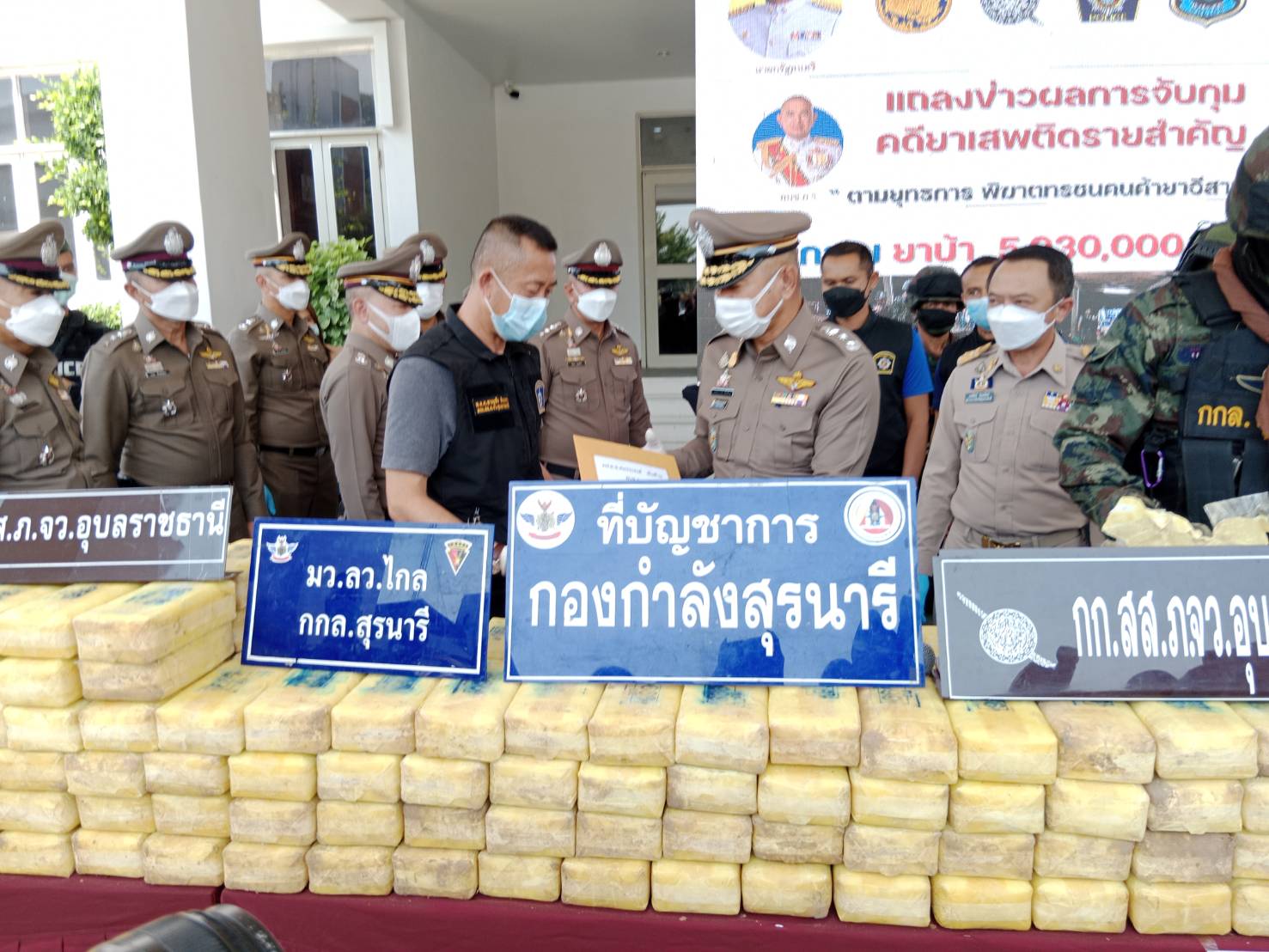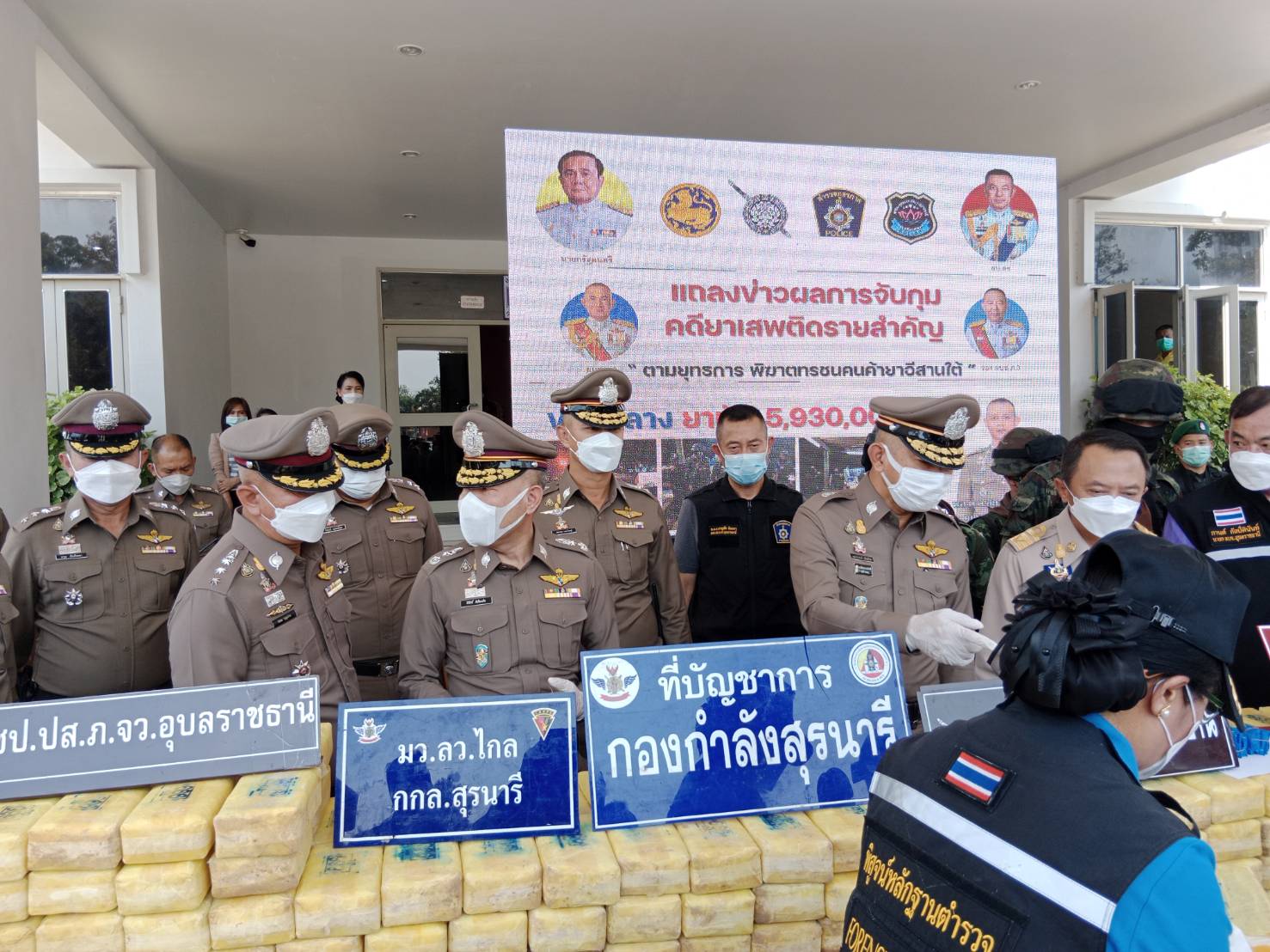 อุบลฯ แถลงผลการจับกุมคดียาเสพติดตราสัญลักษณ์ตอง 999 เป็นของว่าแดงตอนใต้