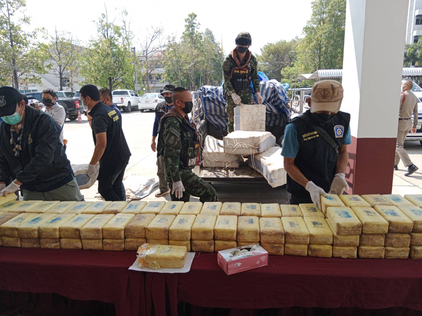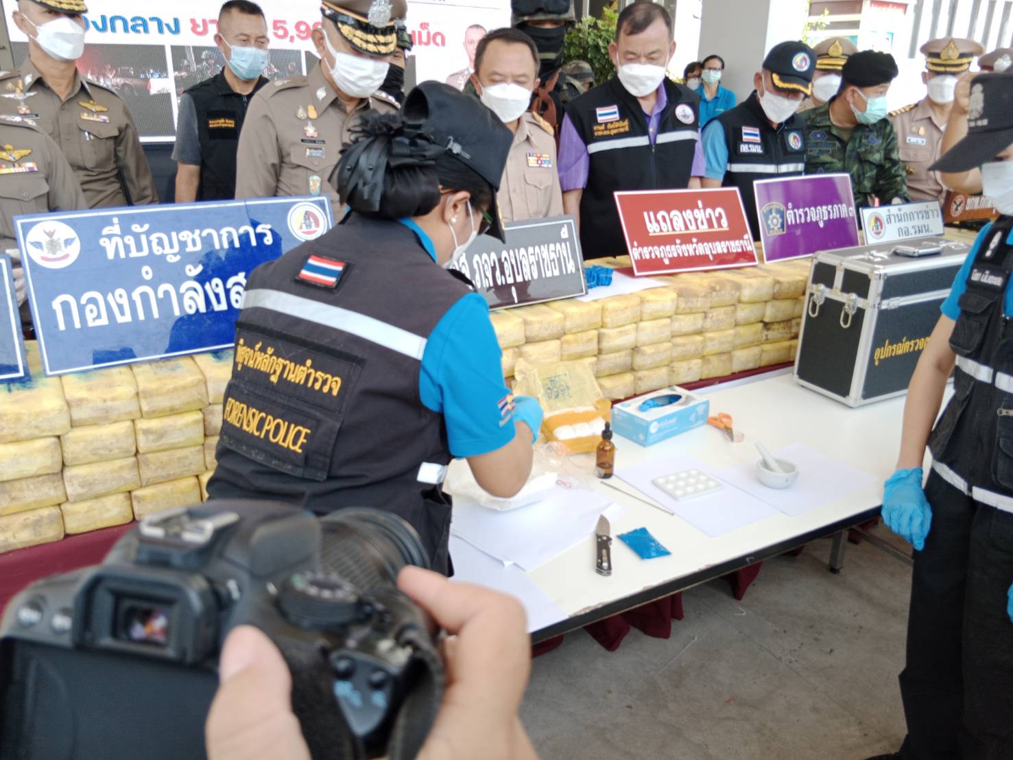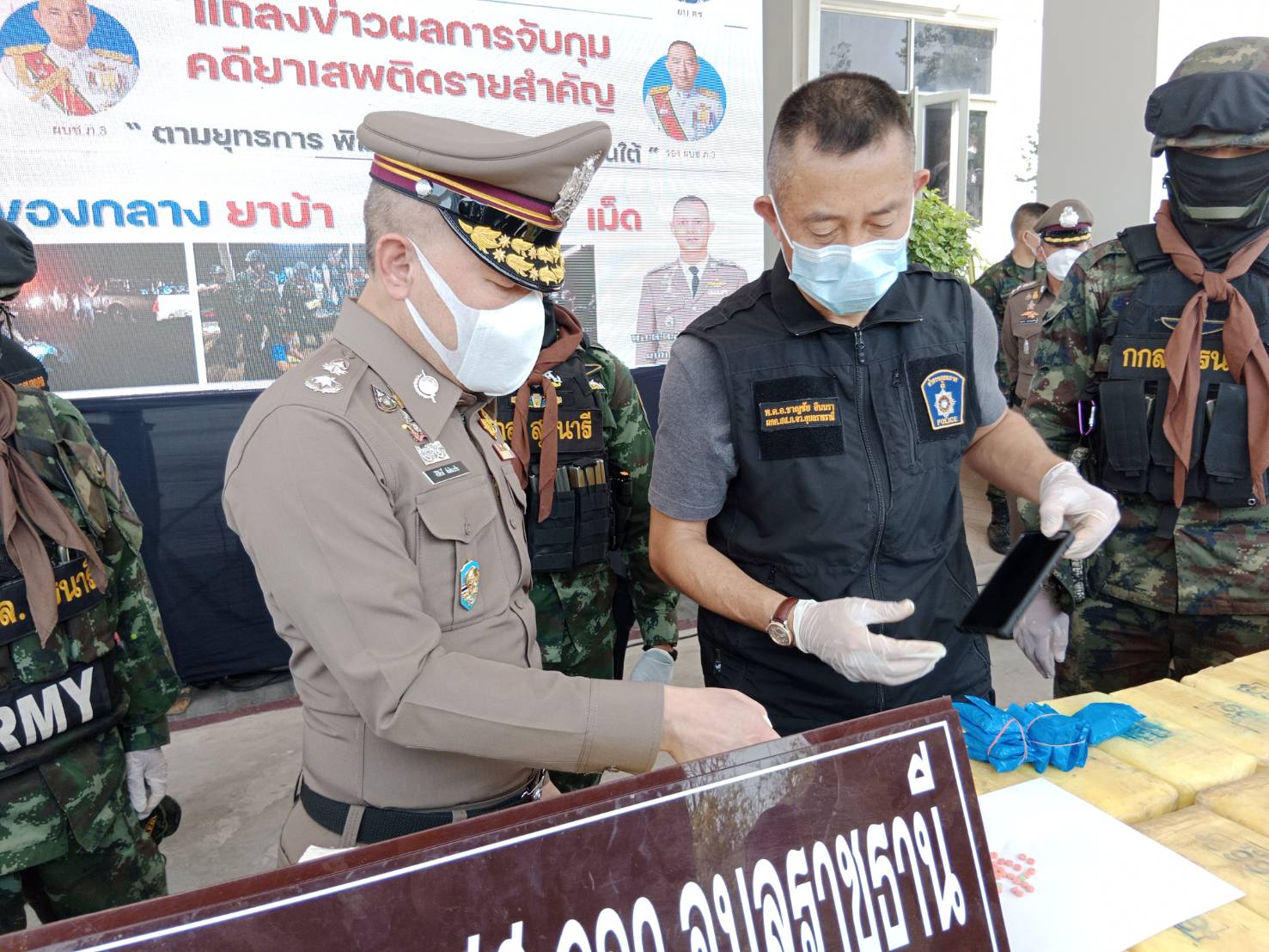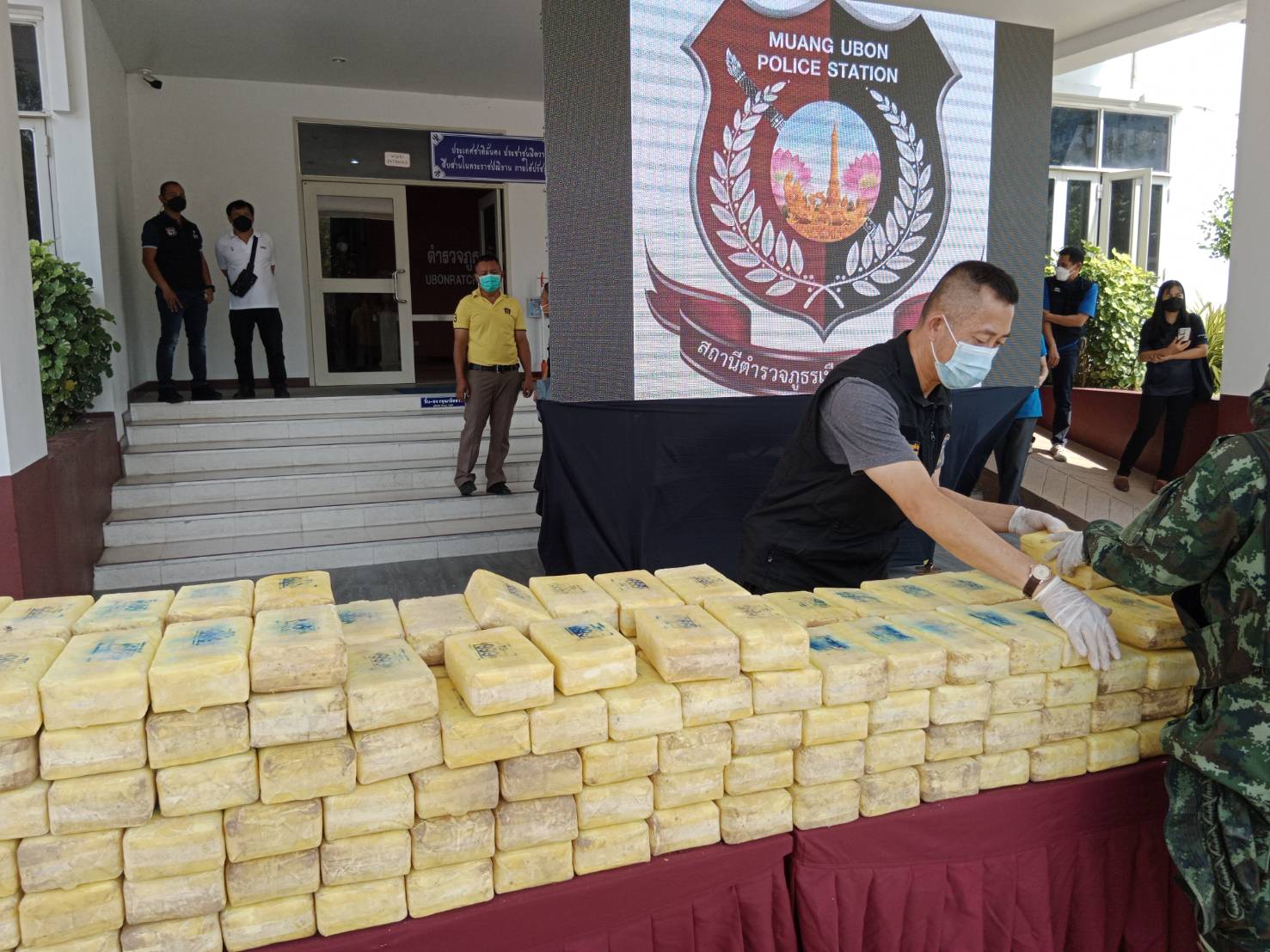 อุบลฯ แถลงผลการจับกุมคดียาเสพติดตราสัญลักษณ์ตอง 999 เป็นของว่าแดงตอนใต้