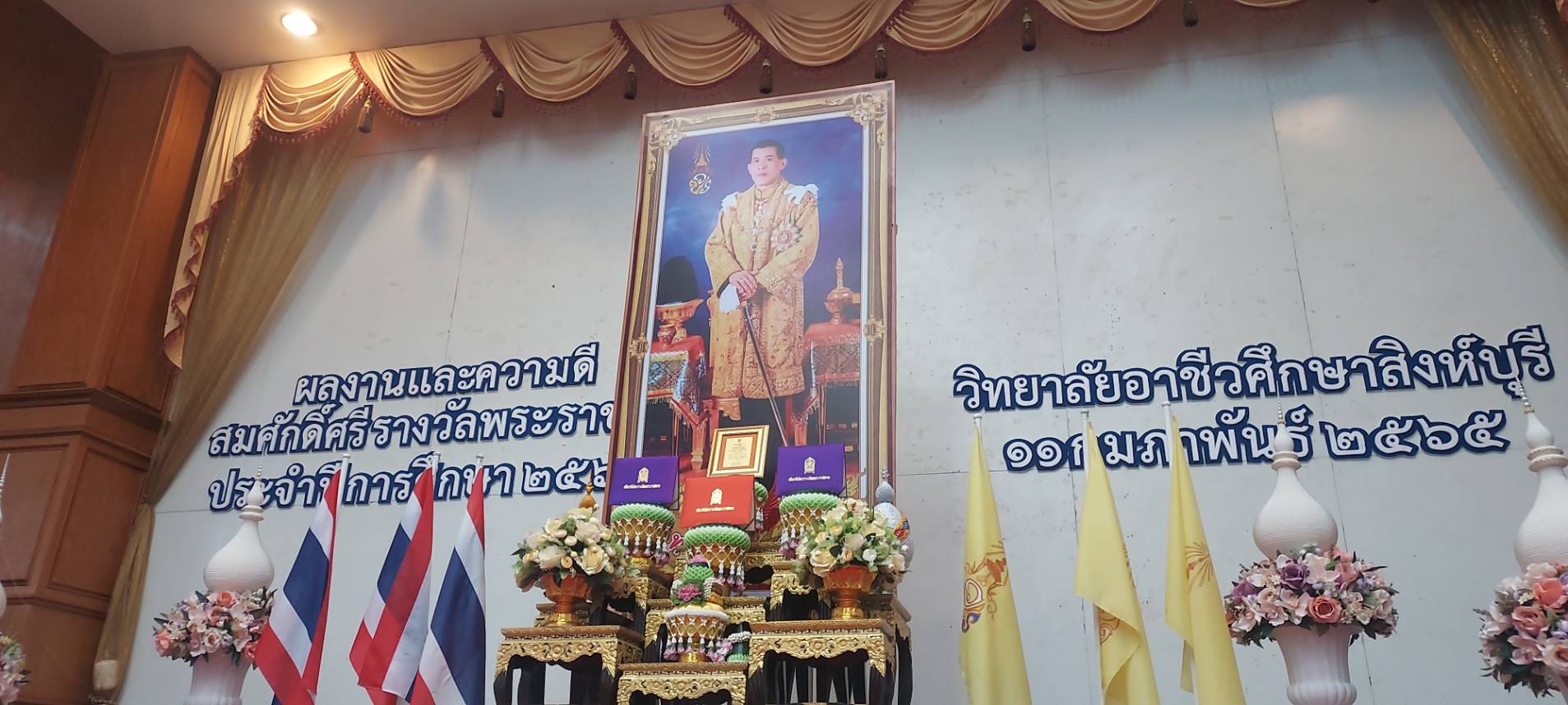 ดร.ธีระพงษ์ วงศ์ประเสริฐ ผู้อำนวยการวิทยาลัยอาชีวศึกษาสิงห์บุรี กล่าวว่าวันนี้ ได้จัดงานฉลองโล่รางวัลพระราชทาน สถานศึกษาขนาดเล็ก ประเภทอาชีวศึกษา ซึ่งวิทยาลัยฯ ได้รับติดต่อกันมา 3 ปีซ้อน ในรอบ 10 ปี ครั้งล่าสุด ได้รับรางวัลประจำปี 2563 เป็นรางวัลที่ผ่านการประเมินมาตรฐาน เพื่อเผยแพร่ประชาสัมพันธ์ผลงานและเพื่อสำนึกในพระมหากรุณาธิคุณพระบาทสมเด็จพระเจ้าอยู่หัว ที่ทรงโปรดเกล้าฯ พระราชทานรางวัลดังกล่าว จึงจัดงานในวันนี้ขึ้น และจะร่วมกันรักษาคุณภาพการจัดการศึกษานี้เอาไว้ เพื่อพัฒนาเยาวชนคนรุ่นใหม่ให้มีความรู้ ความสามารถ เติบโตเป็นกำลังสำคัญในการพัฒนาประเทศชาติ ต่อไปในอนาคต