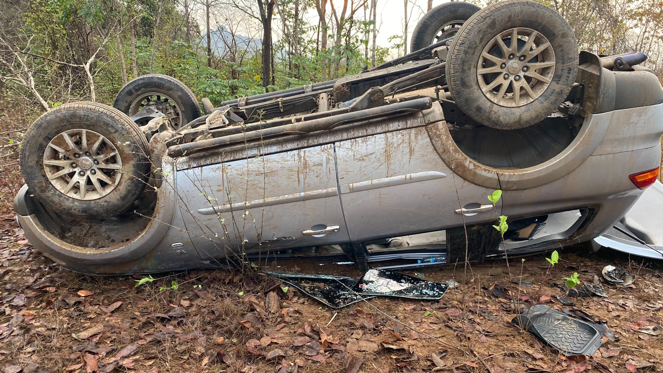 กาญจนบุรี รถขนแรงงานชาวเมียนมาซิ่งหนีเจ้าหน้าที่ พลิกหงายท้อง จับได้ 3 ราย รวม 75 คน