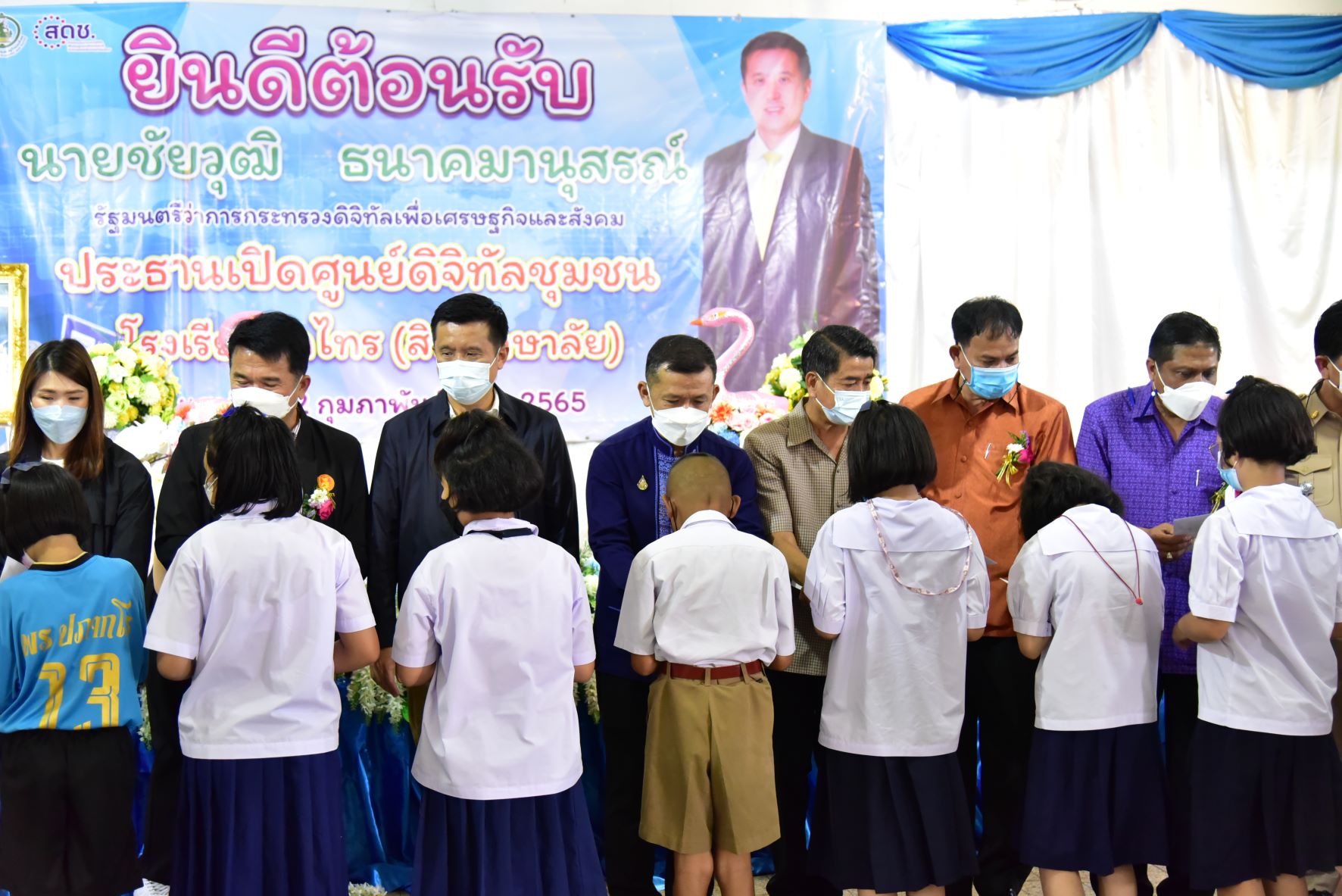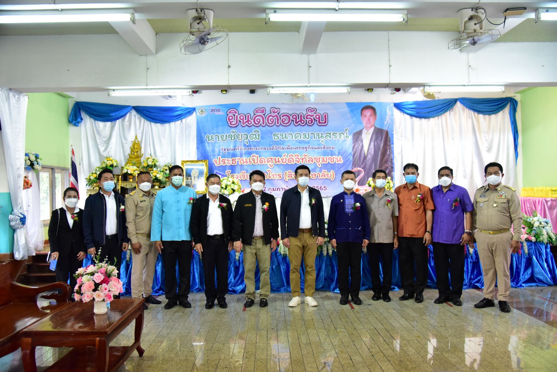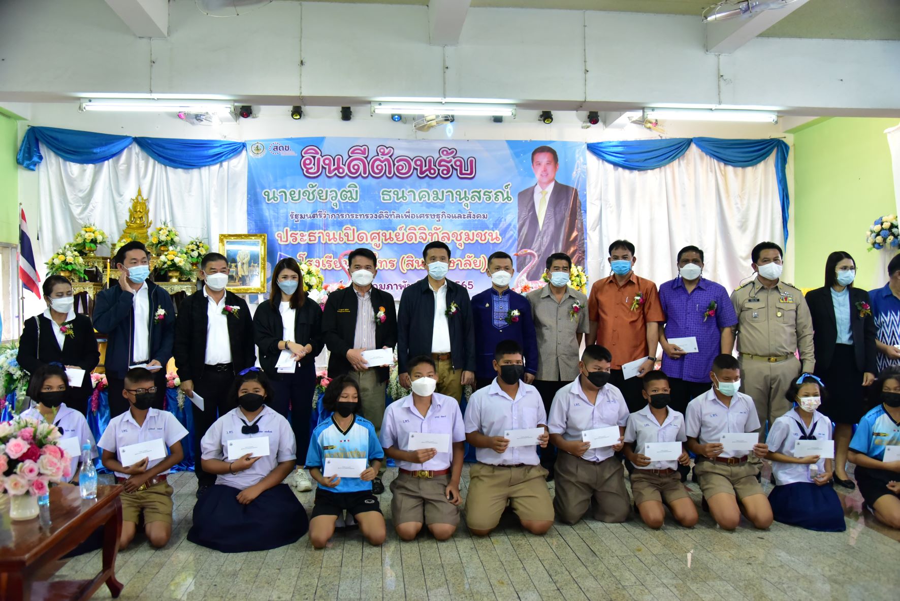 วันที่ 12 กุมภาพันธ์ 2565 ที่โรงเรียนวัดไทร (สินศึกษาลัย) ตำบลท่ากระชับ อำเภอนครชัยศรี จังหวัดนครปฐม นายชัยวุฒิ ธนาคมานุสรณ์ รัฐมนตรีว่าการกระทรวงดิจิทัลเพื่อเศรษฐกิจและสังคม เป็นประธานตรวจเยี่ยมและเปิดศูนย์ดิจิทัลชุมชนโรงเรียนวัดไทร (สินศึกษาลัย) โดยมีนายชยชัย แสงอินทร์ รองผู้ว่าราชการจังหวัดนครปฐม นายอำเภอนครชัยศรี สมาชิกสภาผู้แทนราษฎร จังหวัดนครปฐมเขต4 ผู้อำนวยการสำนักงานเขตพื้นที่การศึกษาประถมศึกษานครปฐมเขต2 ครู และนักเรียนให้การต้อนรับ
