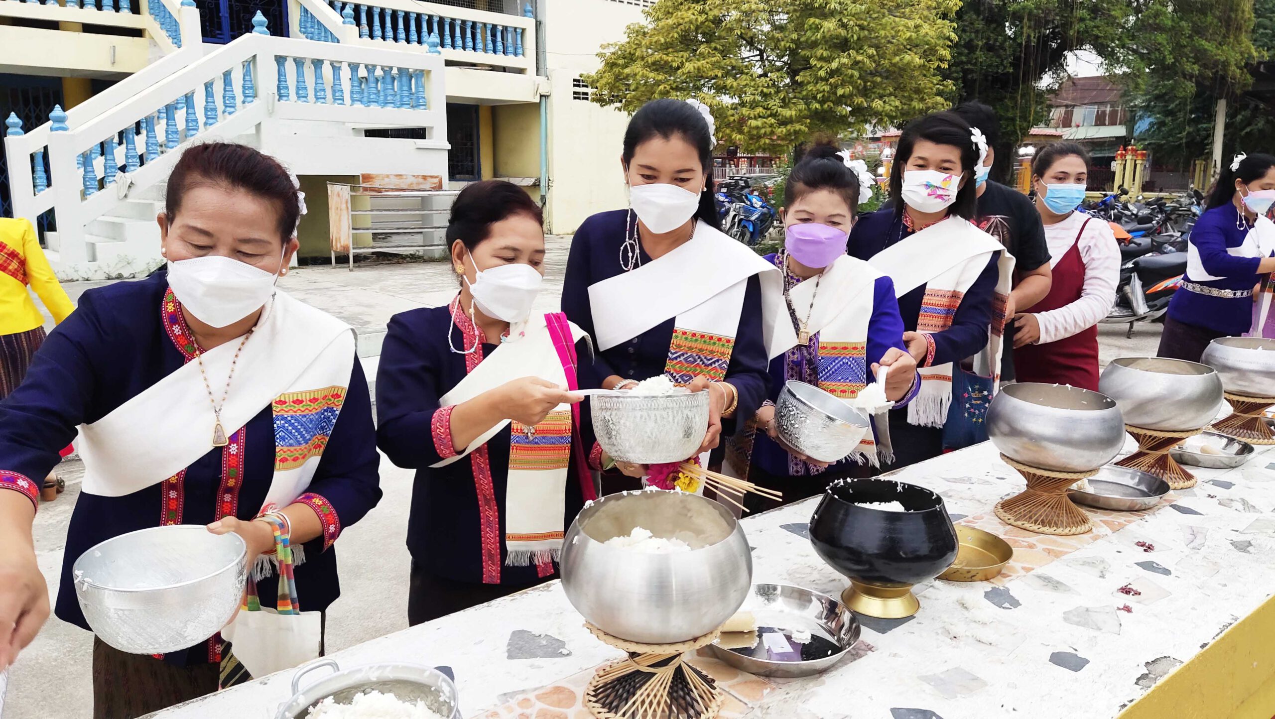 วันที่ 16 ก.พ. 2565 วัดโภคาราม (ดอนคา) ต.ดอนคา อ.อู่ทอง จ.สุพรรณบุรี ประชาชนชาว ต.ดอนคา จำนวนมาก ออกมาทำบุญตักบาตรเนื่องในวันมาฆบูชา ซึ่งตรงกับวันขึ้น 15 ค่ำเดือน 3 และงานประเพณีบุญข้าวจี่ของชาวลาวเวียงดอนคา
