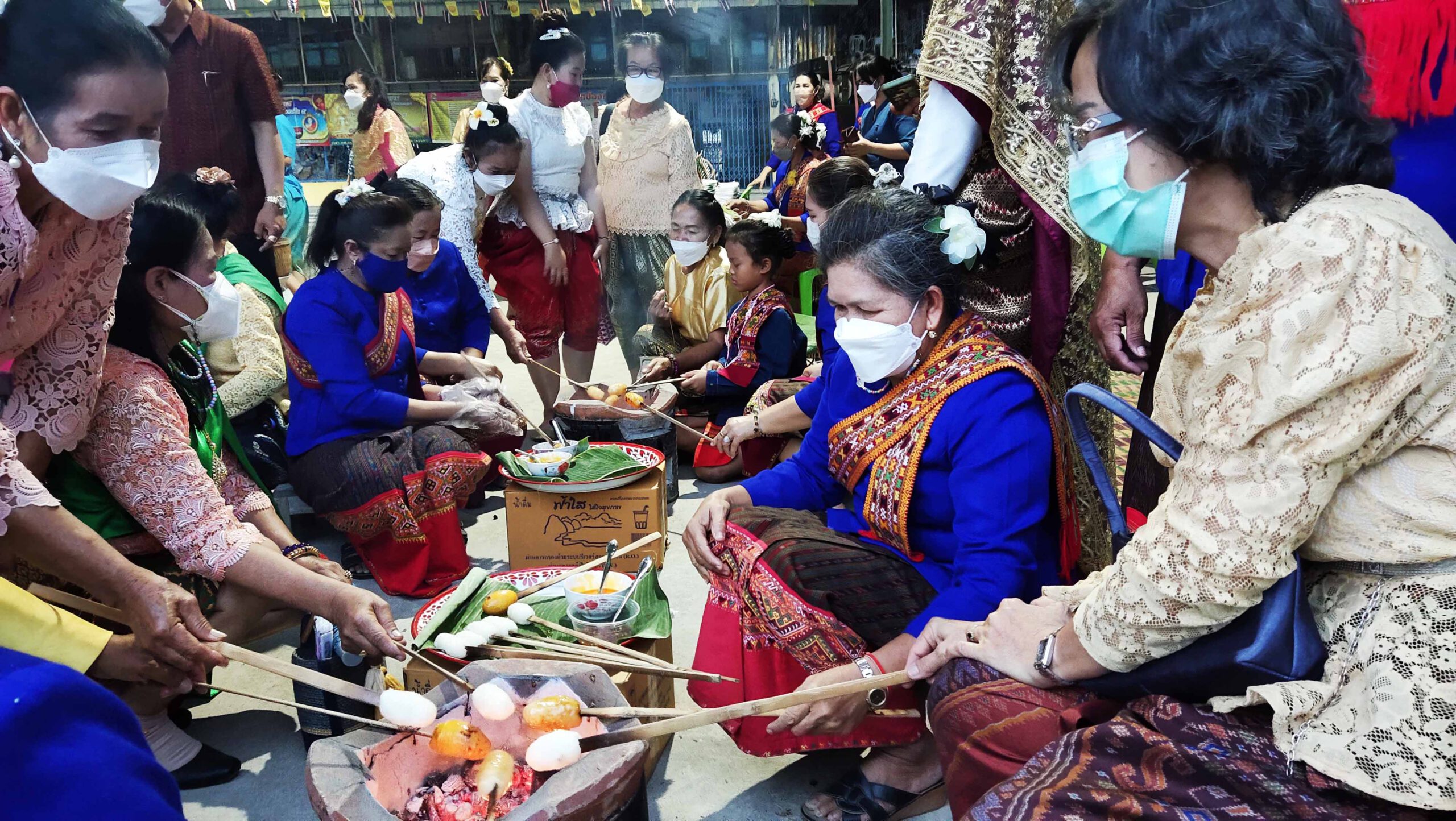 สุพรรณบุรี วัดดอนคาร่วมกับชาวบ้านดอนคาอนุรักษ์ประเพณีบุญข้าวจี่