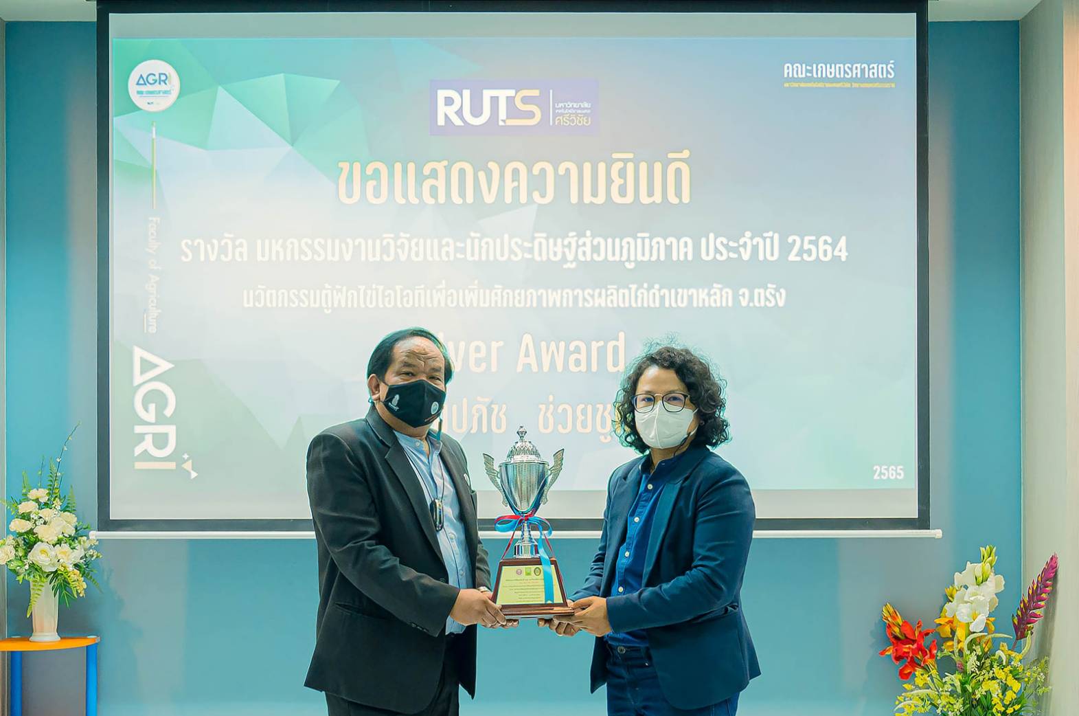คณะเกษตรศาสตร์ มทร.ศรีวิชัย นครศรีธรรมราช คว้ารางวัลผลงานนวัตกรรมตู้ฟักไข่ไอโอทีเพื่อเพิ่มศักยภาพการผลิตไก่ดำเขาหลัก จังหวัดตรัง
