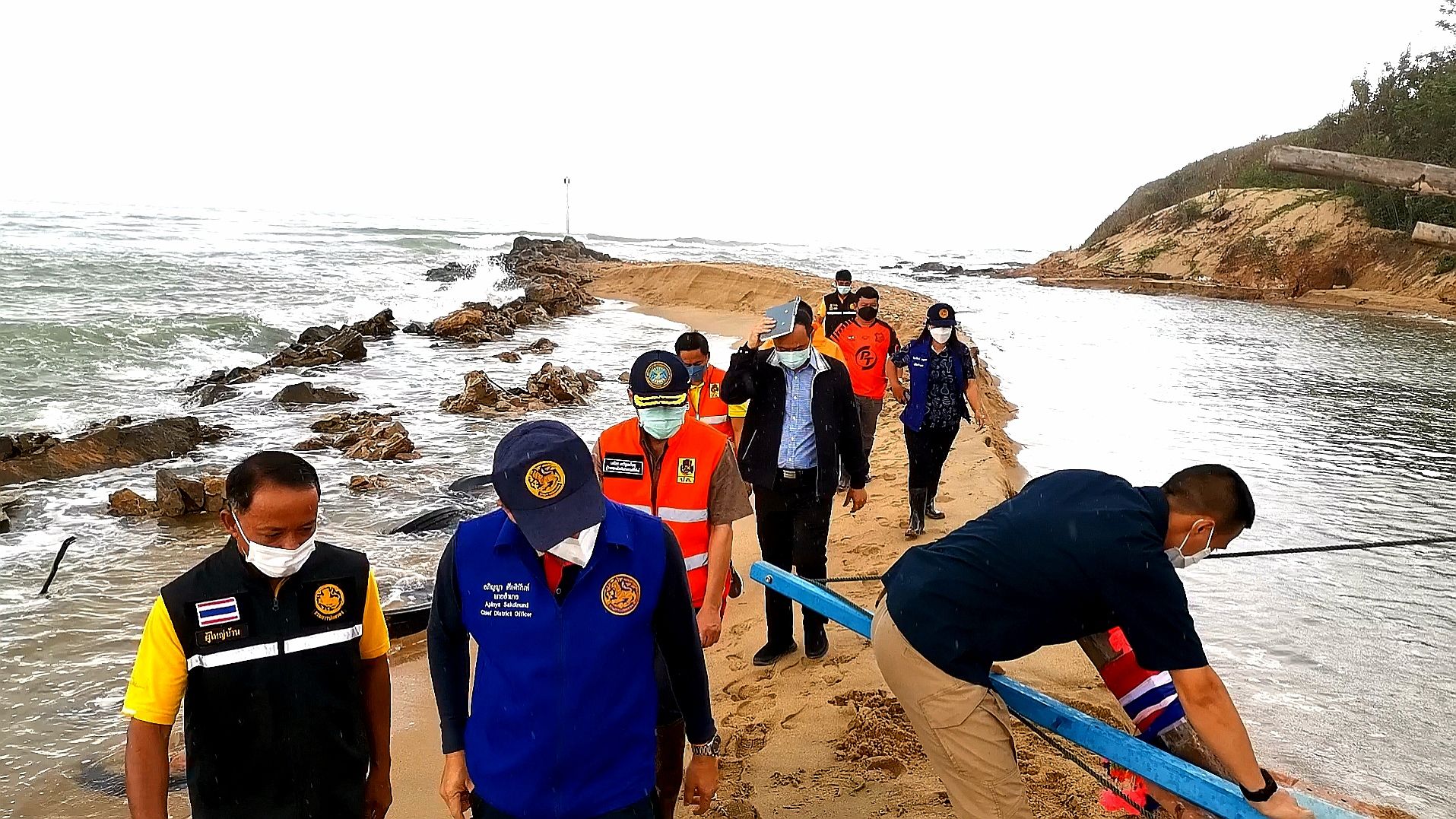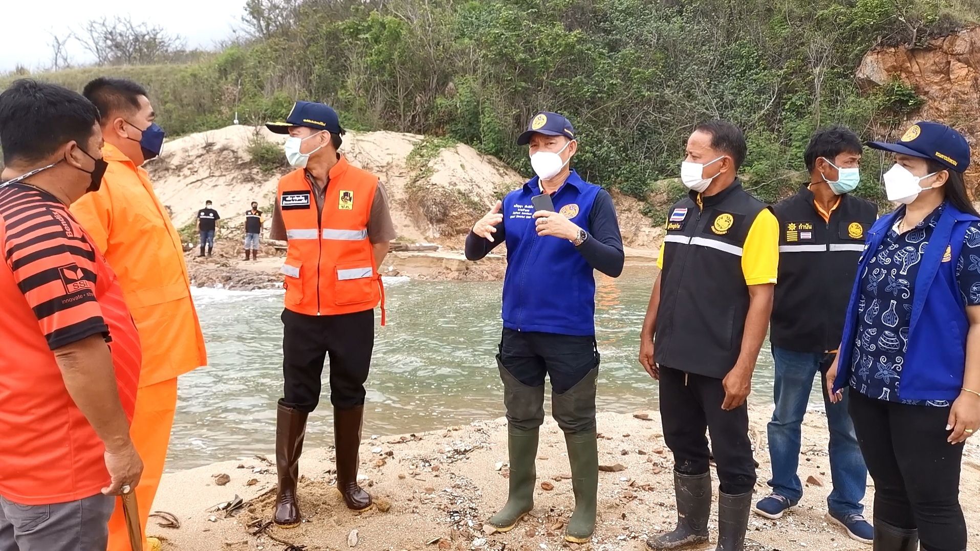 ผู้ว่าประจวบฯ ลงพื้นที่ตรวจสภาพน้ำ และลงพื้นที่แก้ไขปัญหาคลื่นทะเลกัดเซาะชายฝั่งและปากคลองปิด สร้างความเดือดร้อนให้กับชาวประมง