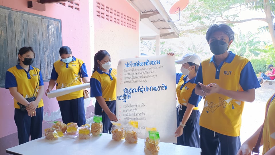 โดยมีกลุ่มตัวแทนนักศึกษาการจัดการนวัตกรรมการค้า ชั้นปีที่ 1 ได้มีส่วนร่วมในการทำกิจกรรม เพื่อปลูกฝังให้มีจิตสำนึกที่ดีนำเสนอแนวคิด หลักการ เกี่ยวกับจริยธรรมในการดำเนินธุรกิจ นอกจากนั้นยังถือเป็นการนำความรู้ในรายวิชากฎหมาย และจริยธรรมในการดำเนินธุรกิจไปถ่ายทอดให้กับชุมชน และโดยนักศึกษาได้ทำการศึกษากระบวนการทำงาน และนำมาบูรณาการกับรายวิชา โดยมีการวางเป้าหมายรณรงค์ส่งเสริมให้ผู้ประกอบการ และวิสาหกิจชุมชนต่างๆในพื้นที่ ได้มีความเข้าใจและเล็งเห็นถึงความสำคัญต่อไป เพื่อการมีส่วนร่วมให้ชุมชนในพื้นที่ให้มีความน่าอยู่มากยิ่งขึ้น