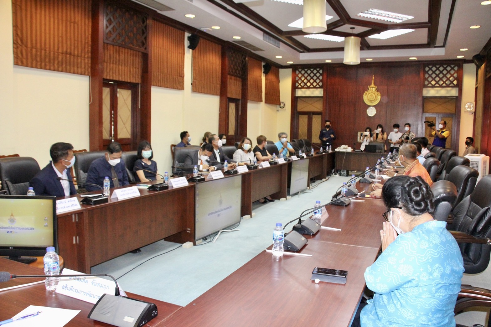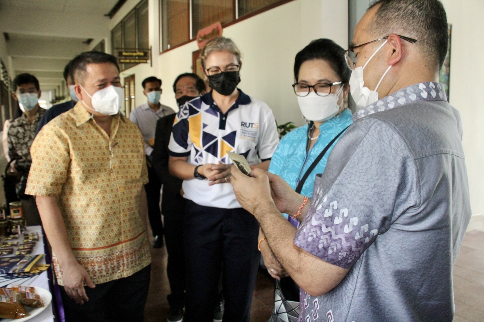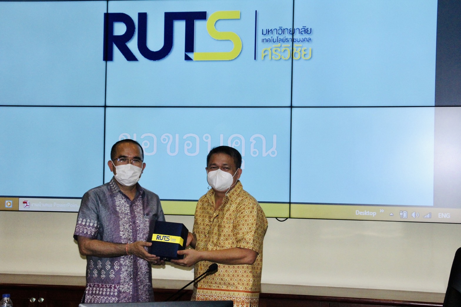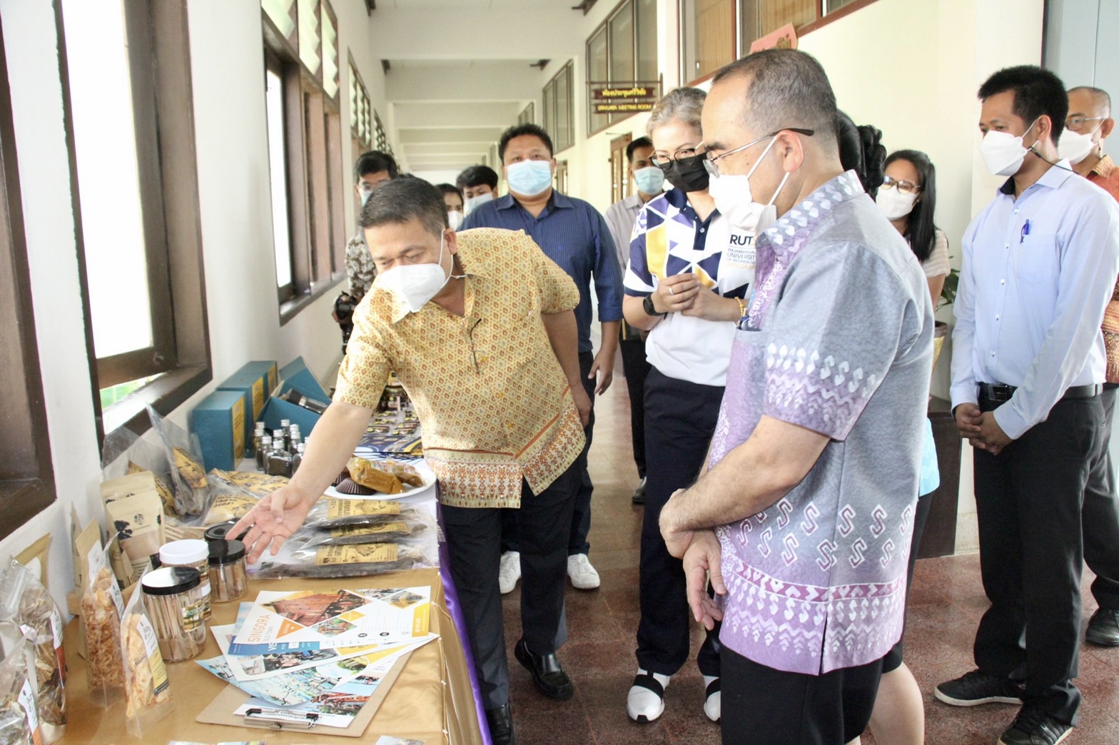 ศ.ดร.สุวัจน์ ธัญรส อธิการบดี พร้อมด้วยคณะผู้บริหารมทร.ศรีวิชัย ร่วมต้อนรับคุณสมคิด จันทมฤก อธิบดีกรมการพัฒนาชุมชน ลงพื้นที่เข้าเยี่ยมต้นแบบการพัฒนาคุณภาพชีวิต การพัฒนาชุมชนในพื้นที่ภาคใต้ ด้านการพัฒนาอาชีพ ผลิตภัณฑ์ชุมชนเพื่อยกเศรษฐกิจชุมชนให้มีความเข้มแข็ง ณ ห้องประชุมศรีวิชัย ชั้น 2 อาคารสำนักงานอธิการบดี มทร.ศรีวิชัย โดย ผศ. ดร.อภิรักษ์ สงรักษ์ รองอธิการบดี นำเสนอผลิตภัณฑ์จากโครงการวิจัยภายใต้การกำกับดูแลของหน่วยจัดการงานวิจัยเพื่อพัฒนาเชิงพื้นที่ ได้แก่ เครื่องแกงจากโครงการ “การวิจัยและพัฒนาผลิตภัณฑ์ OTOP กลุ่มเครื่องแกงปักษ์ใต้ ในจังหวัดนครศรีธรรมราช” เพื่อเพิ่มมูลค่าบนฐานศักยภาพและทรัพยากรพื้นถิ่น “ชุดโครงการวิจัยและพัฒนาเพื่อยกระดับผลิตภัณฑ์ OTOP ของภาคใต้บนฐานทรัพยากรพื้นถิ่นสู่ตลาดการแข่งขัน” ประจำปีงบประมาณ 2563 และ ผลิตภัณฑ์พริกไทยพันธุ์ปะเหลียนจากโครงการ “การยกระดับพริกไทยพันธุ์ปะเหลียนด้วยห่วงโซ่คุณค่าใหม่เพื่อเพิ่มขีดความสามารถของผู้ประกอบการในพื้นที่สู่ตลาดการแข่งขัน” โดยได้รับความสนใจอย่างยิ่งจากอธิบดีกรมการพัฒนาชุมชนในเรื่องการยกระดับพริกไทยพันธุ์ปะเหลียนของจังหวัดตรัง