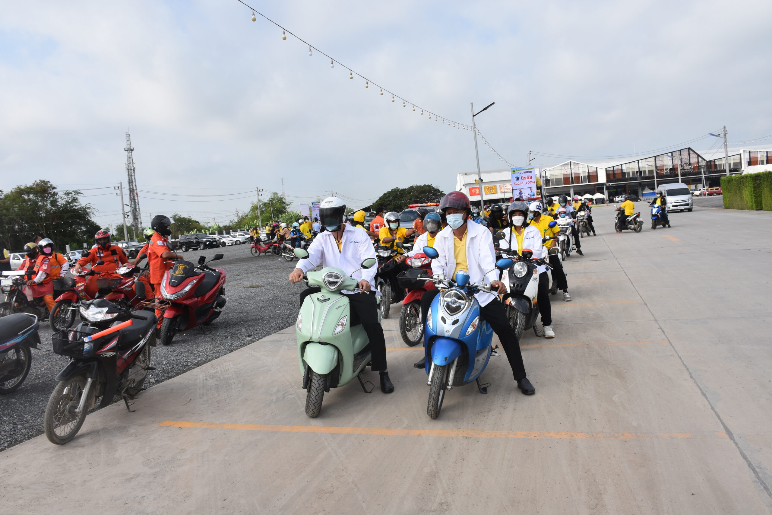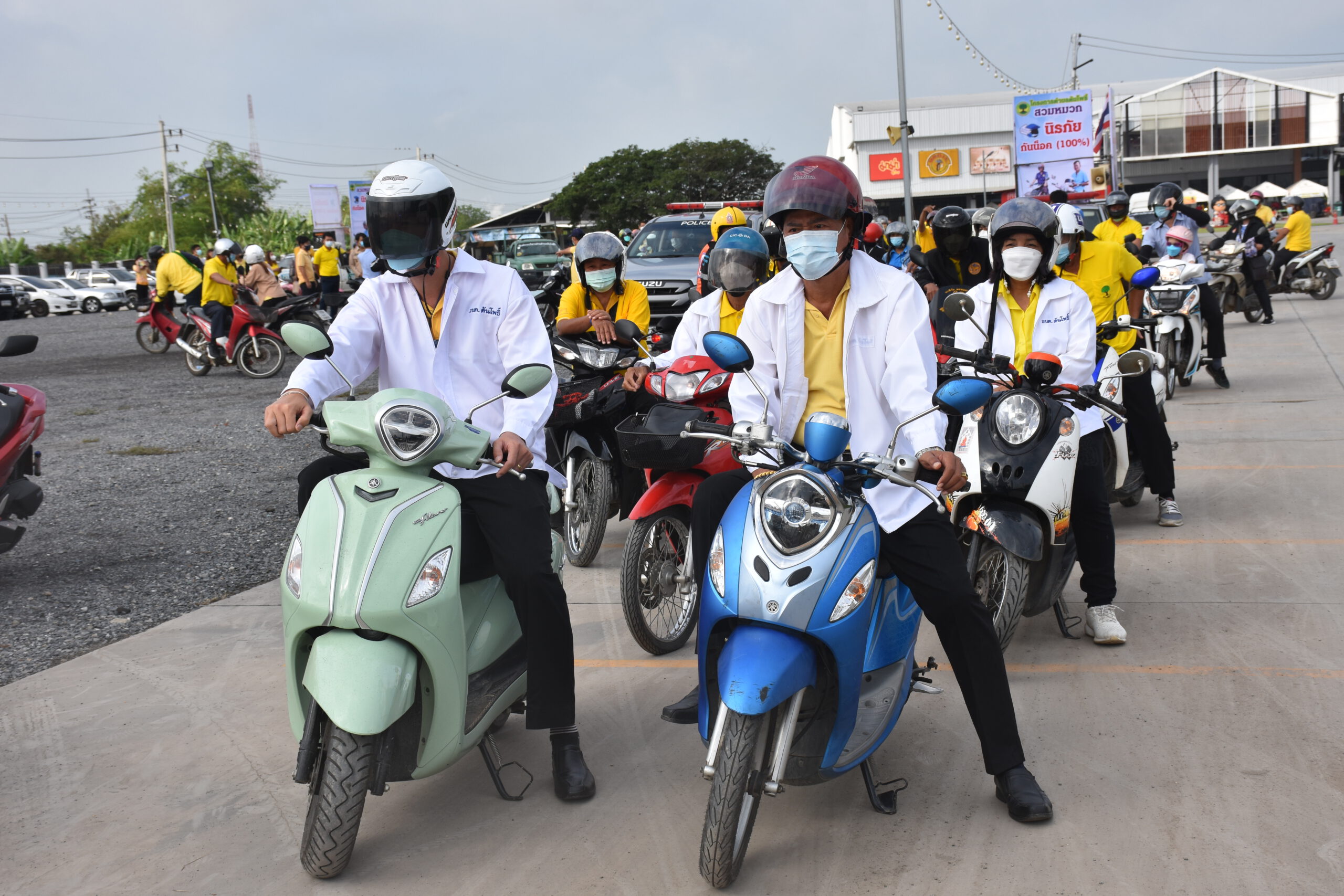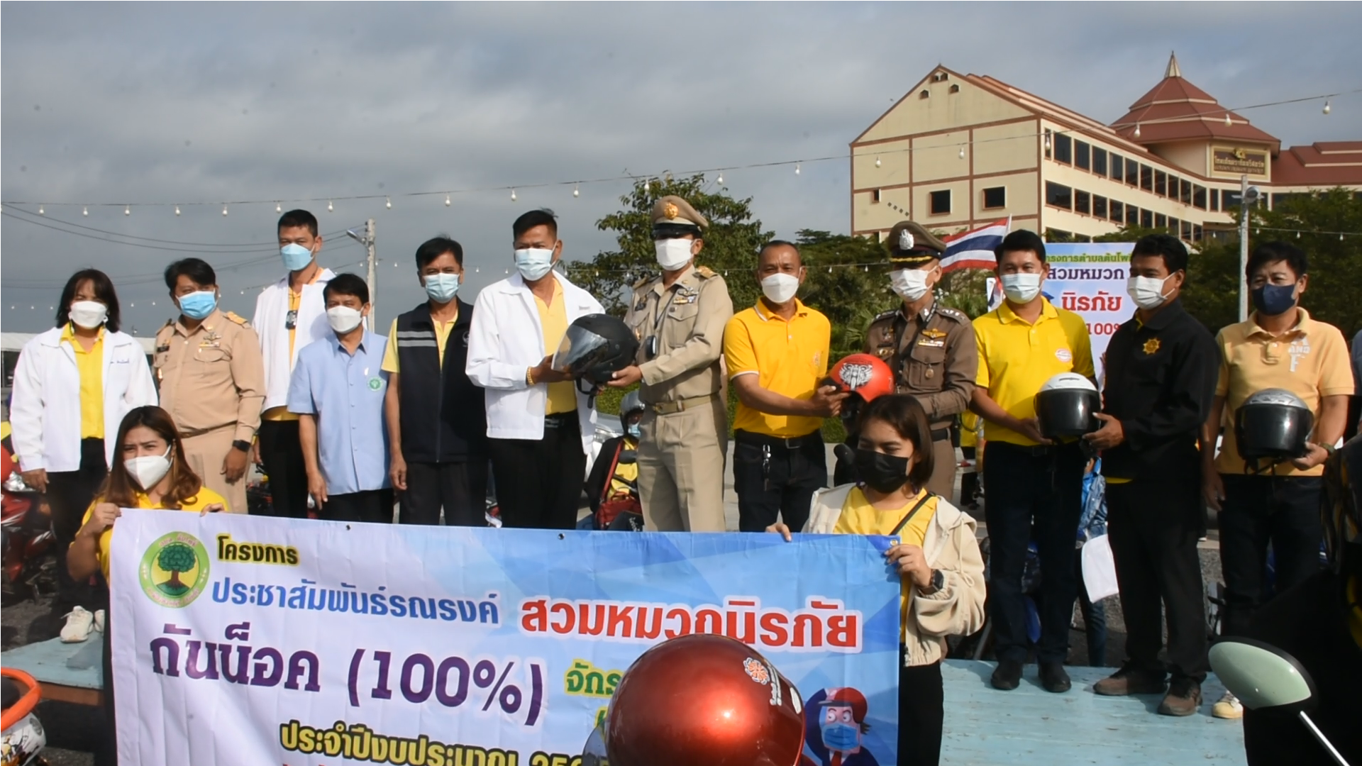 สิงห์บุรี อบต.ต้นโพธิ์ ร่วมกับ สภ.เมือง จัดขบวนรถประชาสัมพันธ์เชิงรุกรณรงค์สวมหมวกกันน๊อค 100%