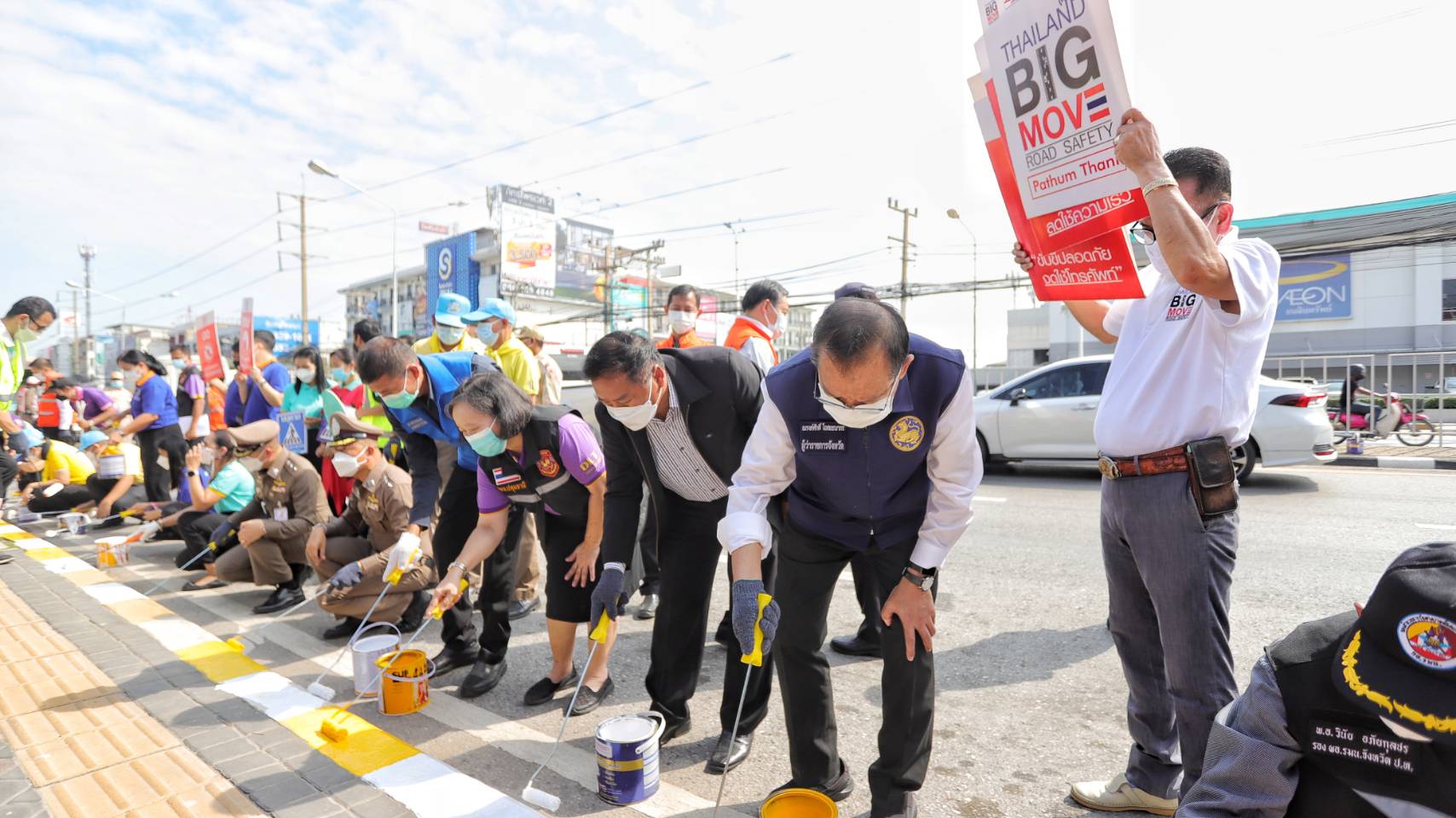 ปทุมธานี รณรงค์ลดอุบัติเหตุบริเวณทางข้าม ปรับปรุงทาสีใหม่ให้มีความเด่นชัด สร้างความปลอดภัยทางถนน