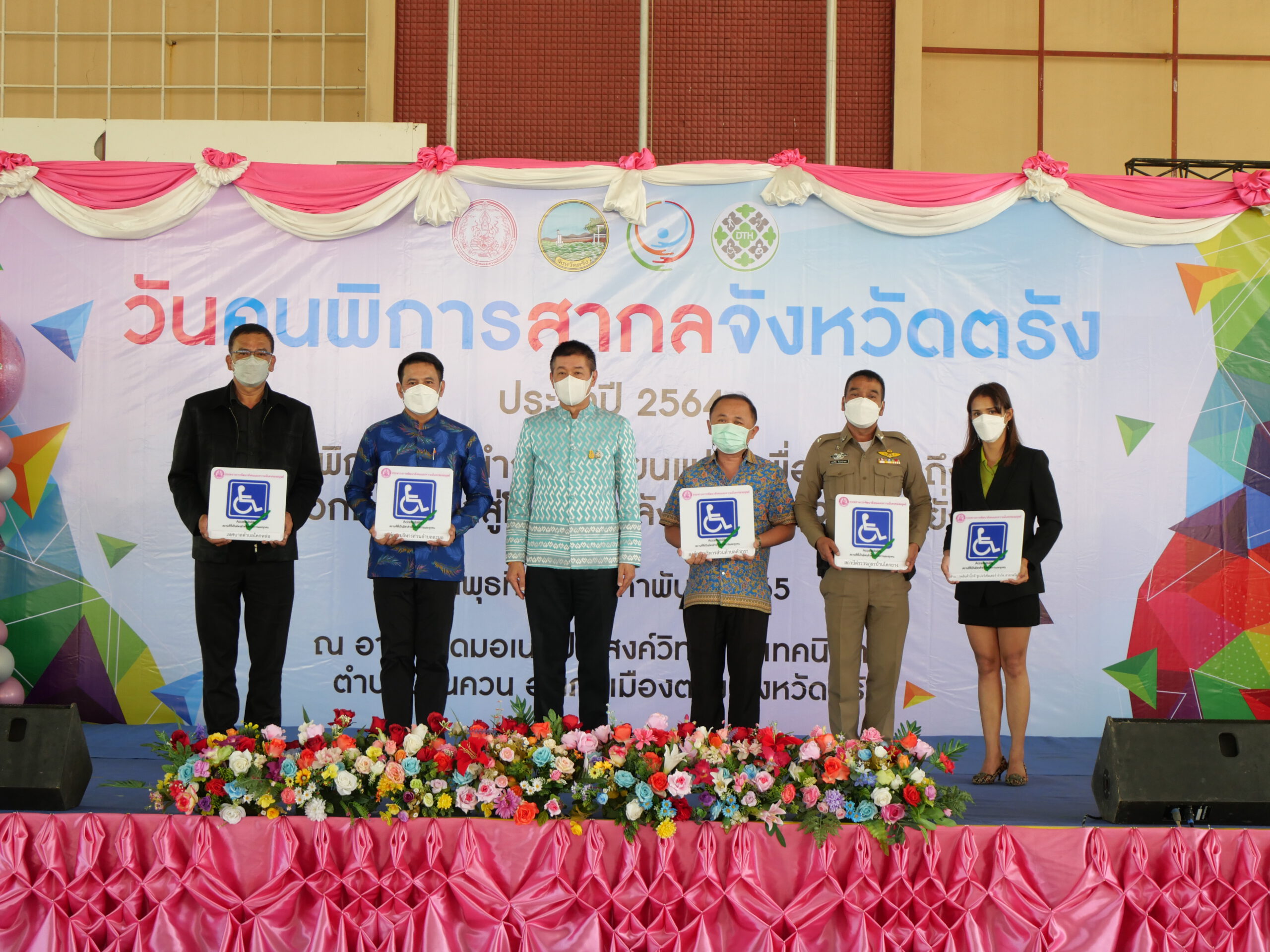 ที่อาคารโดมอเนกประสงค์ วิทยาลัยเทคนิคตรัง ต.บ้านควน อ.เมืองตรัง นายขจรศักดิ์ เจริญโสภา ผู้ว่าราชการจังหวัดตรัง เป็นประธานในพิธีเปิดงานวันคนพิการสากล ประจำปี 2564 สืบเนื่องจากองค์การสหประชาชาติได้ประกาศให้วันที่ 3 ธันวาคมของทุกปีเป็นวันคนพิการสากลและเชิญชวนให้ประเทศสมาชิกร่วมกันจัดกิจกรรมต่าง ๆ เพื่อให้คนพิการได้มีส่วนร่วมในกิจกรรมทางสังคมมีโอกาสได้แสดงศักยภาพให้สังคมประจักษ์ ซึ่งทำให้สังคมเกิดเจตคติเชิงสร้างสรรค์ต่อคนพิการและความพิการ ให้การยอมรับคนพิการในฐานะที่เป็นทรัพยากรที่มีคุณค่าของสังคมโดยในปี 2564 องค์กรสหประชาชาติได้กำหนดประเด็นหลัก คือ “คนพิการร่วมนำการเปลี่ยนแปลงเพื่อการเข้าถึงโดยสะดวกถ้วนหน้า สู่โลกใหม่ หลังโควิด 19 อย่างยั่งยืน