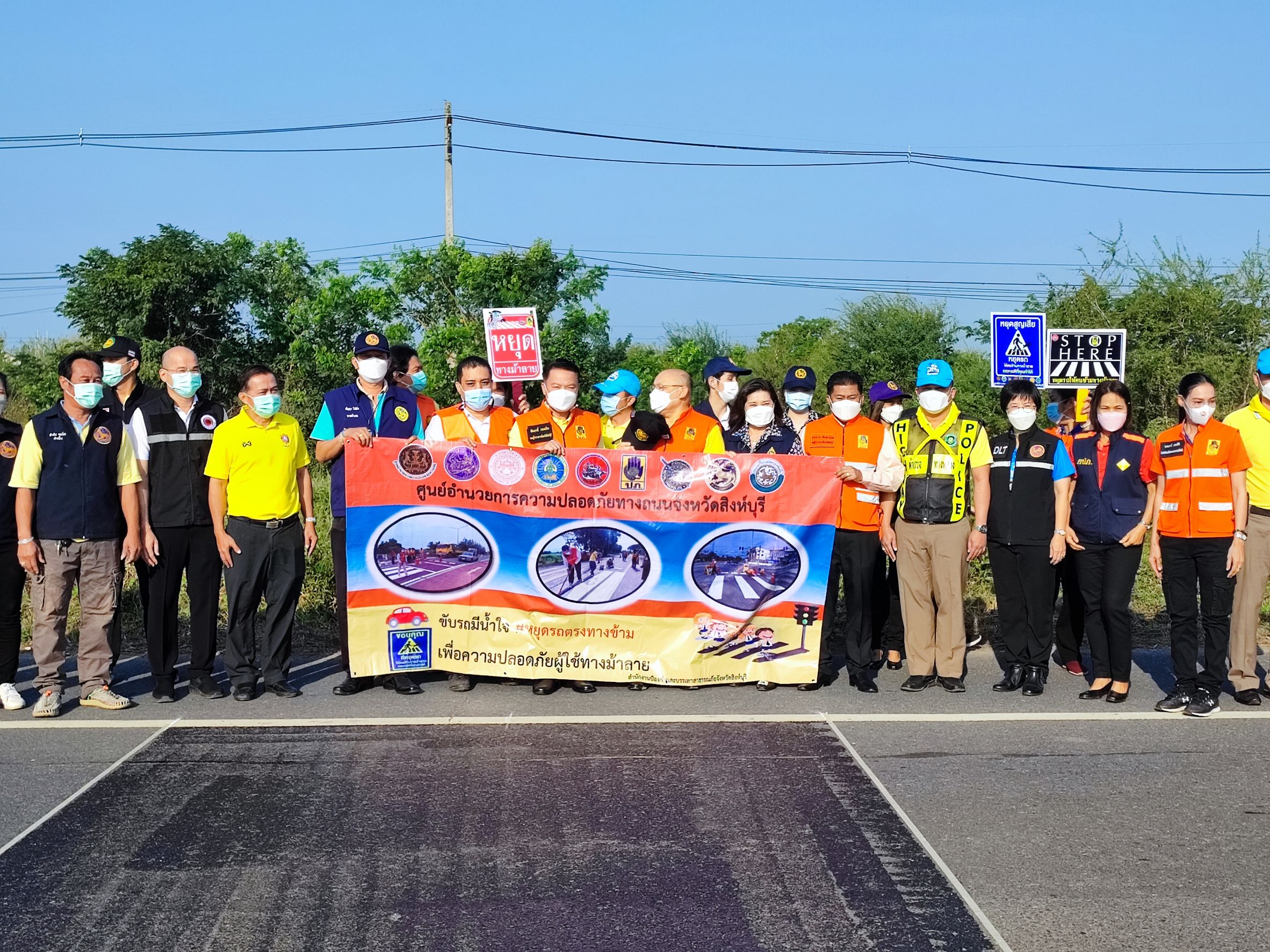 ศูนย์อำนวยการความปลอดภัยทางถนนจังหวัดสิงห์บุรี โดยผู้ว่าราชการจังหวัดสิงห์บุรีในฐานะผู้อำนวยการศูนย์อำนวยการความปลอดภัยทางถนนจังหวัดสิงห์บุรี นำหัวหน้าส่วนราชการ นายอำเภอ องค์กรปกครองส่วนท้องถิ่น ภาครัฐ ภาคเอกชนและภาคประชาชน จิตอาสา ร่วมจัดกิจกรรม “การรณรงค์เพื่อลดอุบัติเหตุบริเวณทางข้าม” ในวันที่ 23 กุมภาพันธ์ 2565